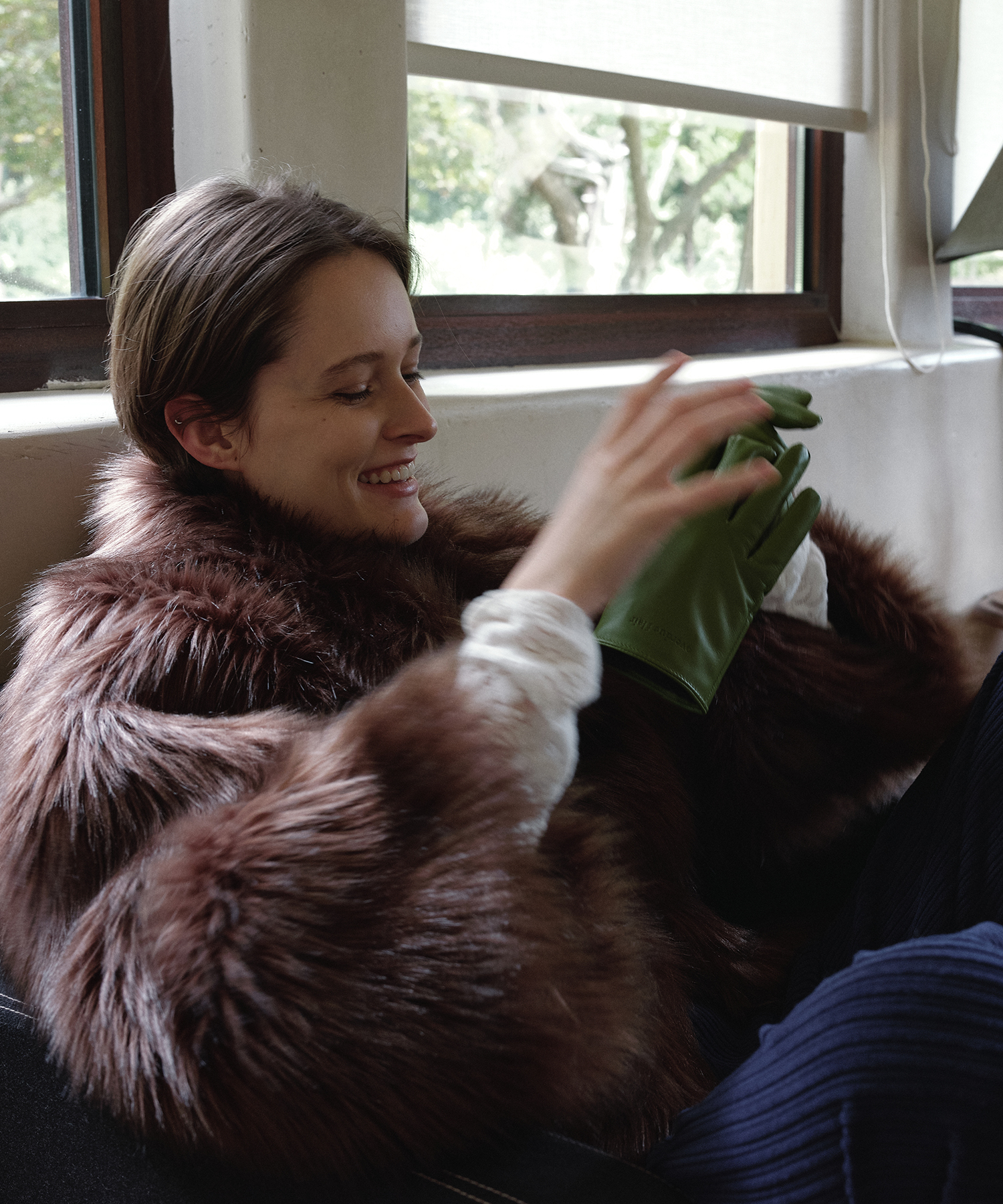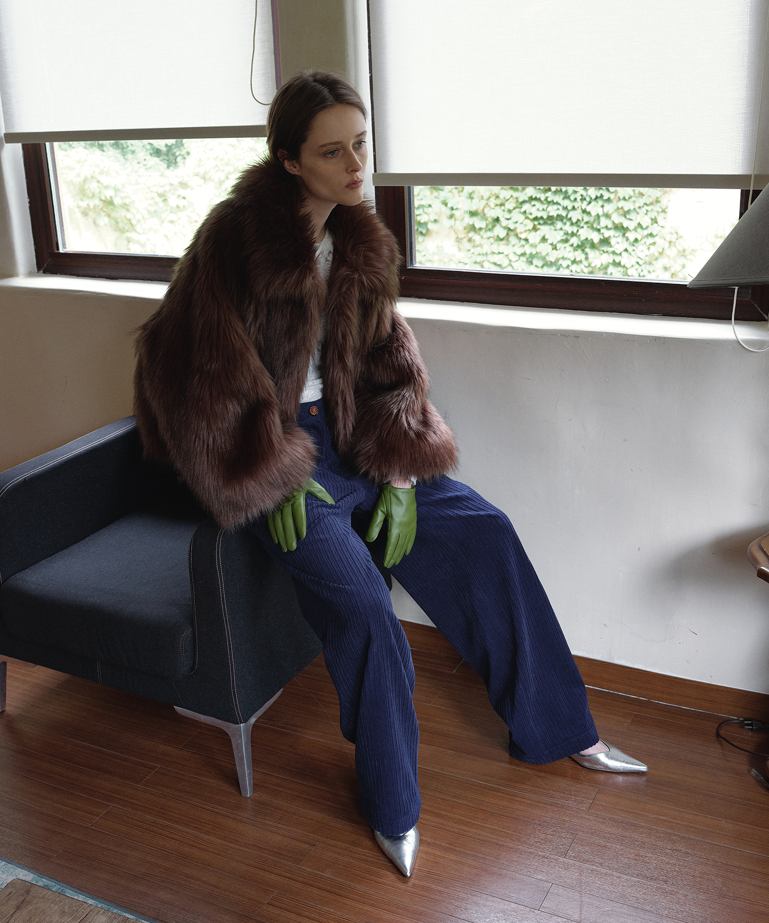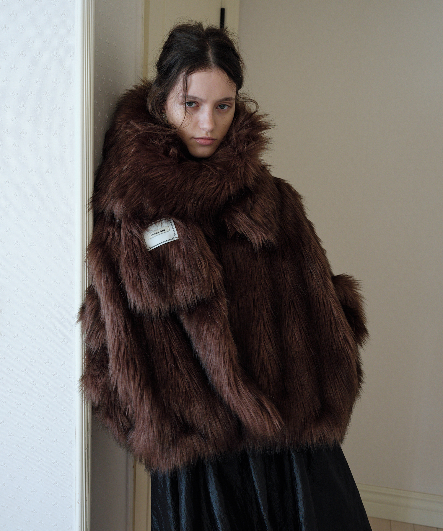 ミニマルなシルエットに、密度が高くふんわりとしたロングヘアのフェイクファーを使用し、ボリューム感をプラスしました。