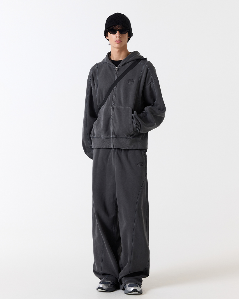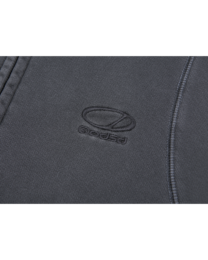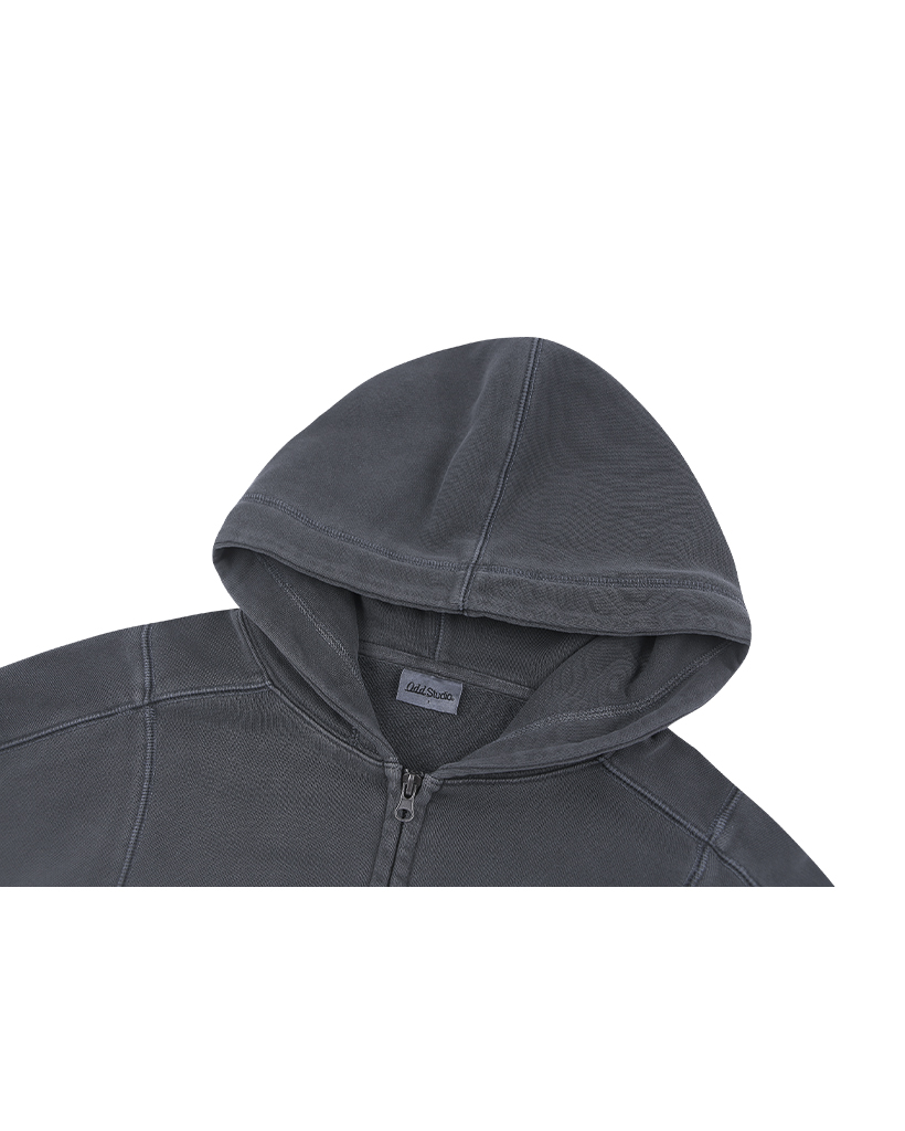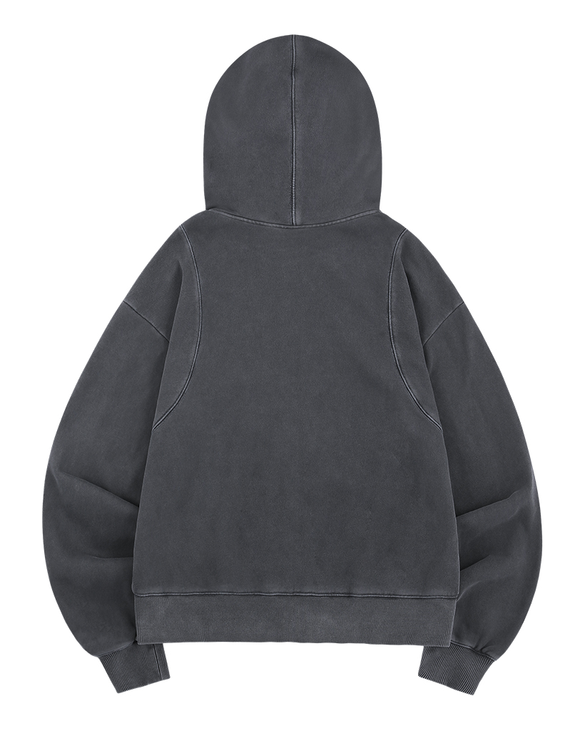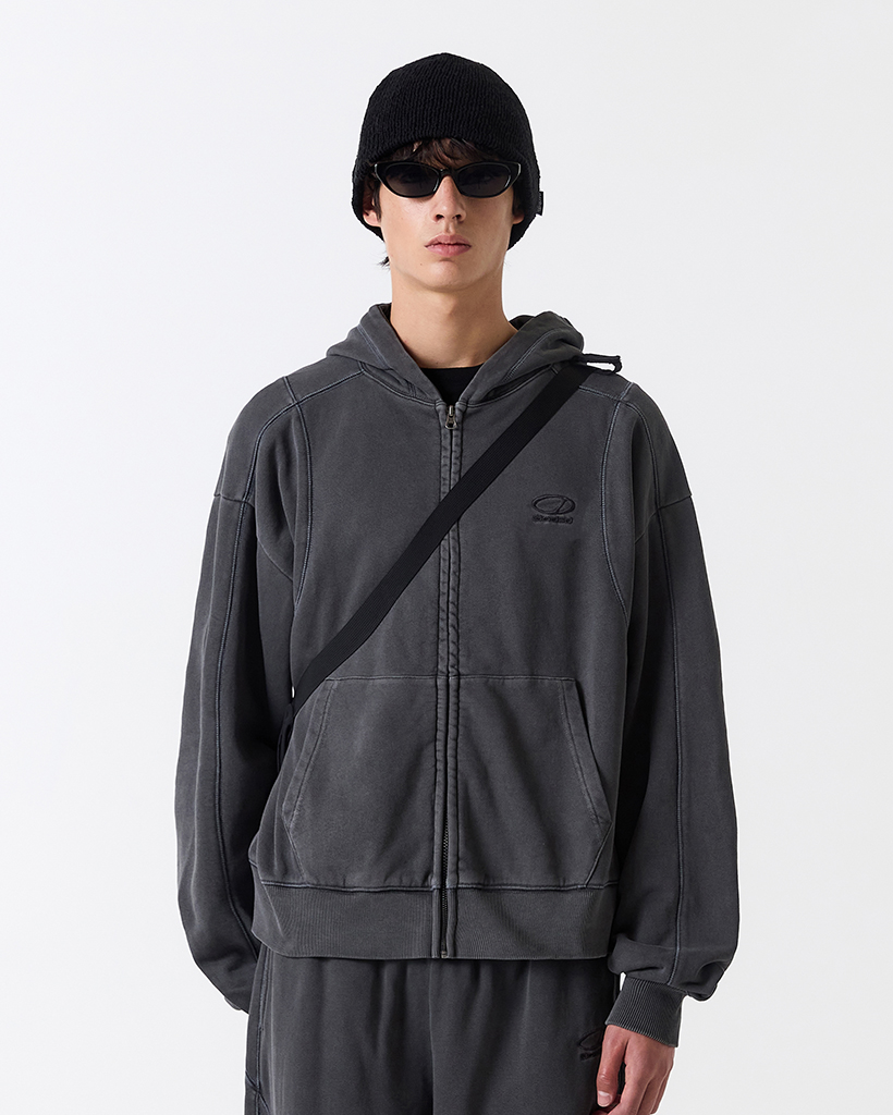 Pigment Cover Stitch Hooded Zip-Up - CHARCOAL
