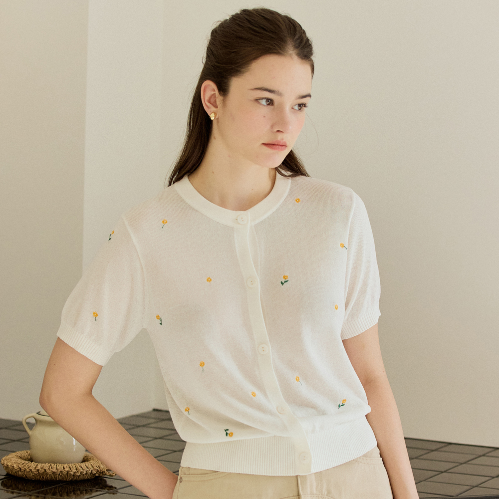 BLOOM STITCH CARDIGAN_WHITE