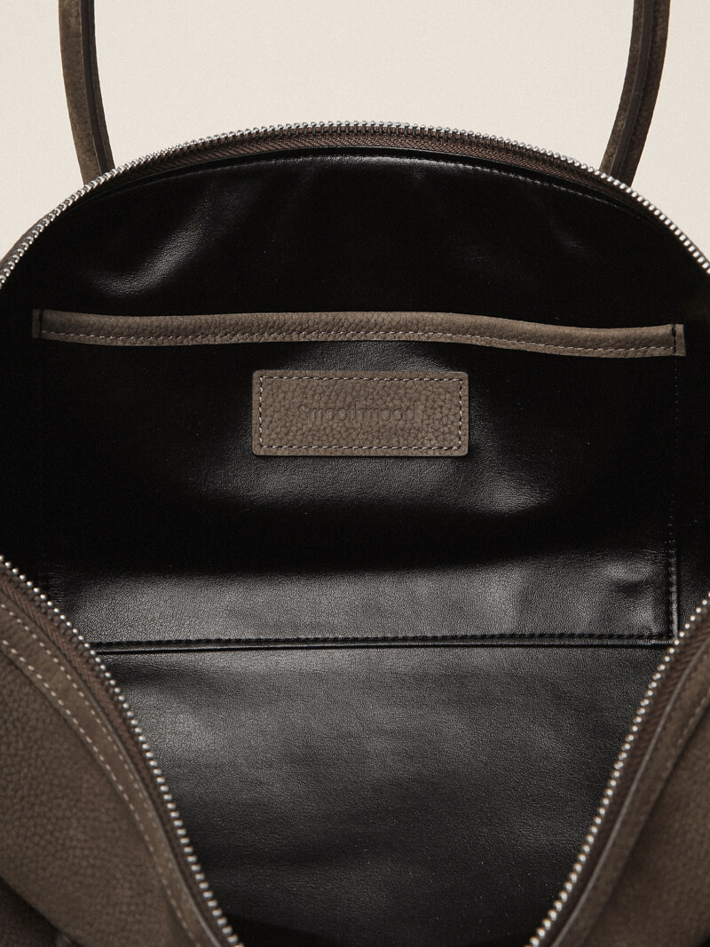 ヴィンテージの円筒形を思わせる官能的な形状のウッディバッグ ヌバックトップ 丸みを帯びた円筒形の木製ベレル形状 シンプルながらもしっかりした存在感 シンプルながらもしっかりした存在感を伝えるアイテム 高品質な牛皮ヌバックレザーで作られ 柔らかく、しっかり、自然なヌバックの質感は生き生きと、時間とともに美しく グレーと茶色がさりげなく混ざり合い、軽やかに変化する 落ち着いたヌバックトープカラー 独特で魅力的な色合いは完璧にクール ダブルハンドルとしっかりした形状で安定したシルエットを完成させ、大型バッグは優れた収納能力で様々な持ち物や複数の本を快適に収納できます YKKのジッパーディテールで滑らかさが簡単に閉じられます 内側は合成革でしっかり覆われています スムーズなムードレザースタンプラベルと内側のオープンポケットは実用性とディテールの両方を加え、Smoothmoodのロゴが入ったストラップホルダーには彫刻が施されており、使わない時もきちんと結べます。どんな服装にも似合うショルダーバッグやトートバッグと合わせましょう。Cow Skin Nubuck Leather(アメリカ製)Wood Skin Nubuck Leather(USA製)バレルウッドシェイプシルバーハードウェアダブルハンドルYKKジッパークローズ内側オープンポケットディテールストラップホルダーバッグ側面にSmoothmoodロゴの刻印*Nubuck素材は本革の性質上、しわや斑点が入っています。 色やテクスチャーの痕、腱、傷、粉の落下などに違いがあることがあります。汚染やオトスタイイングを受けやすく、湿気を避けるために注意が必要です(雪や雨には注意してください)。ヌバック素材の性質上、注文順によって色にわずかな違いがあり、モニターや日光、照明によって色が異なることもあります