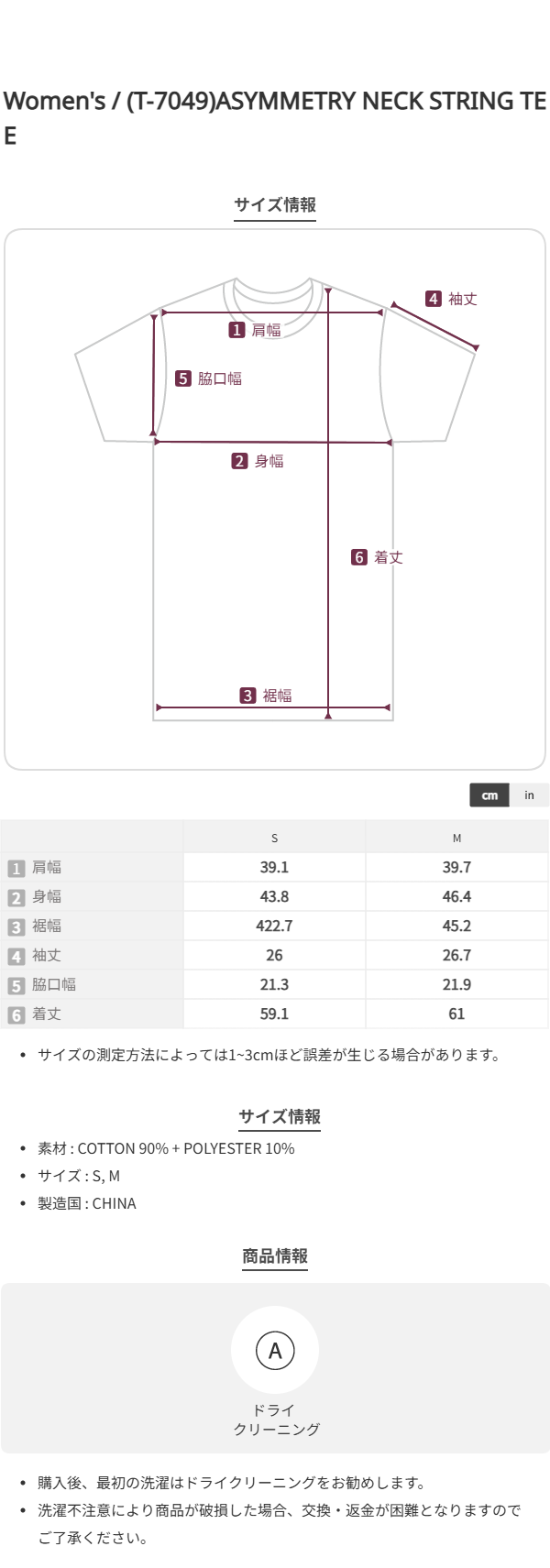 (T-7049)ASYMMETRY NECK STRING TEE