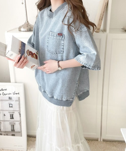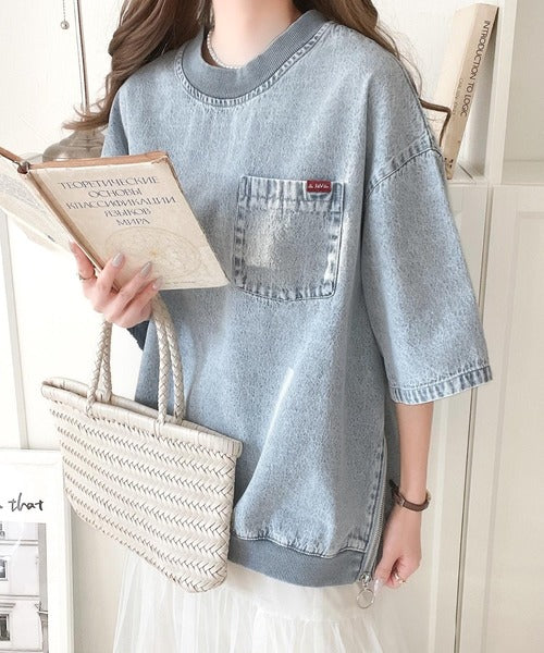 素材をデニムにすることによって、トレンド感、鮮度感のあるTシャツにブラッシュアップ。