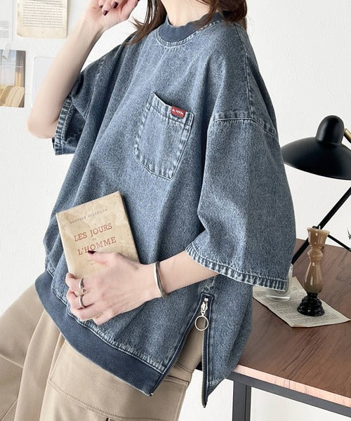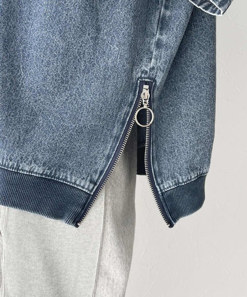 《JaVa ジャバコラボ》大人のハンサムライクトップス。コットン100%サイドファスナーデニムプルオーバー jv1010255