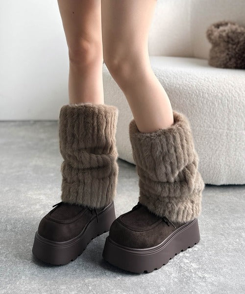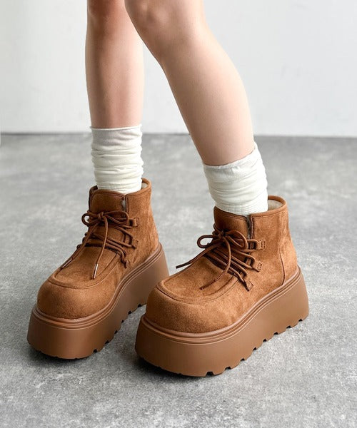 【mily bilet】ファー着脱可能♪2WAYヌバック調素材ボリュームソールファームートンブーツ mi1129025
