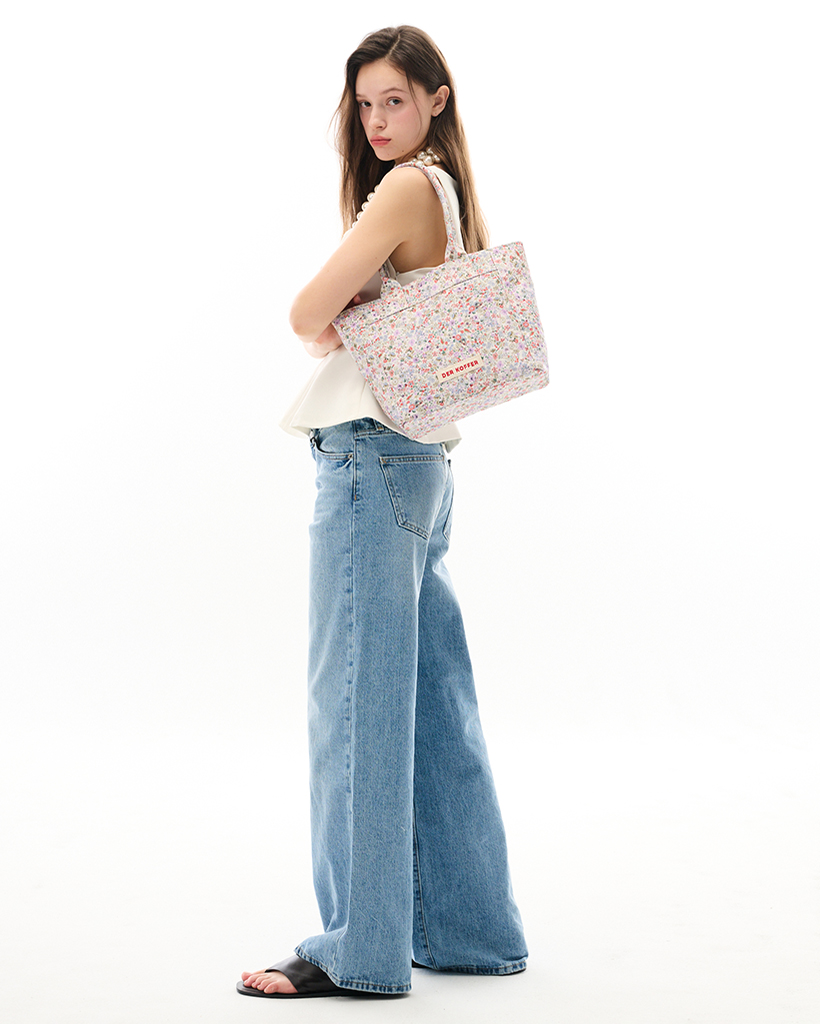 SHOPPER VINTAGE [FLOWER-WHITE]-MEDIUM