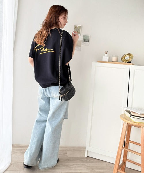 バック刺繍がアクセントとなり、後ろ姿にも自信が持てるコーディネートに仕上げることができます。