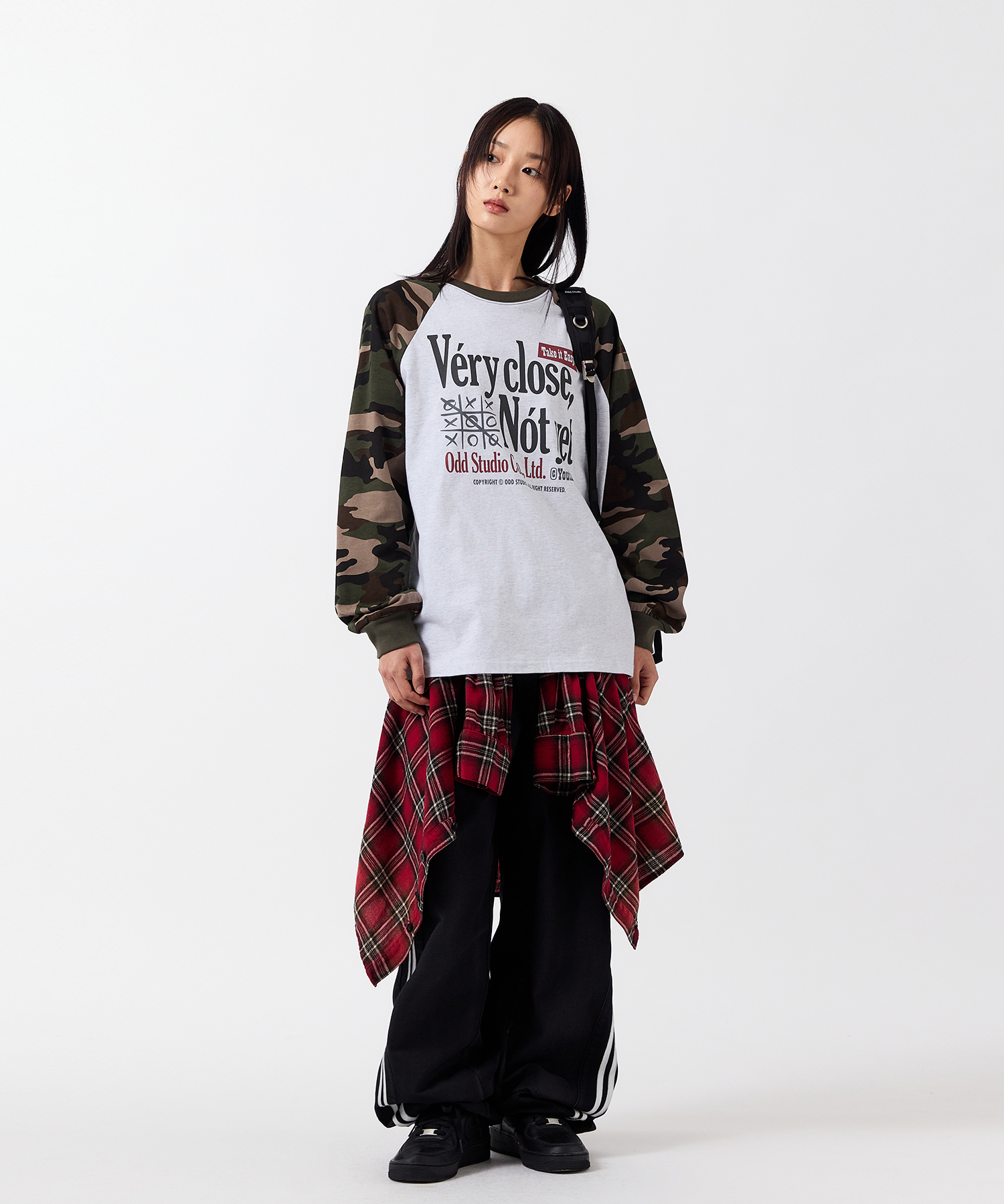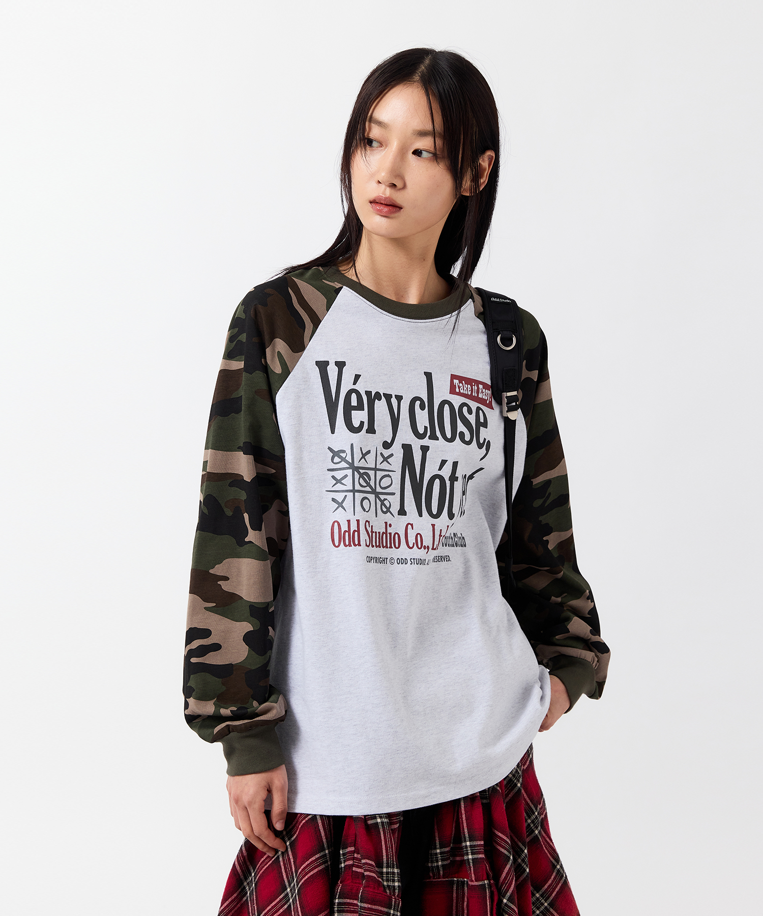[Kアイドル着用]VeryCloseRaglanOverfitLongSleeve-WHITEMELANGE/CAMO