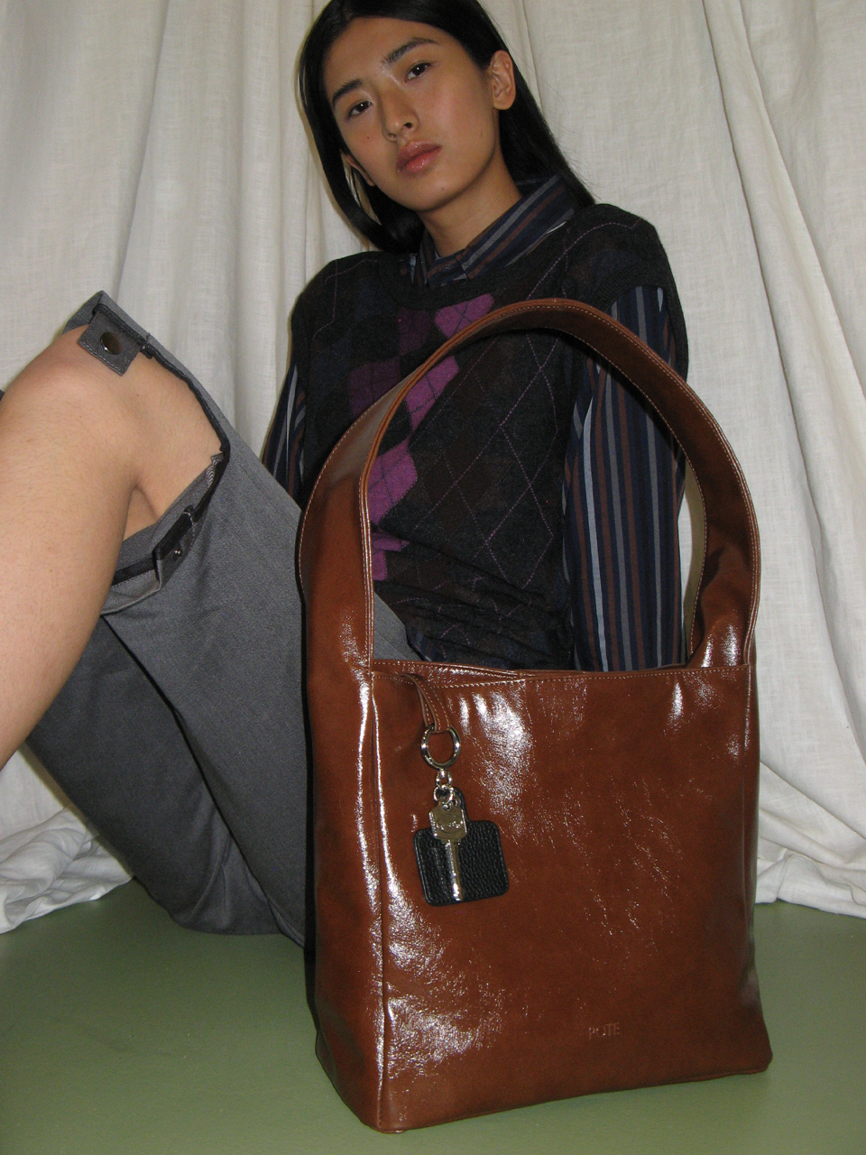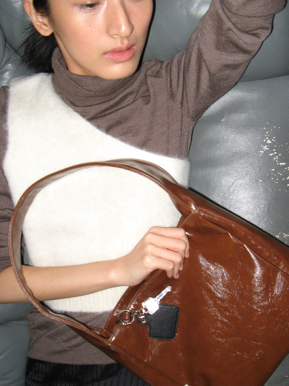 0008 Square Shoulder Bag_Leather Brown