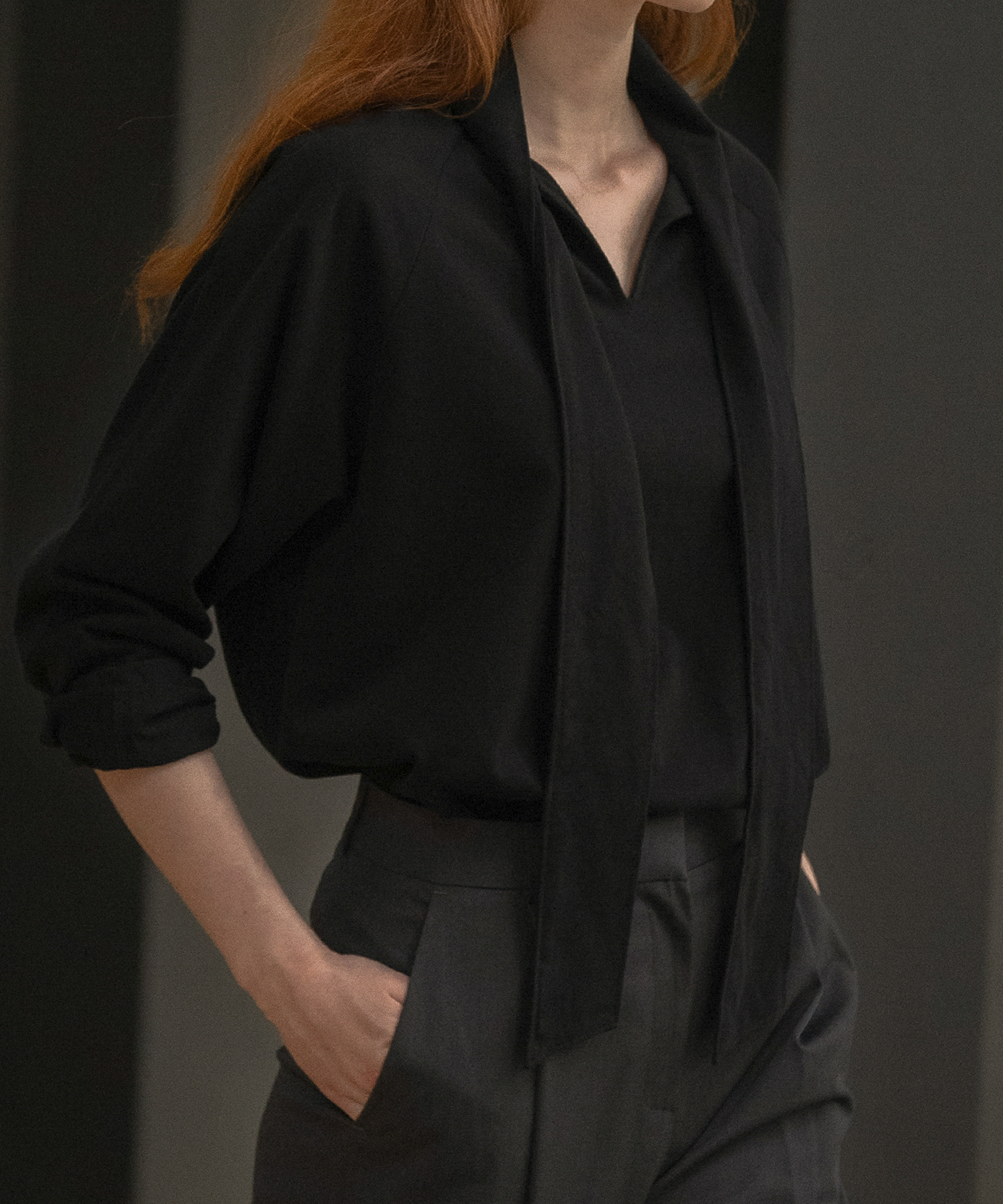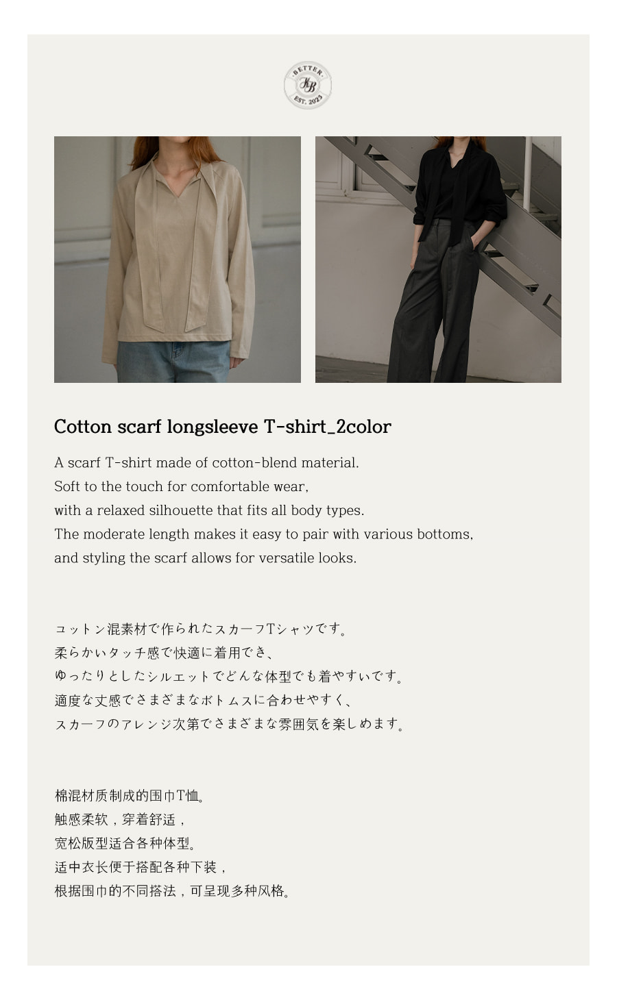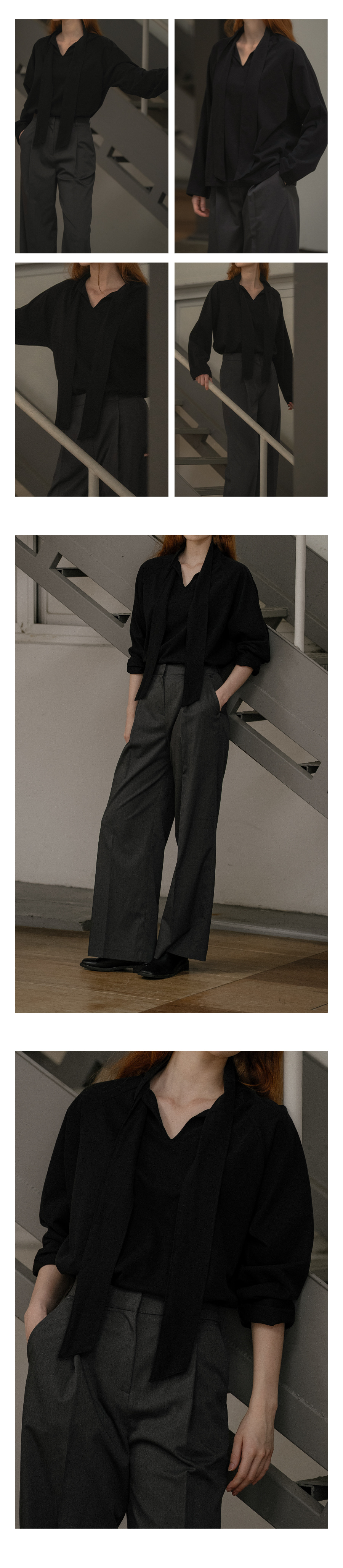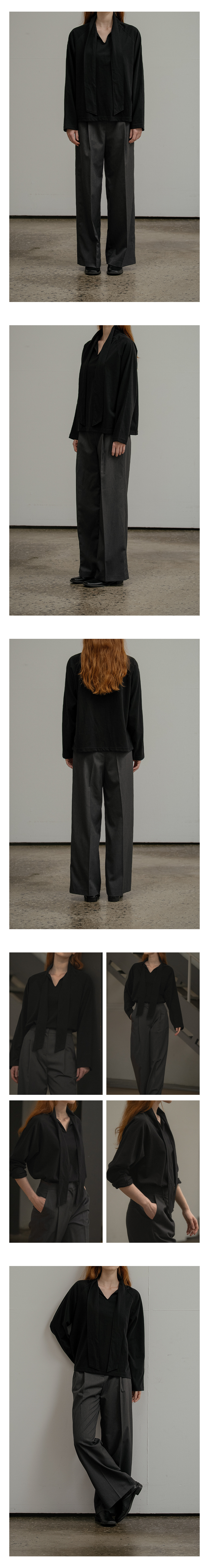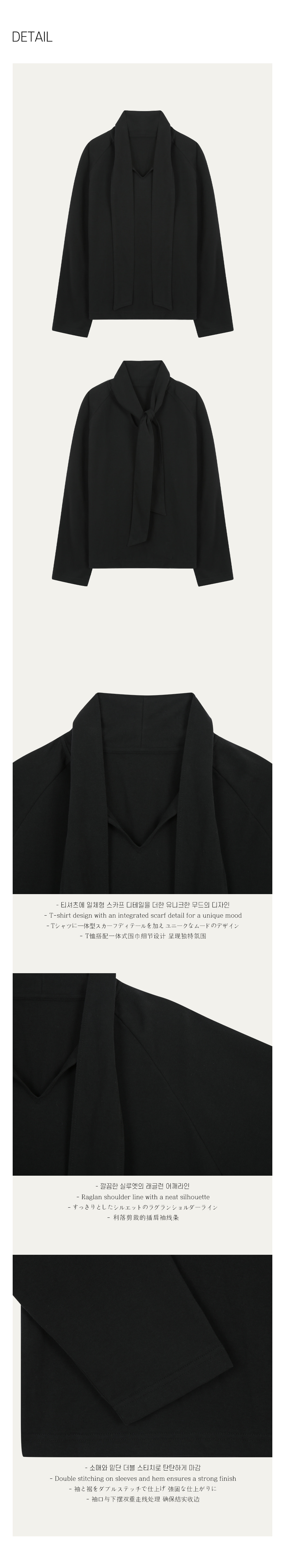 Cotton scarf longsleeve T-shirt [KNFW03TS19]_Black