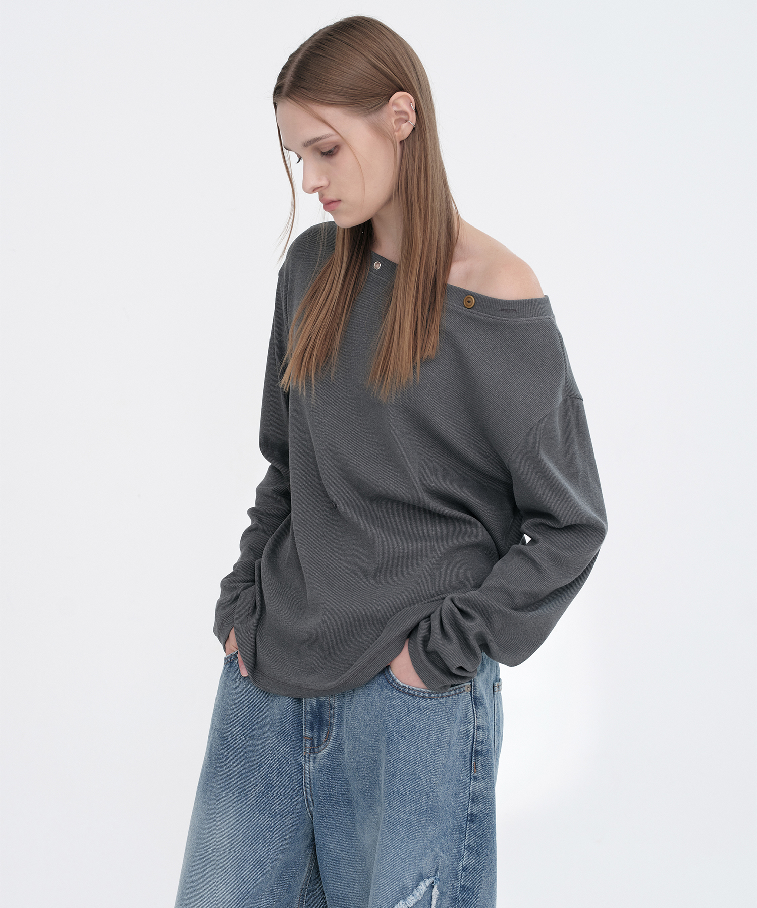 Button Mix T-Shirts [Charcoal]