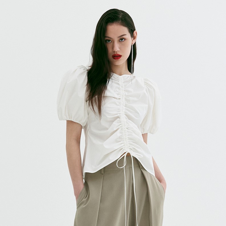 Drawstring Ruched Cotton Blouse