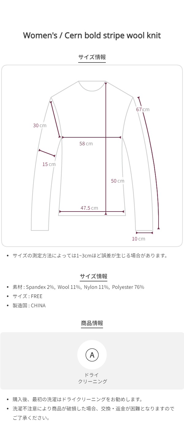 *ニットの特性上、ハンガーに長時間掛けておくと伸びる場合があります。必ず畳んで保管するか、折りたたんでハンガーに掛けてください。