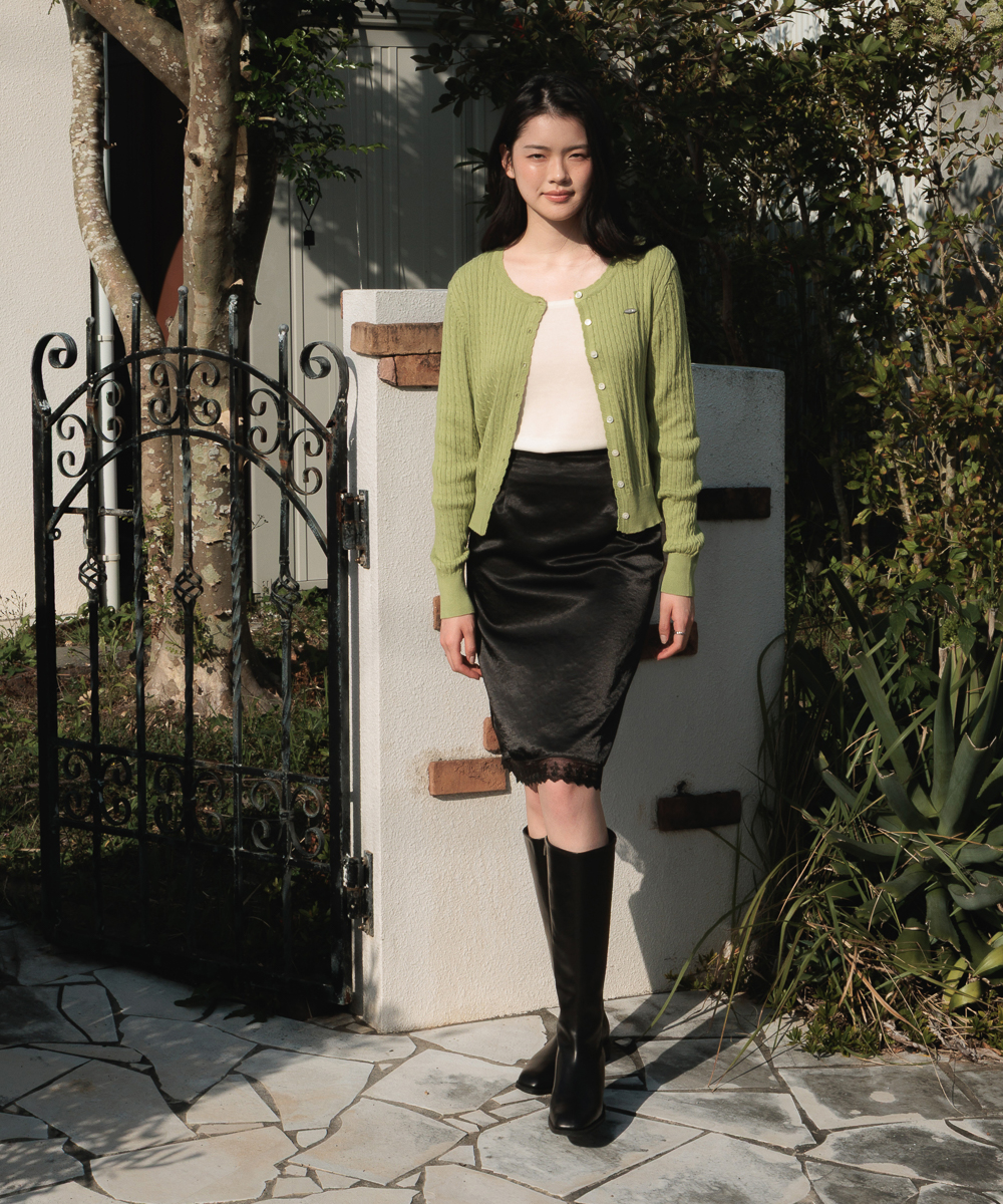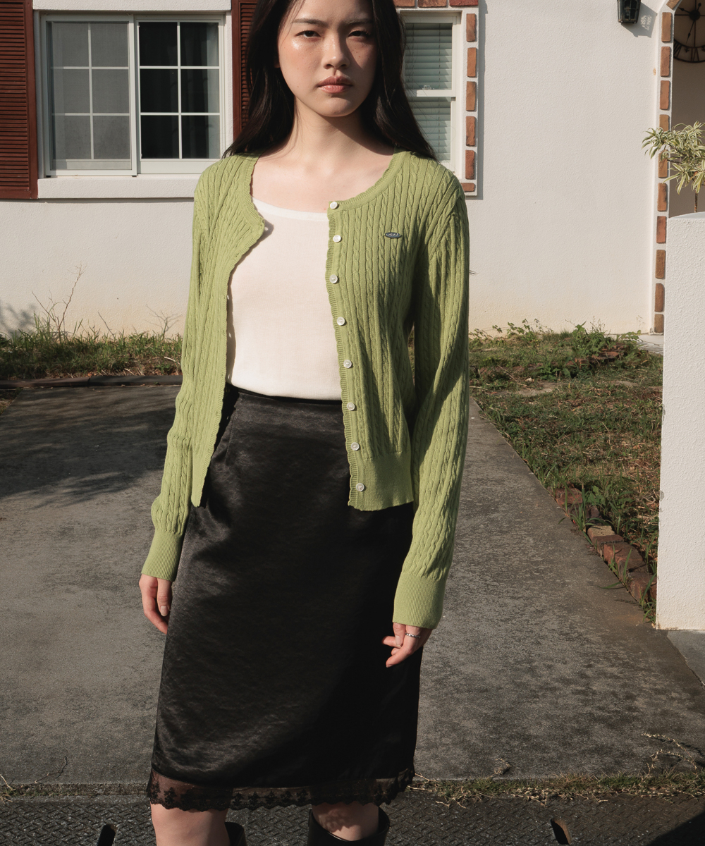 Frill Cable Knit Cardigan [Olive]