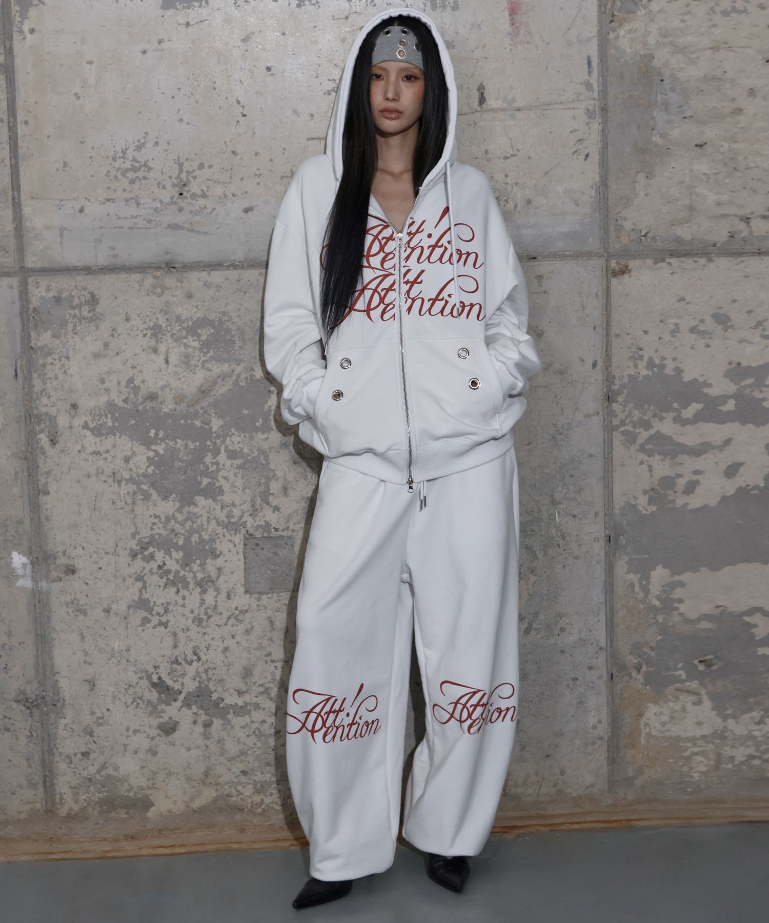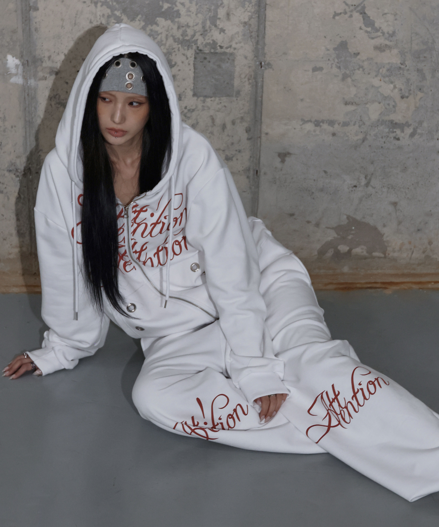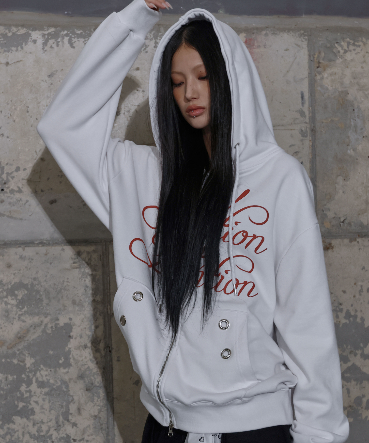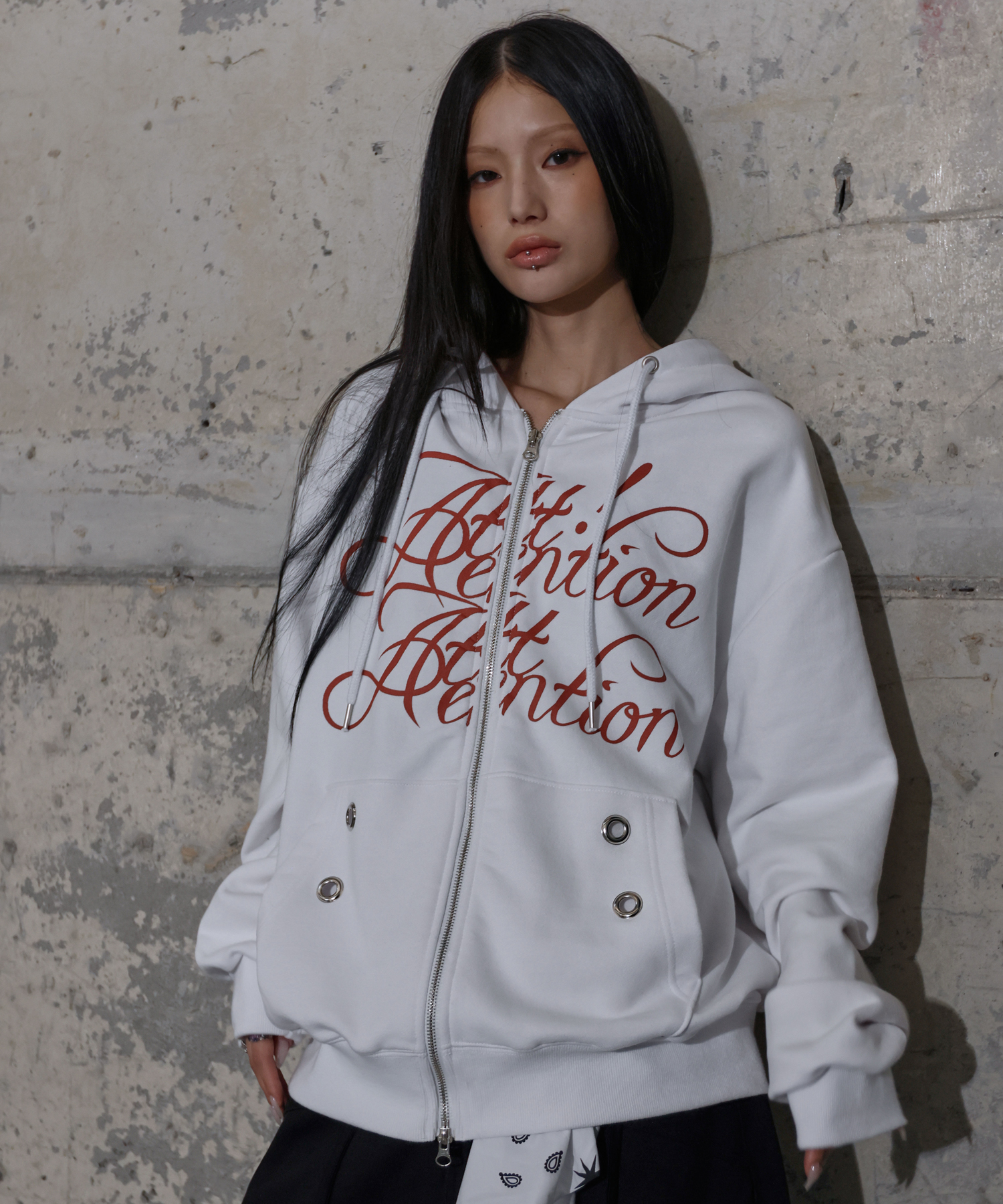 ATTENTION EYELET HOODED ZIP-UP (WHITE) F25ZA010
