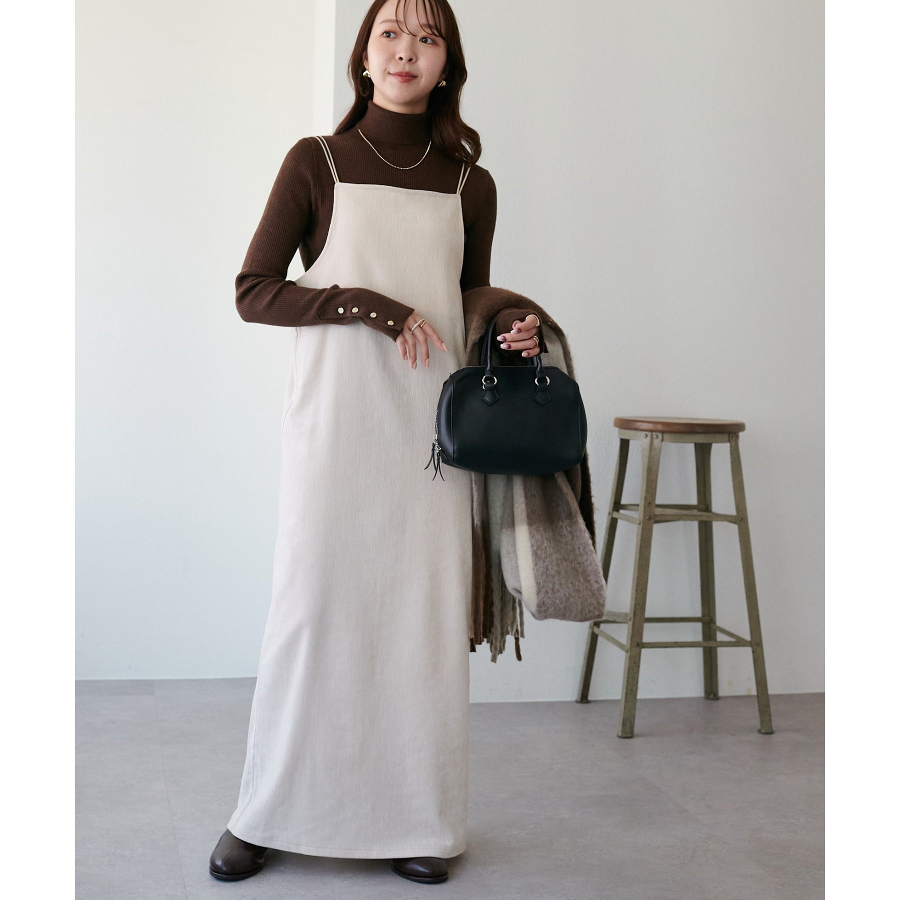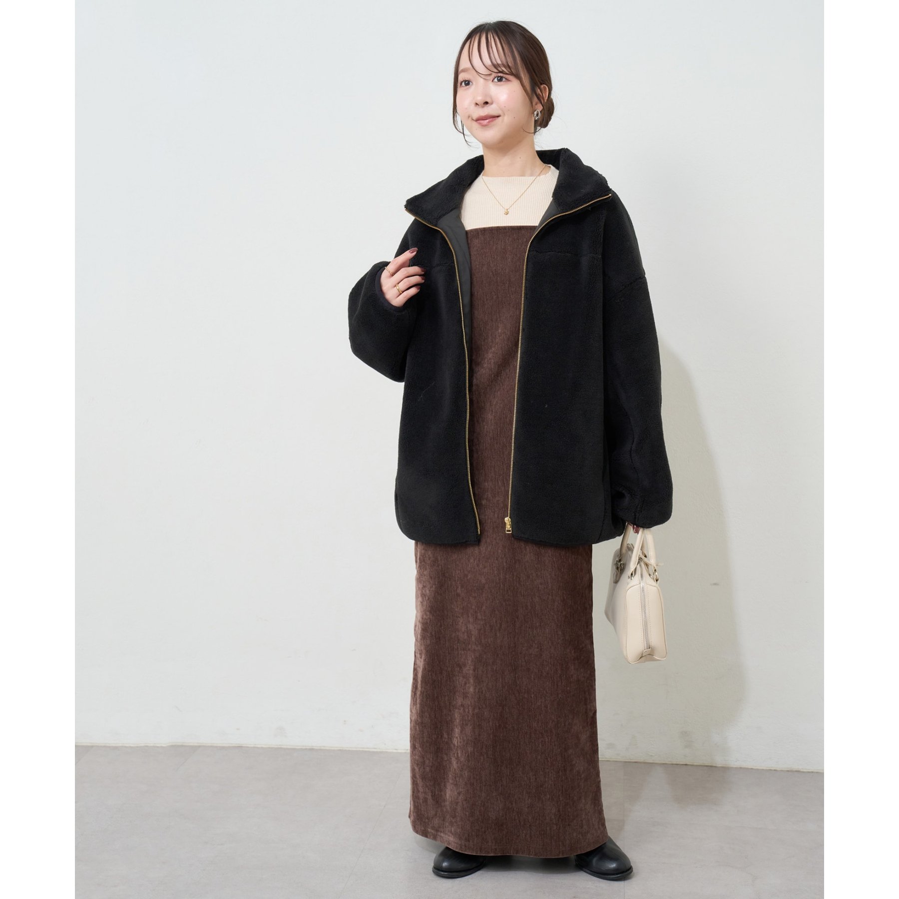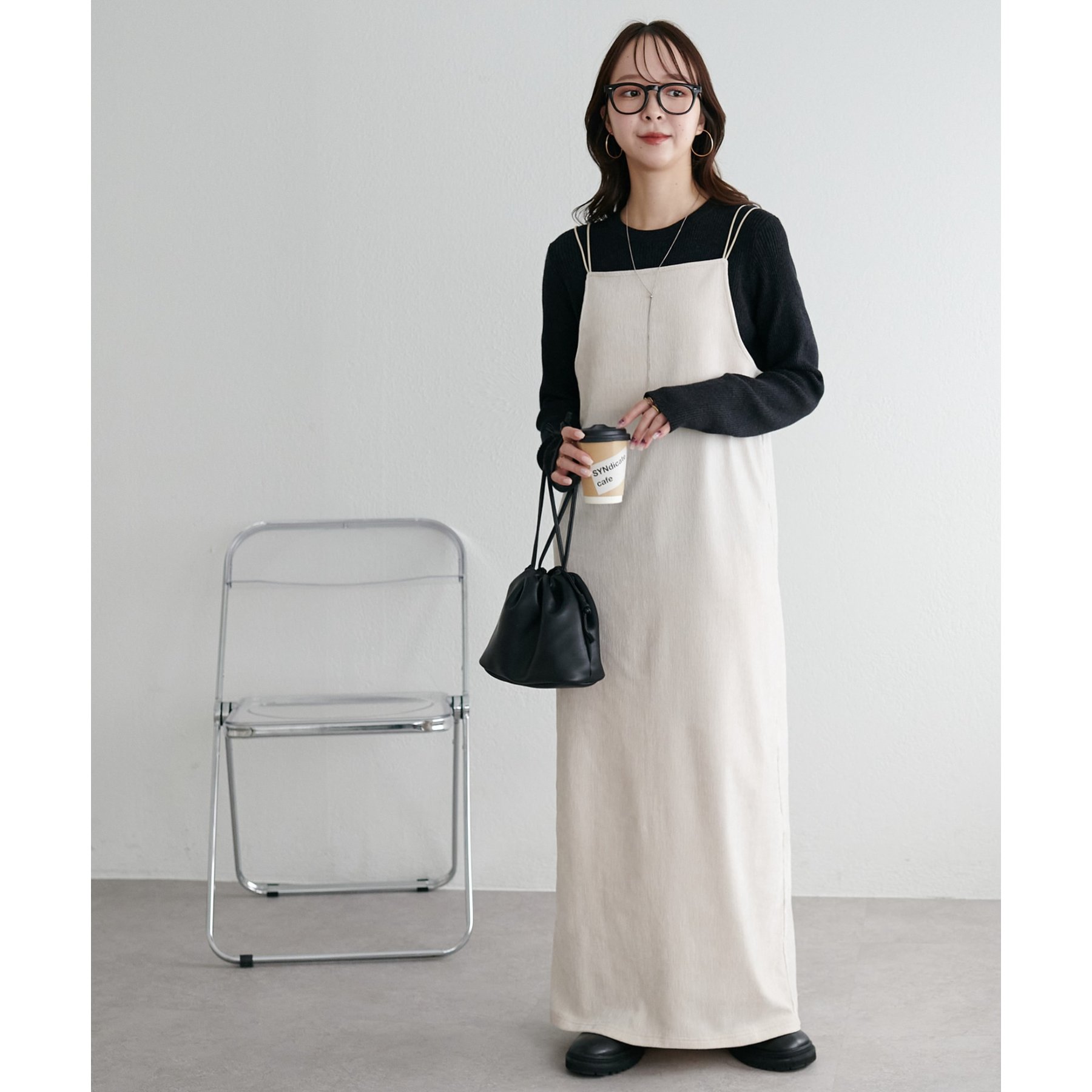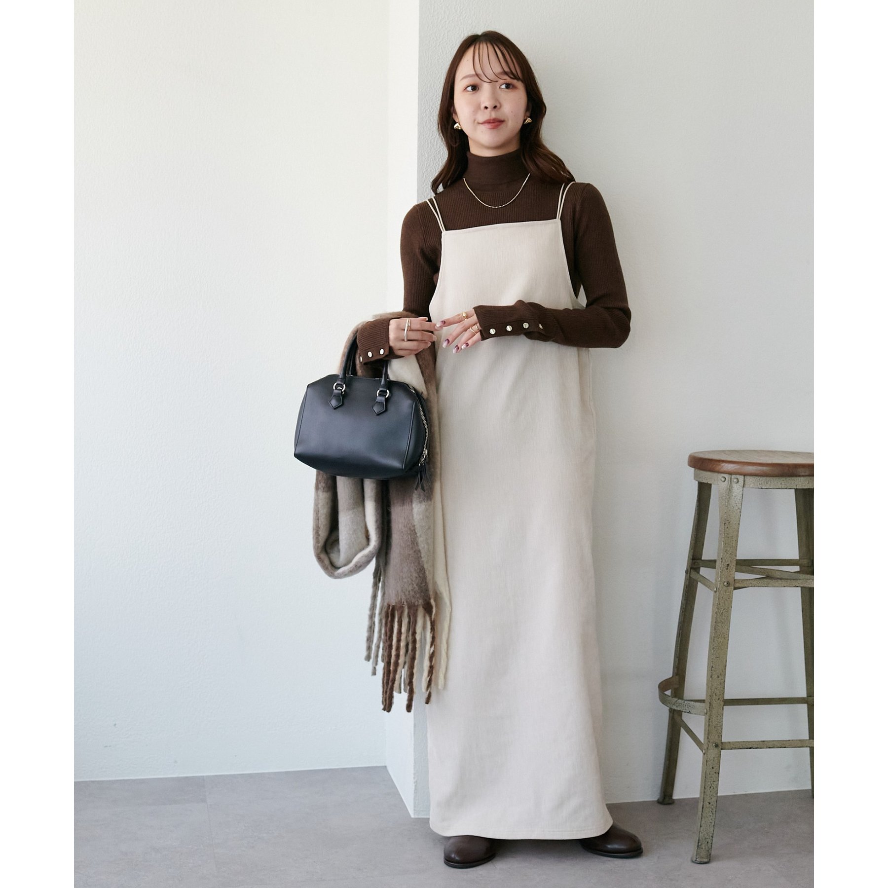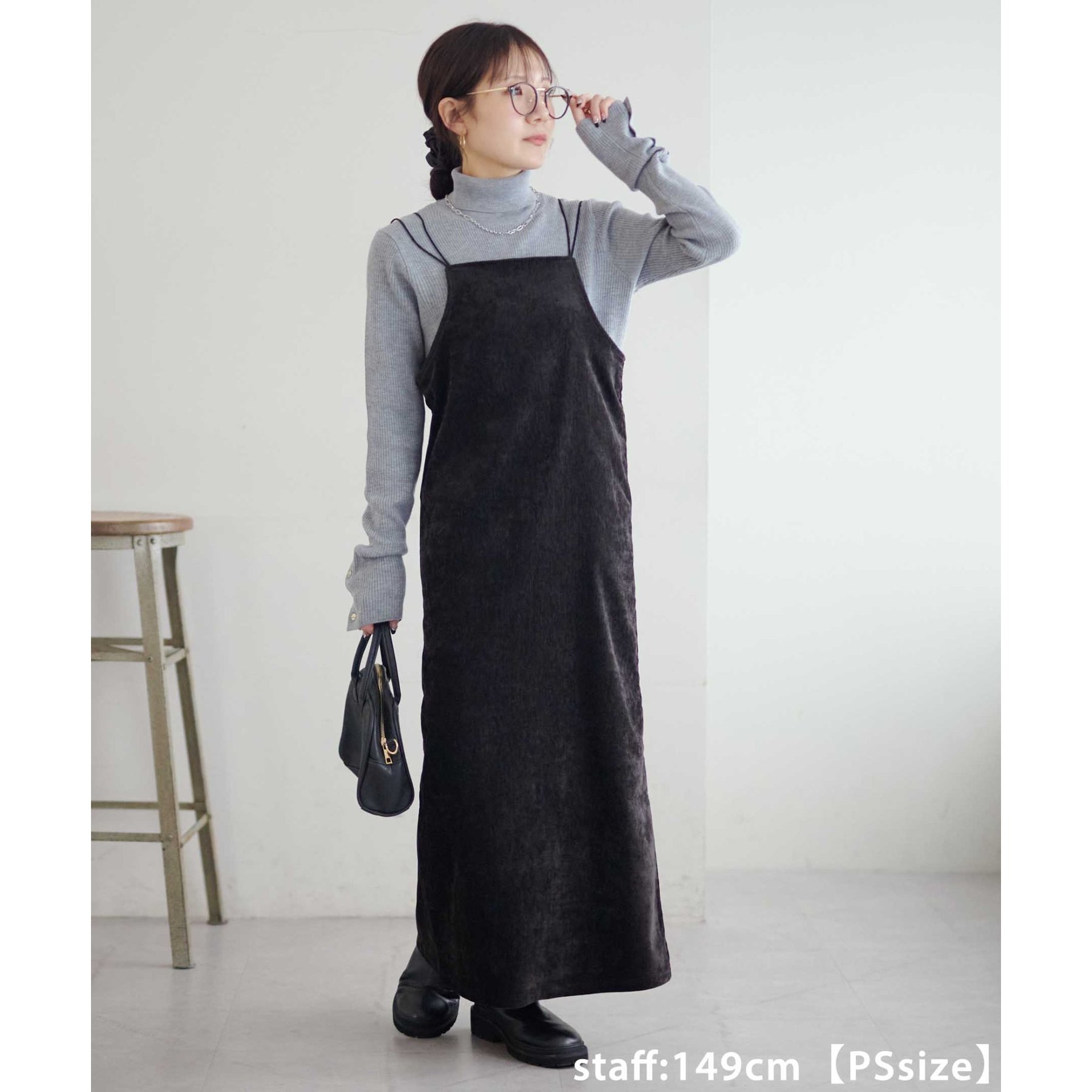 155cmスタッフ(Fサイズ着用):Fサイズでぺたんこ靴でもブーツでも合わせることができ、幅広いスタイリングに着回しできるワンピースです!♪
