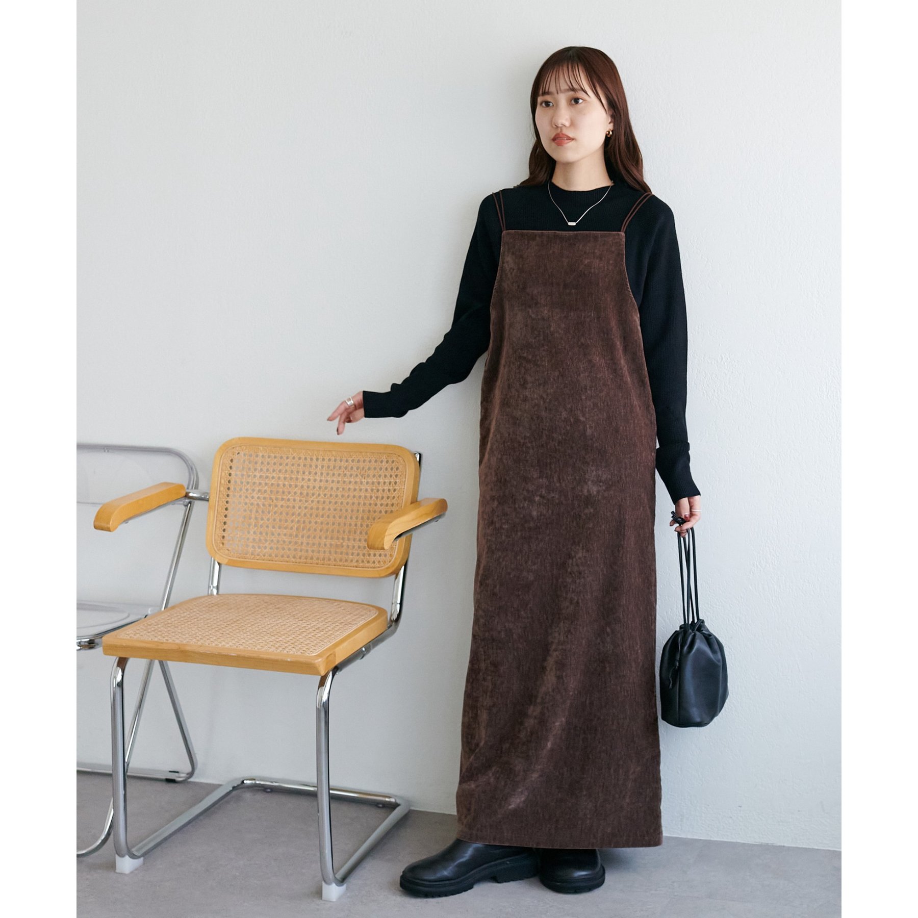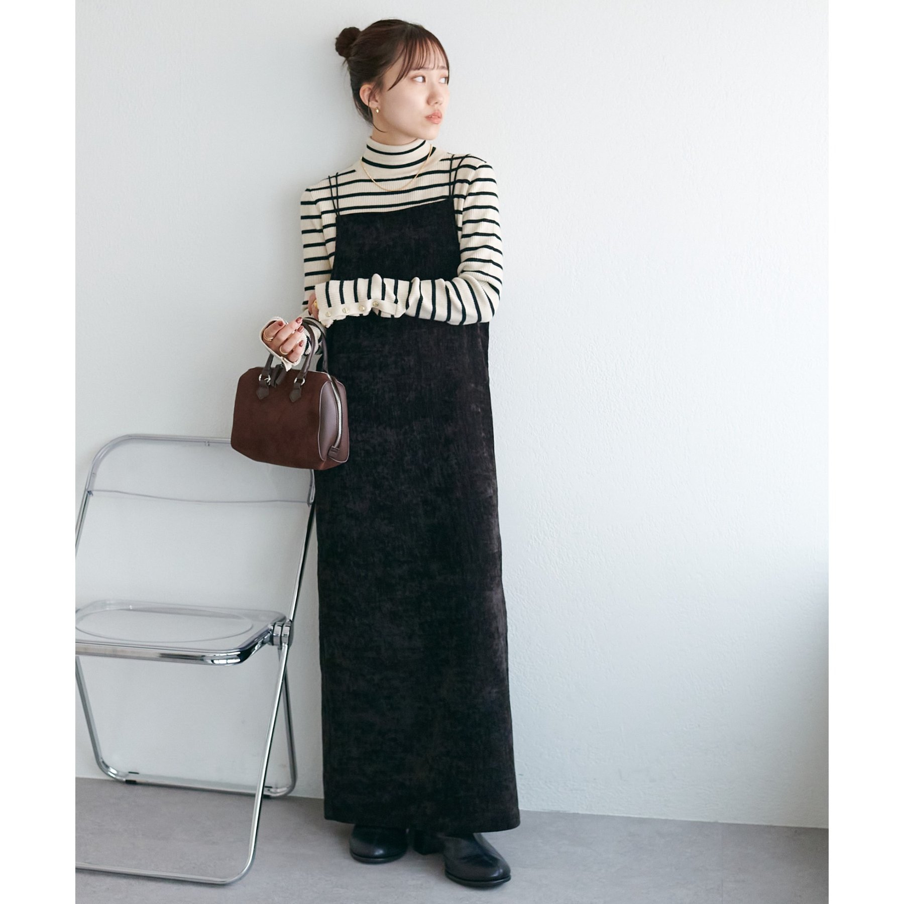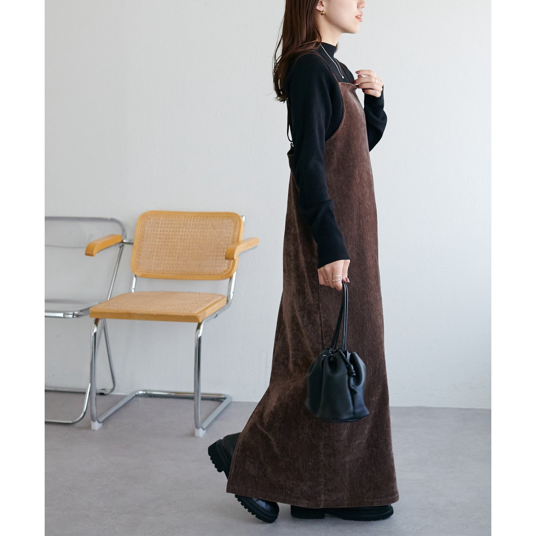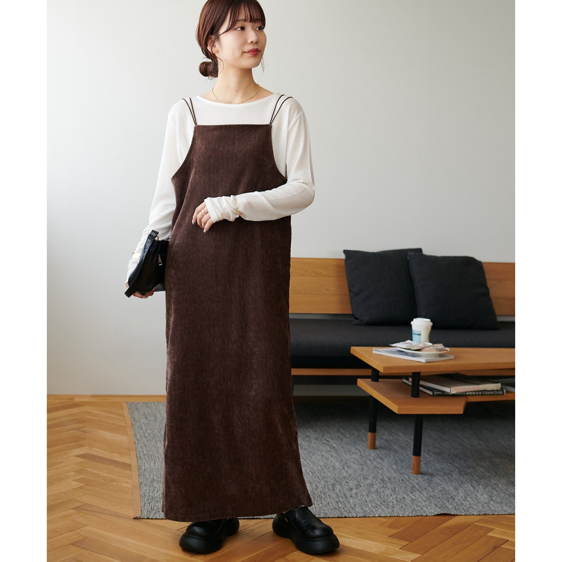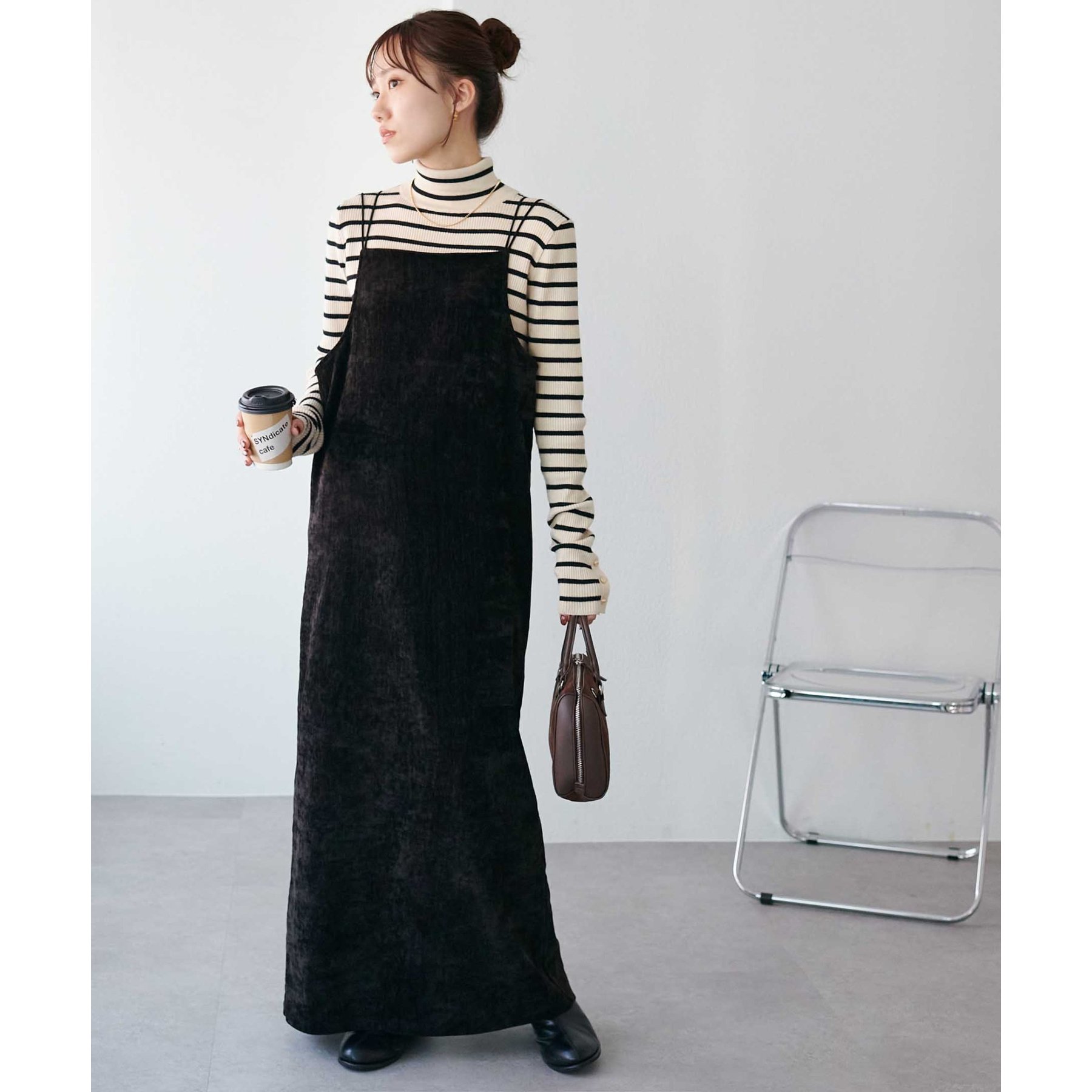 155cmスタッフ(Fサイズ着用):Fサイズでぺたんこ靴でもブーツでも合わせることができ、幅広いスタイリングに着回しできるワンピースです!♪