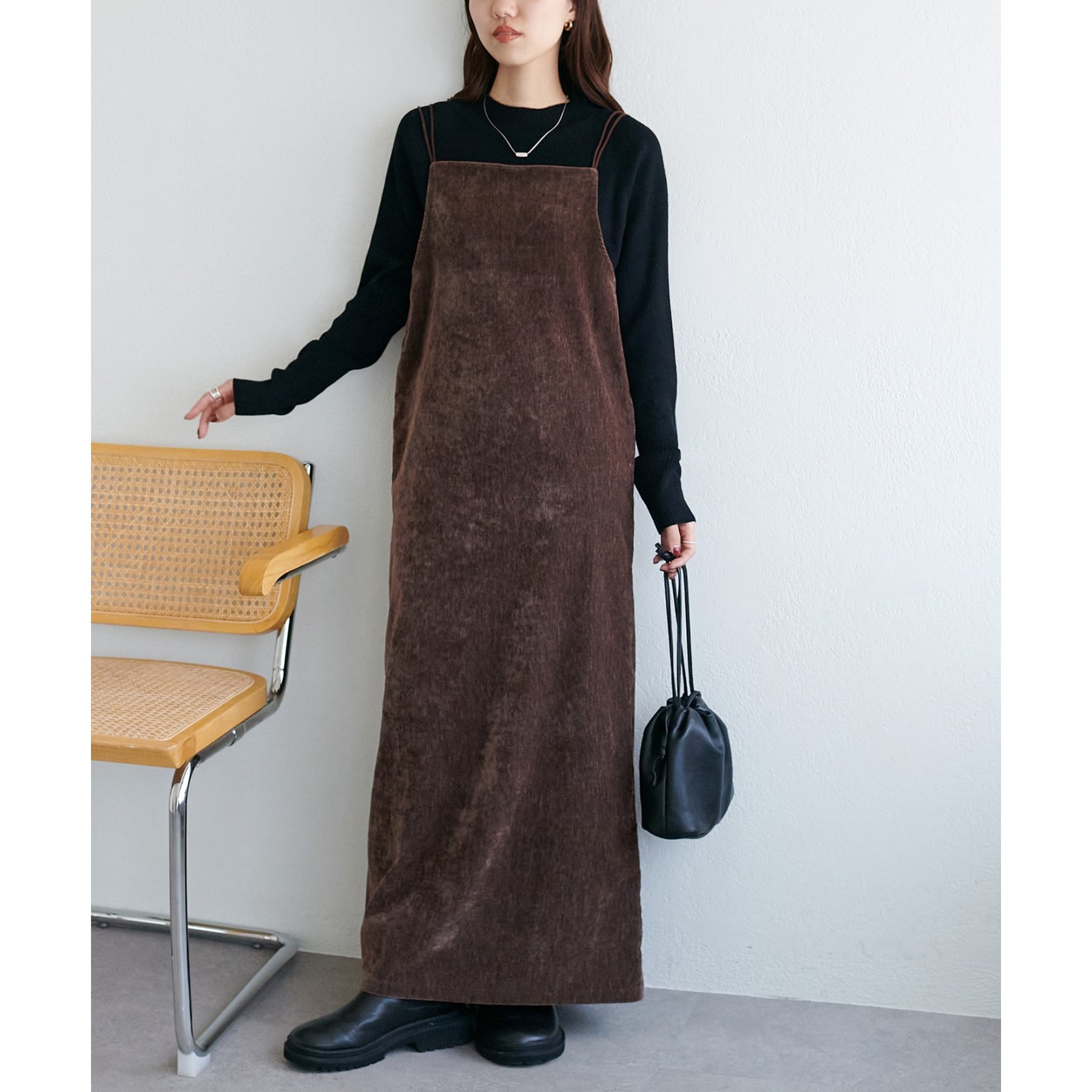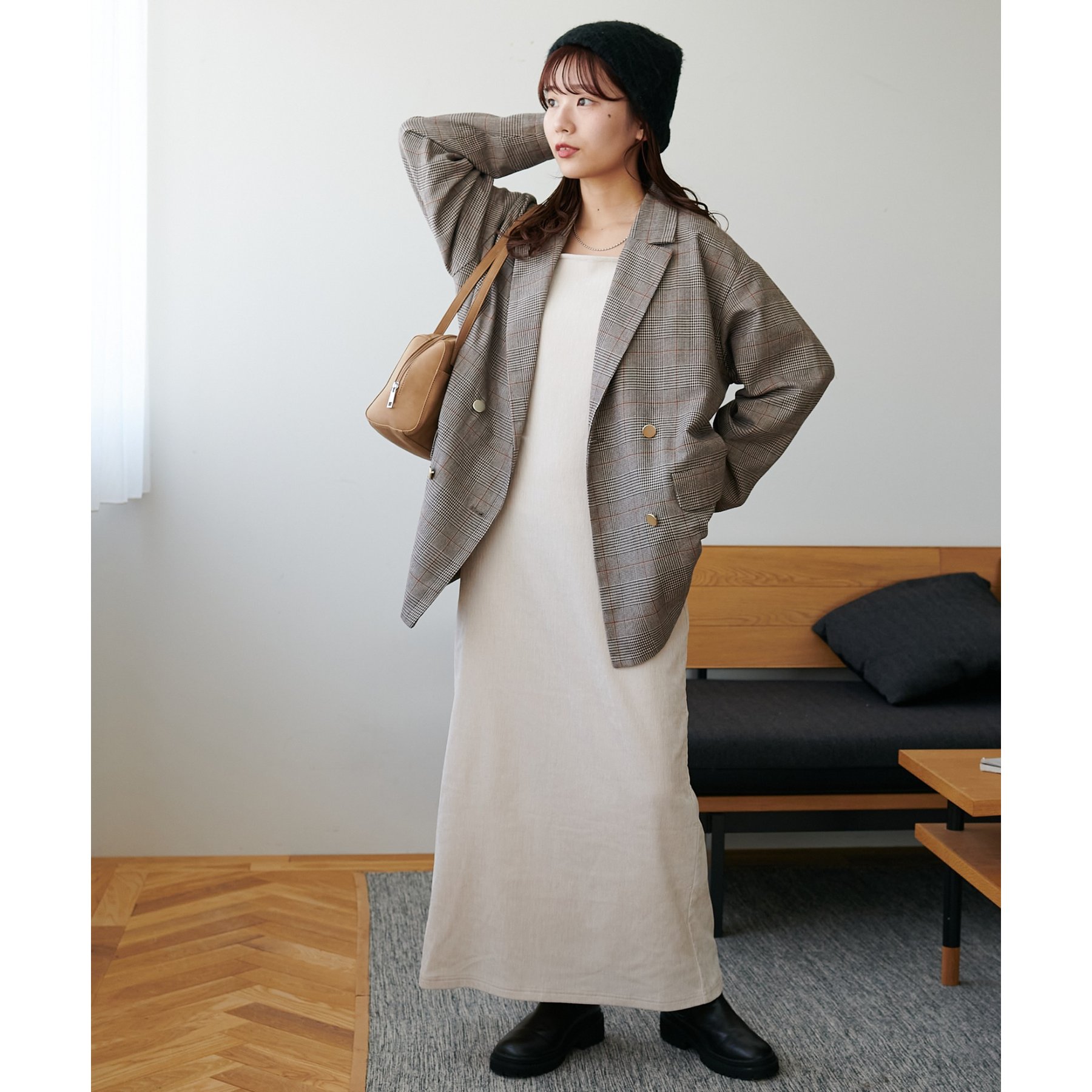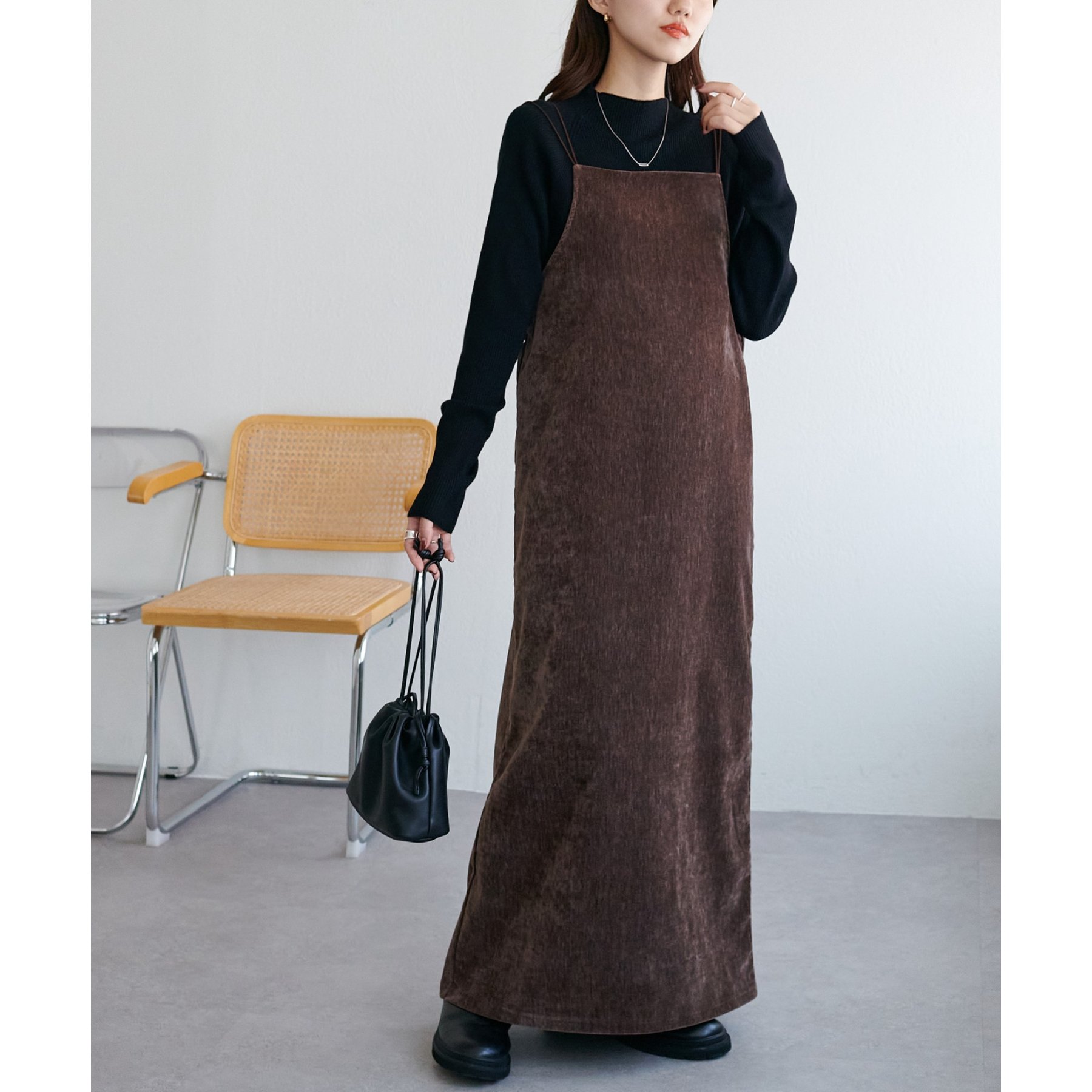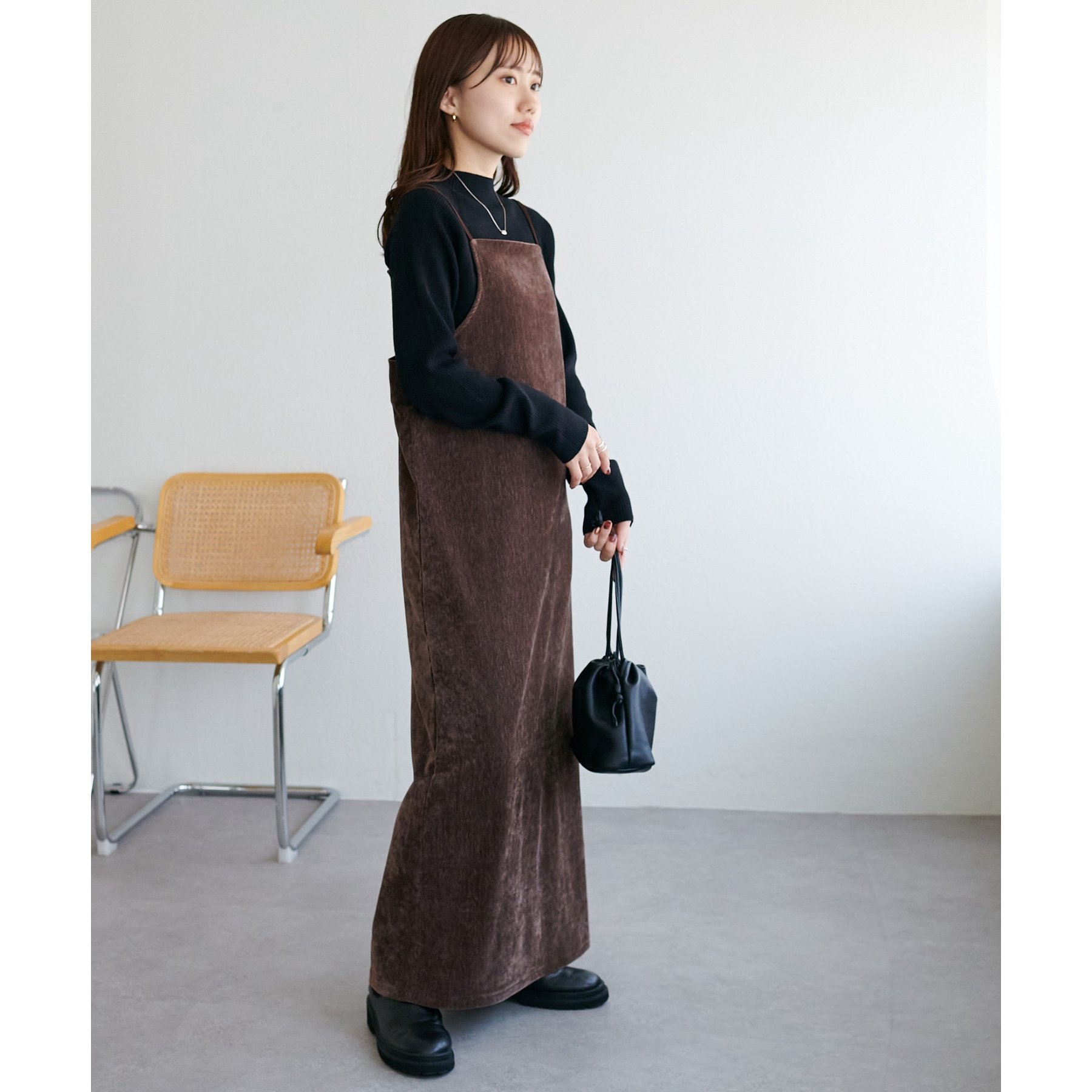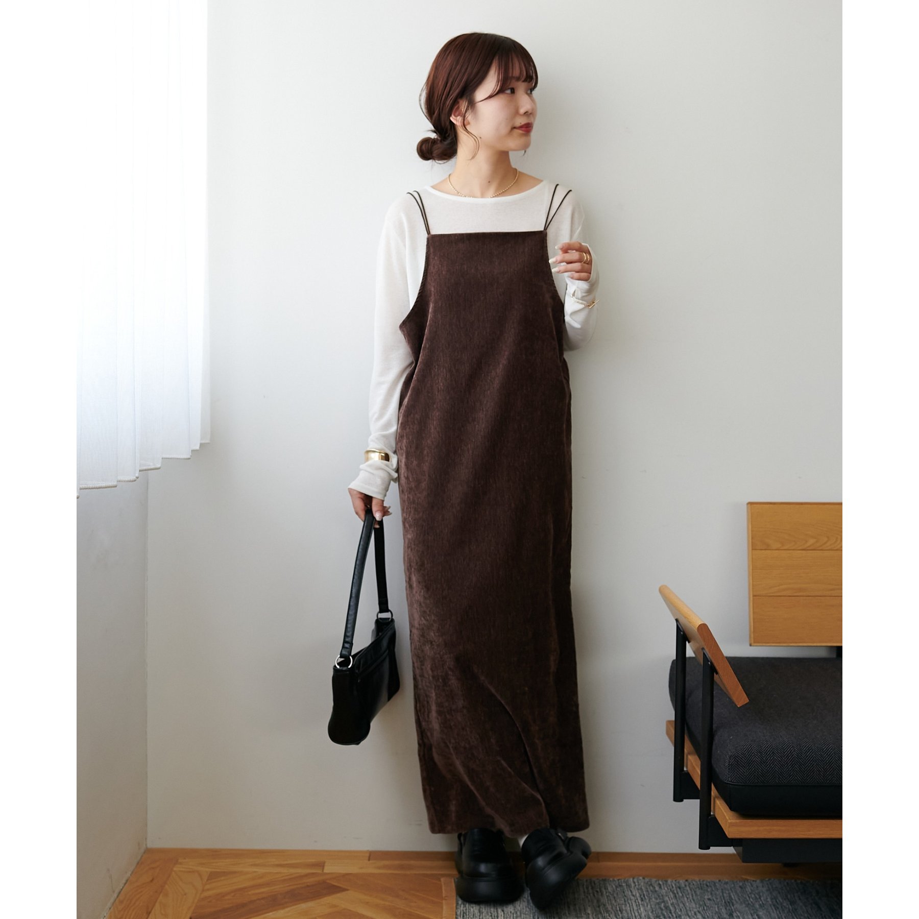 155cmスタッフ(Fサイズ着用):Fサイズでぺたんこ靴でもブーツでも合わせることができ、幅広いスタイリングに着回しできるワンピースです!♪
