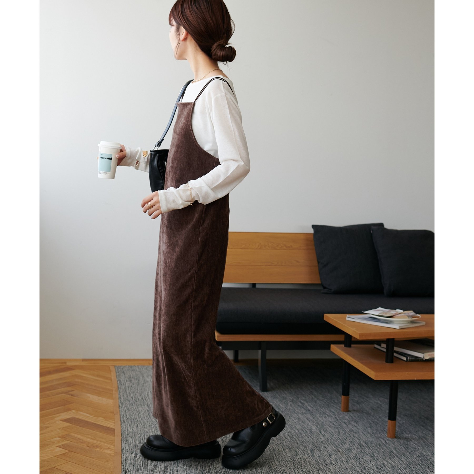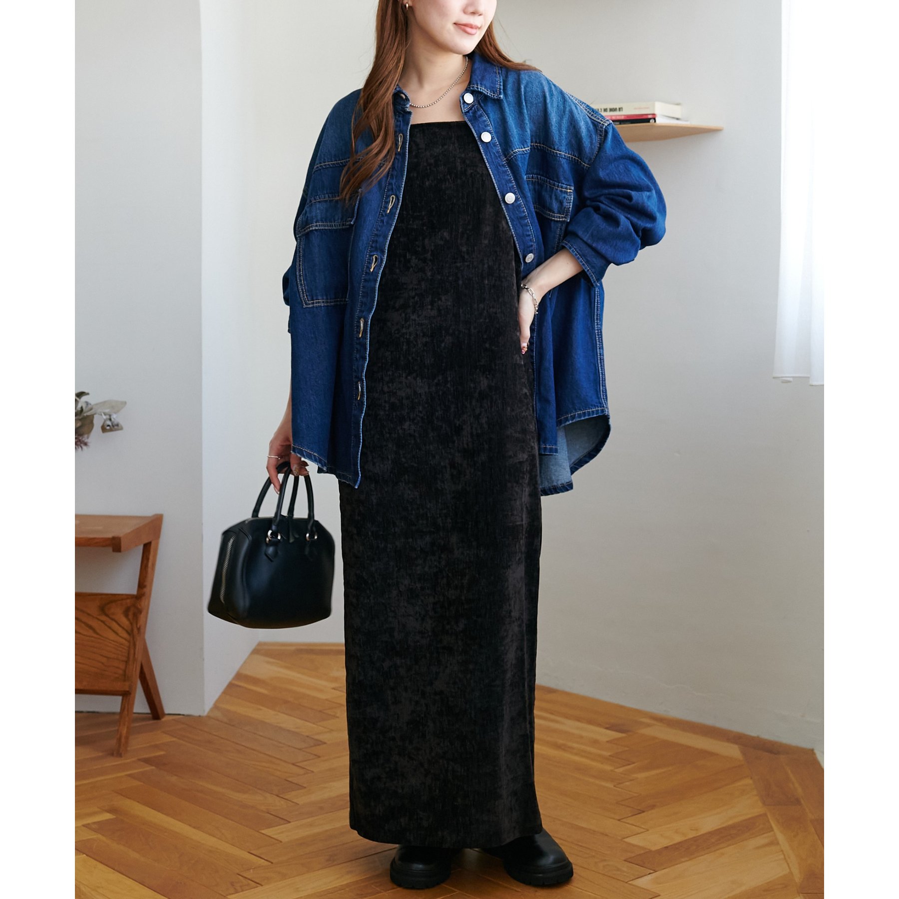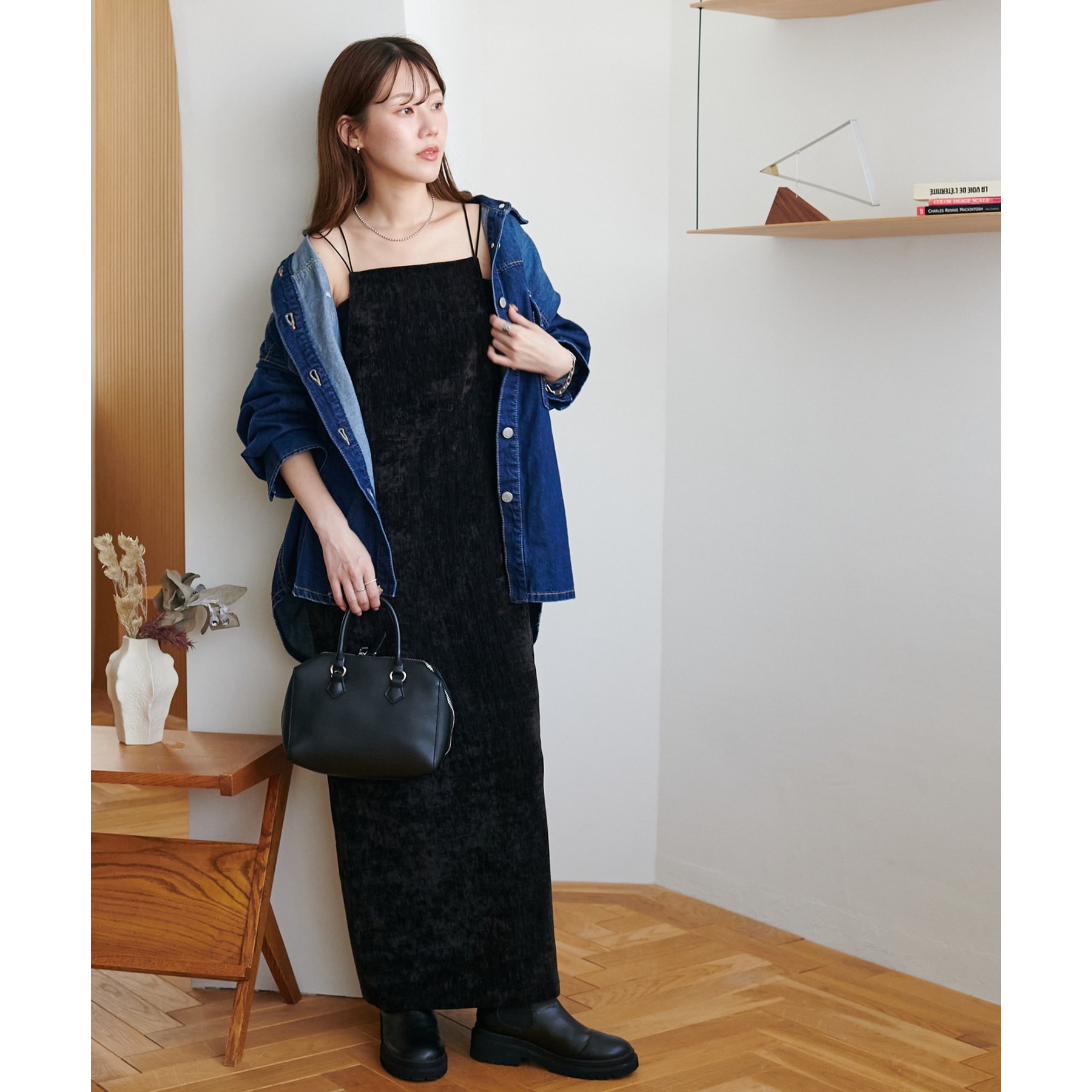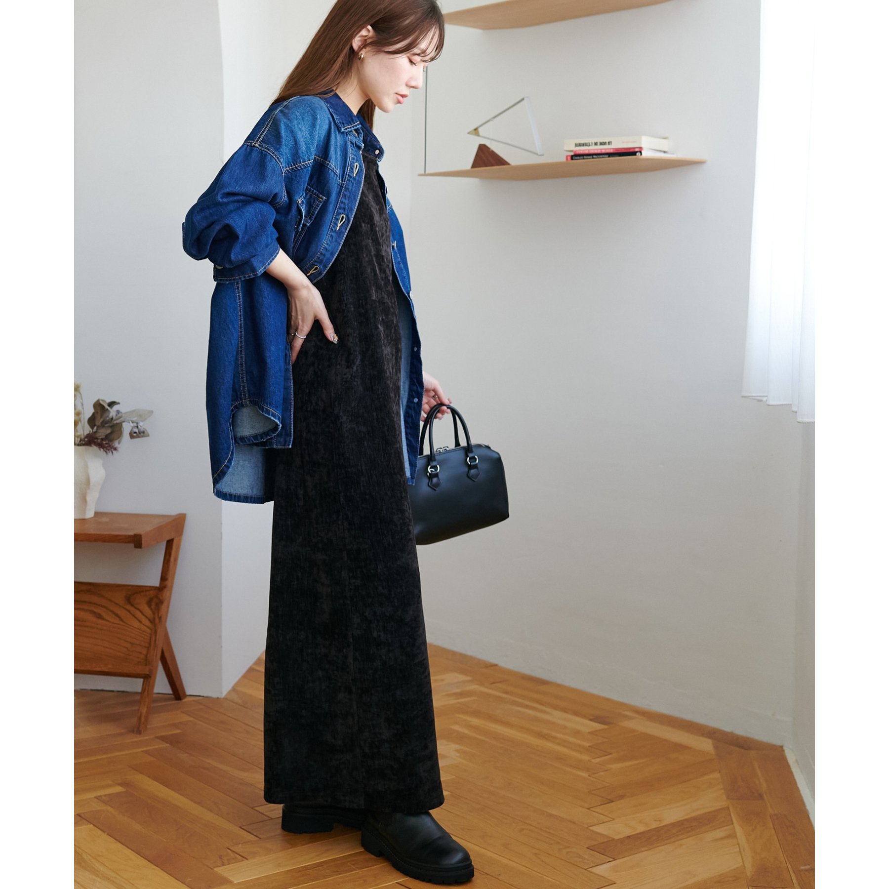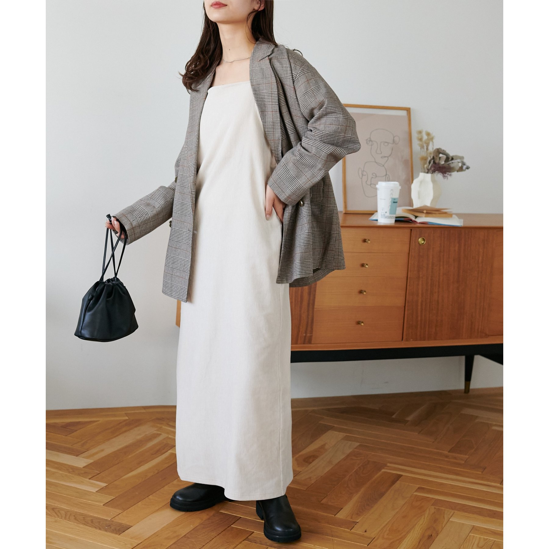 155cmスタッフ(Fサイズ着用):Fサイズでぺたんこ靴でもブーツでも合わせることができ、幅広いスタイリングに着回しできるワンピースです!♪