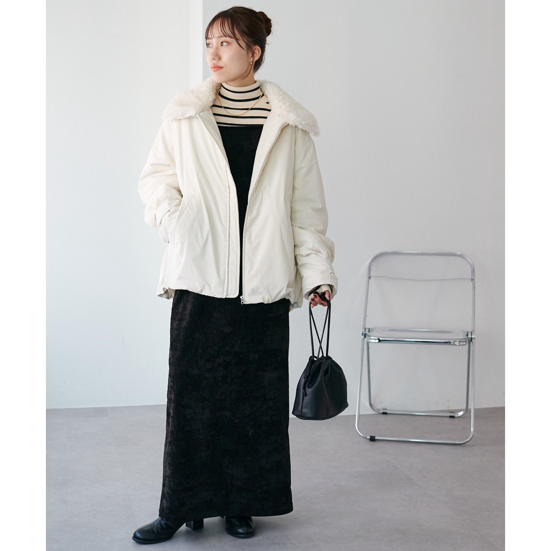 164cmスタッフ(Fサイズ着用):裾を引きずる心配が無い着丈なので、アジャスターを上げてデニムパンツなどをレイヤードしても着たいです◎そのまま着てもアジャスターで調節可能なので足首くらいの丈で着ることもできました!