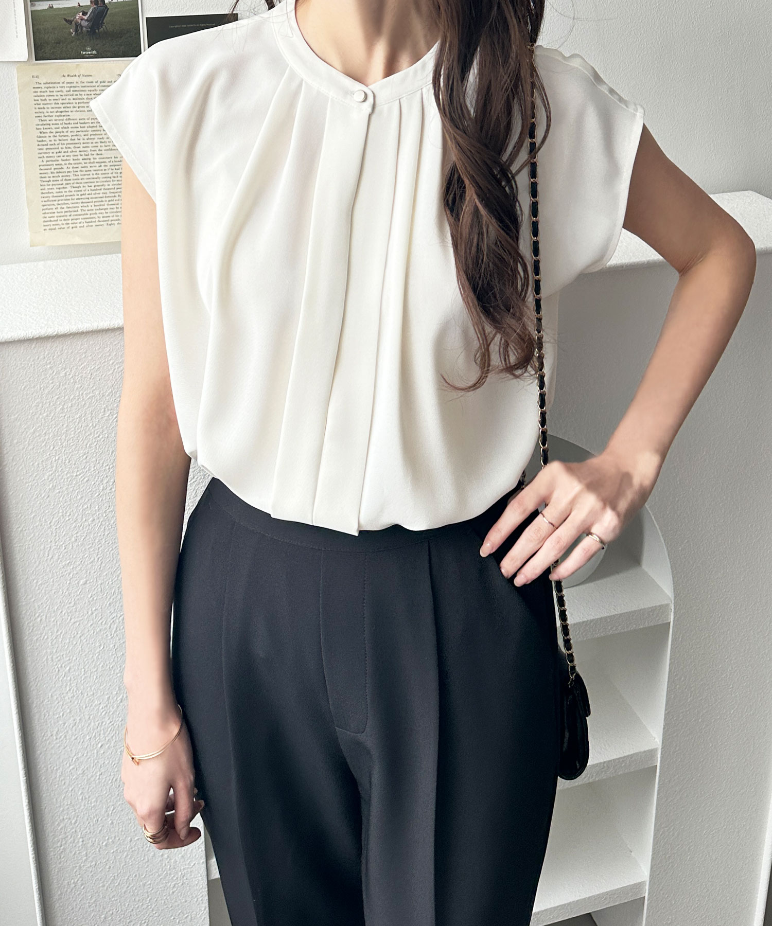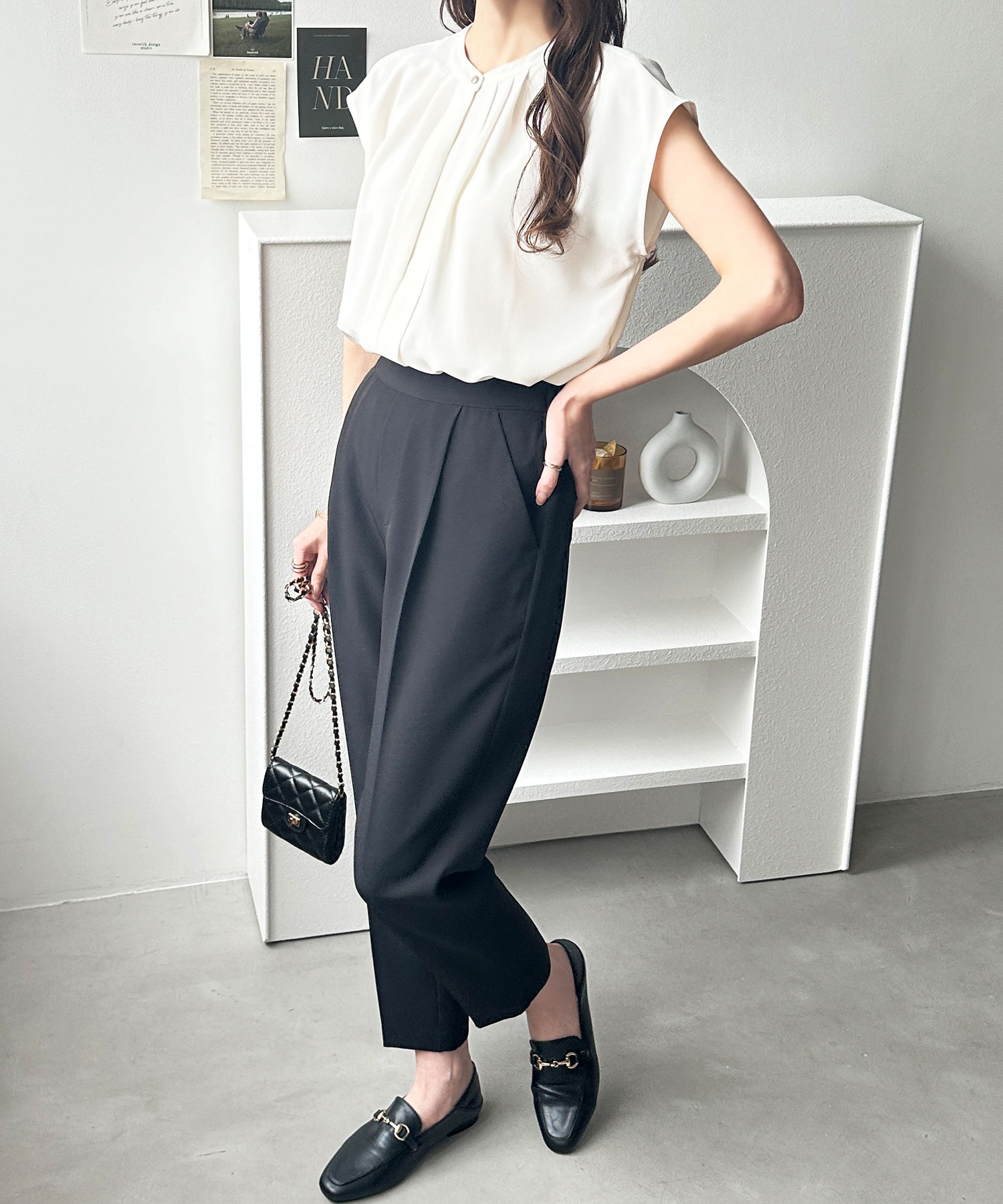 通勤からお出掛けまで幅広いシーンで活躍するフロントタックブラウス