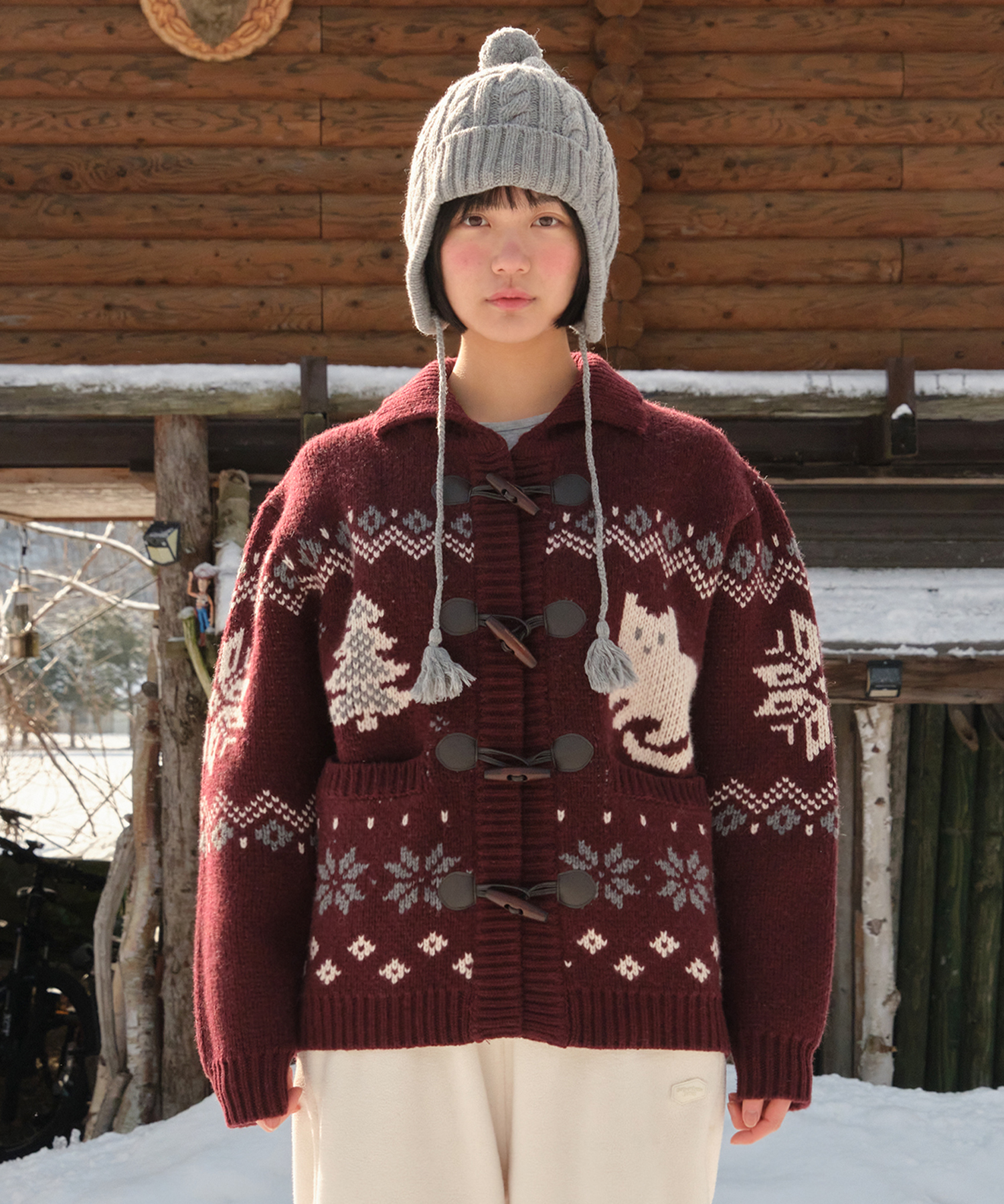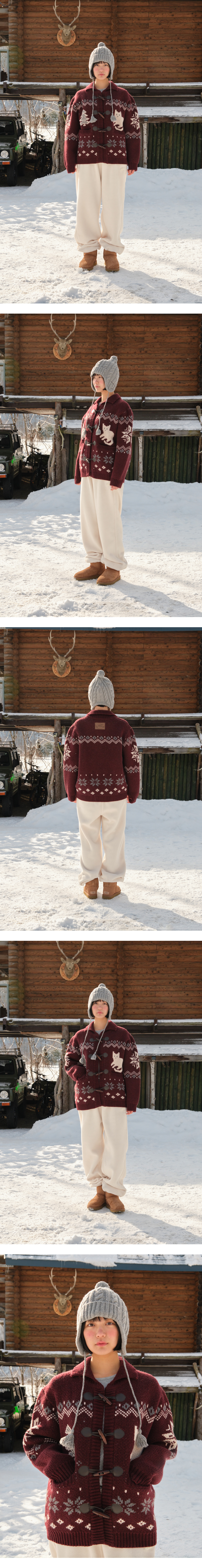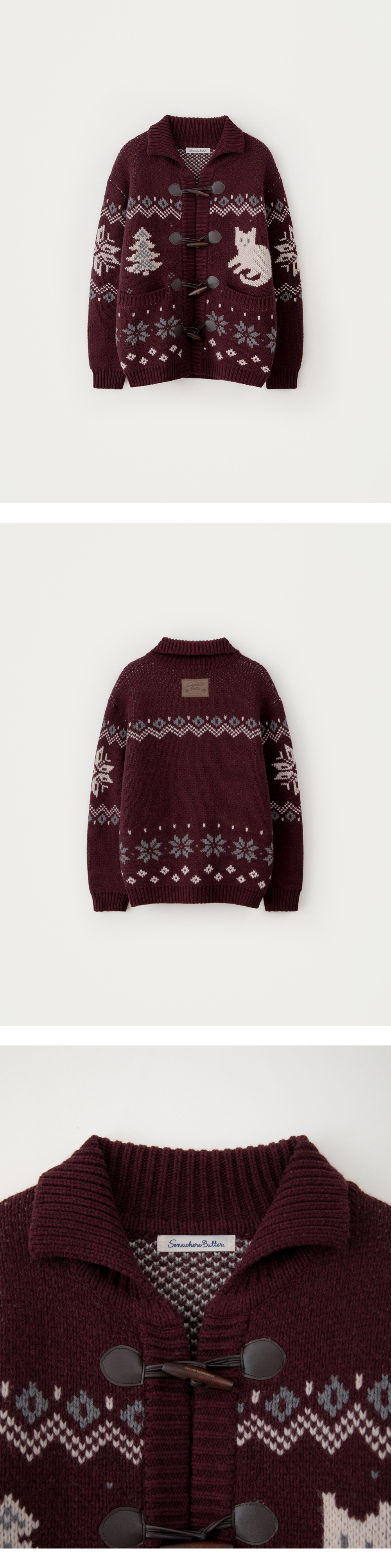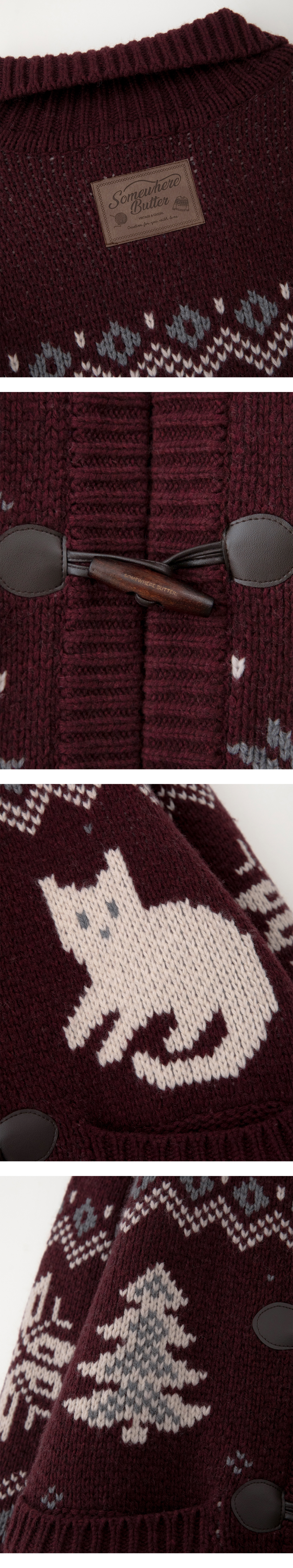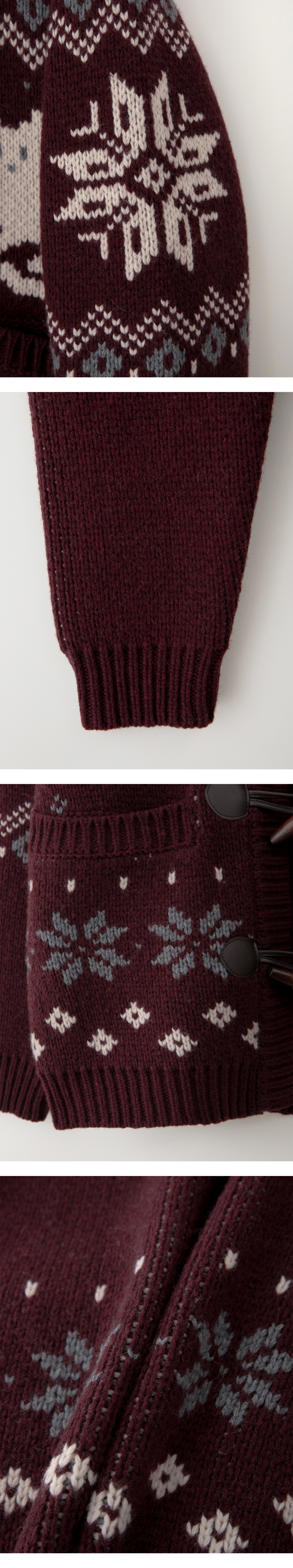 Tree Cat Wool Cowichan Cardigan - Burgundy