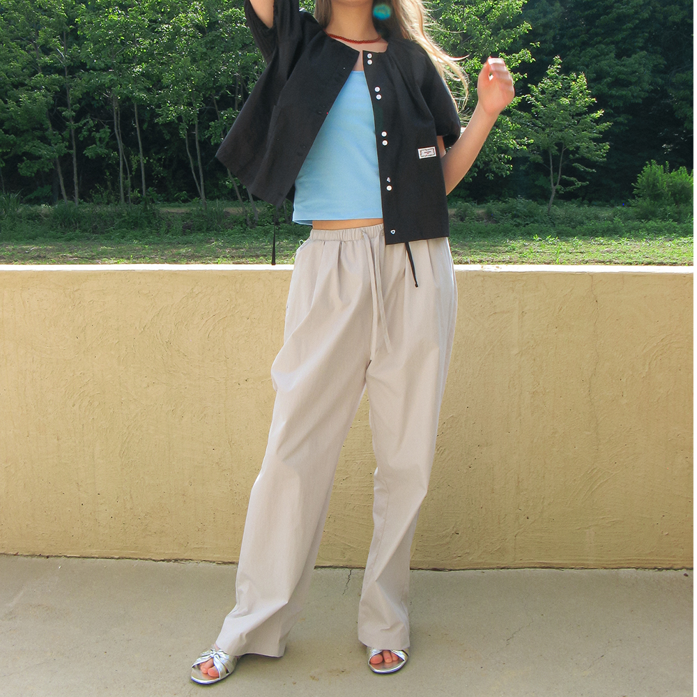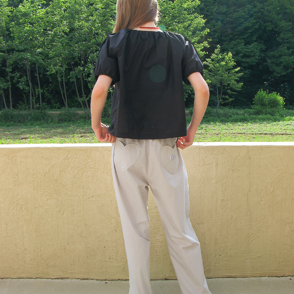 BACK HEART STITCH POCKET BANDING PANTS LIGHT GREY