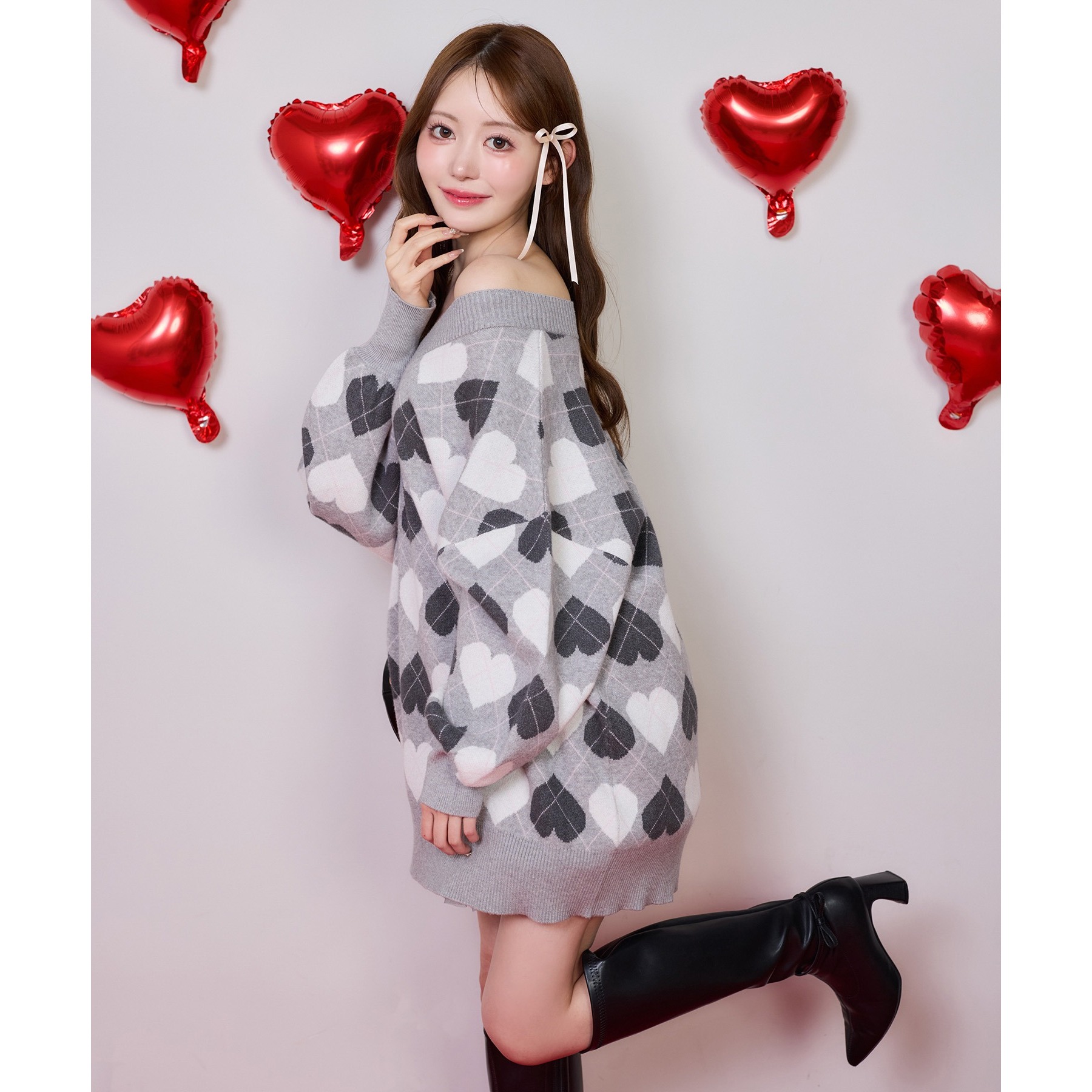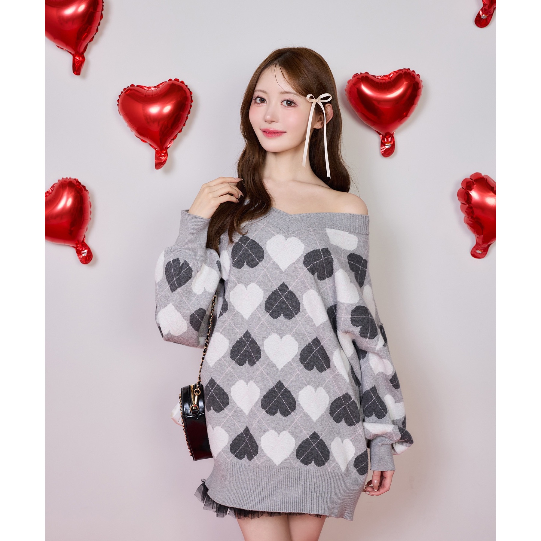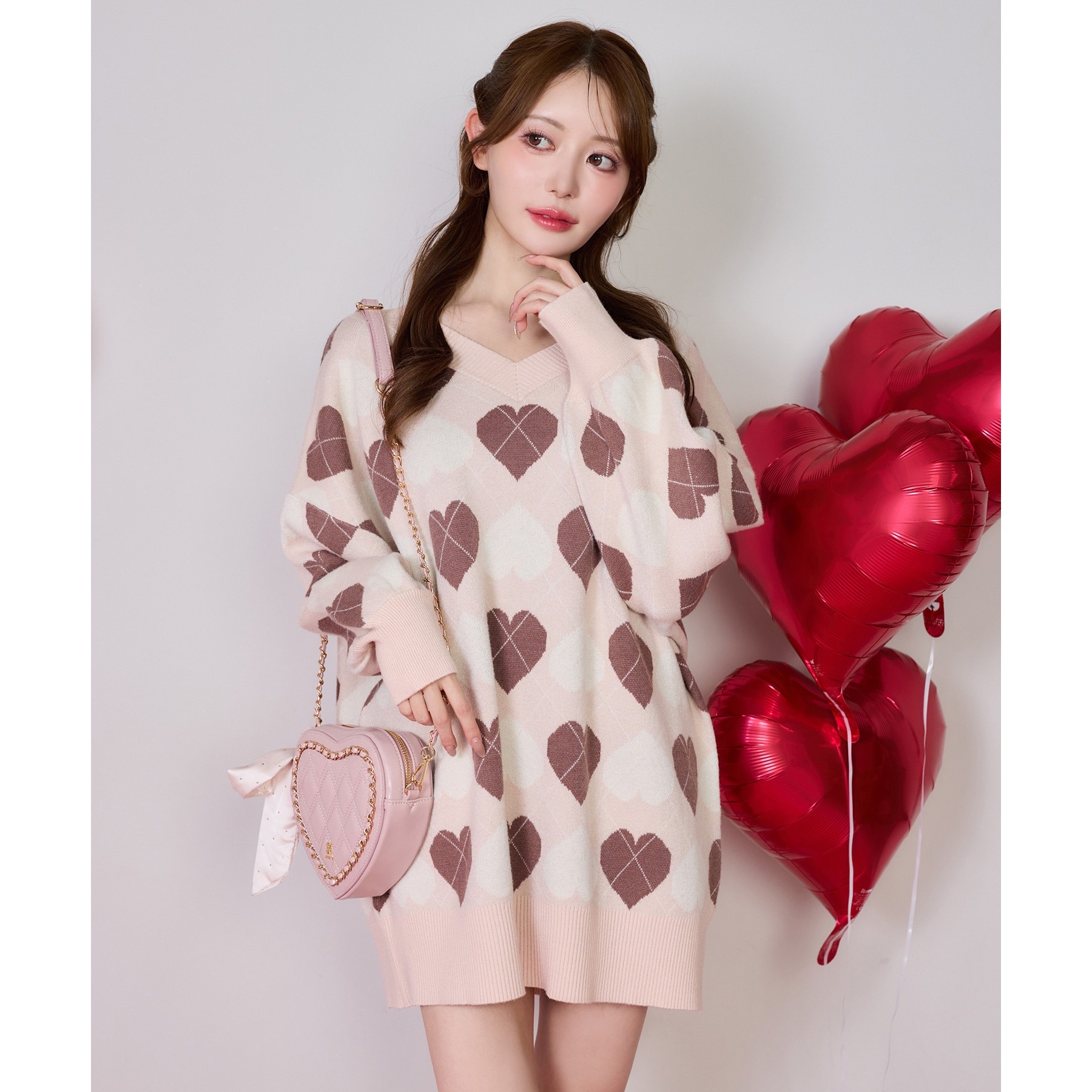 ハートモチーフを取り入れたアーガイルチェックが目を惹く、主役級ミニニットワンピース。