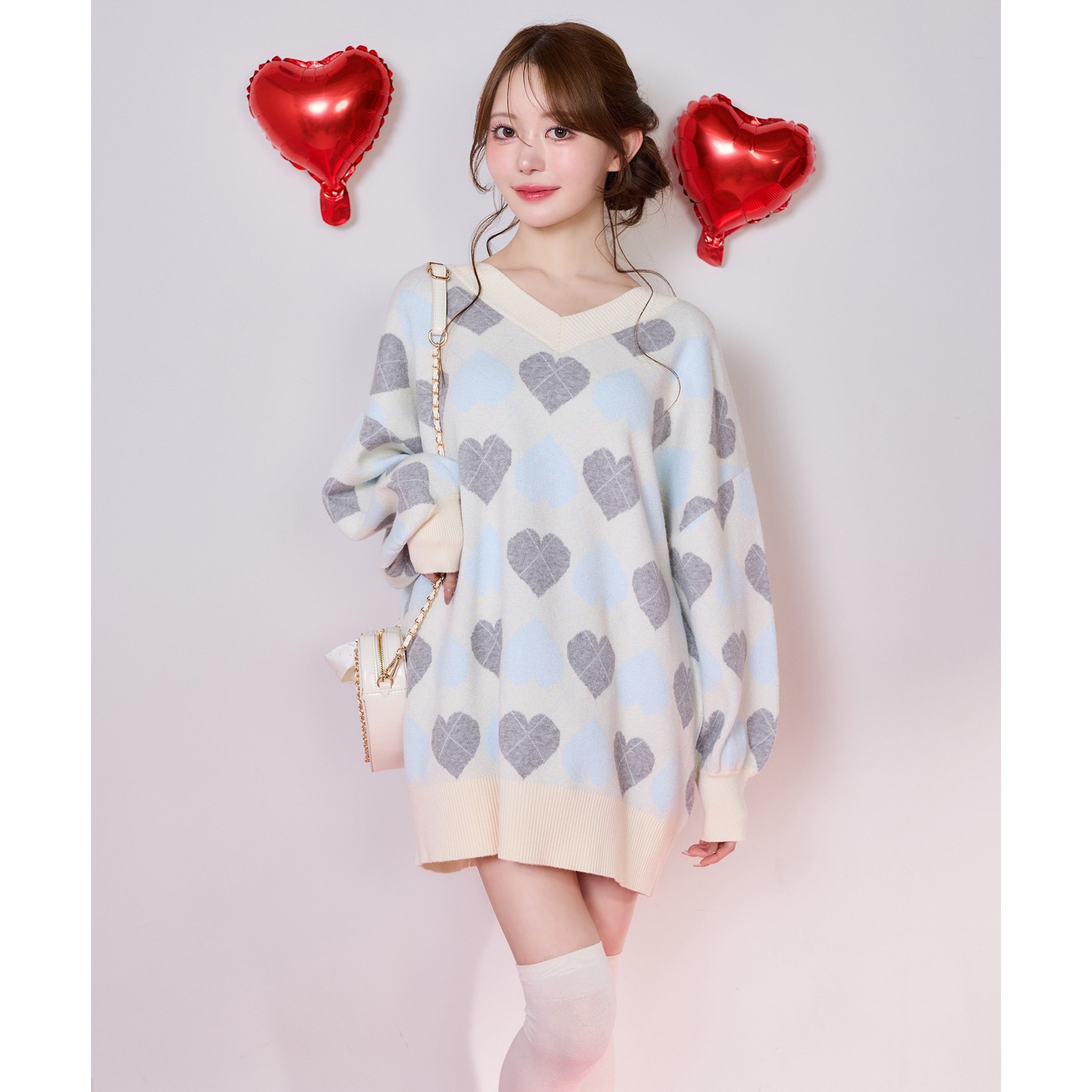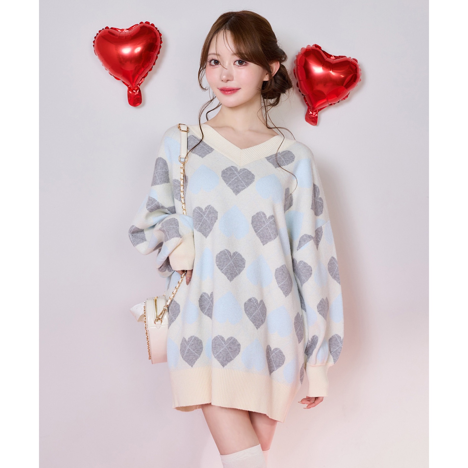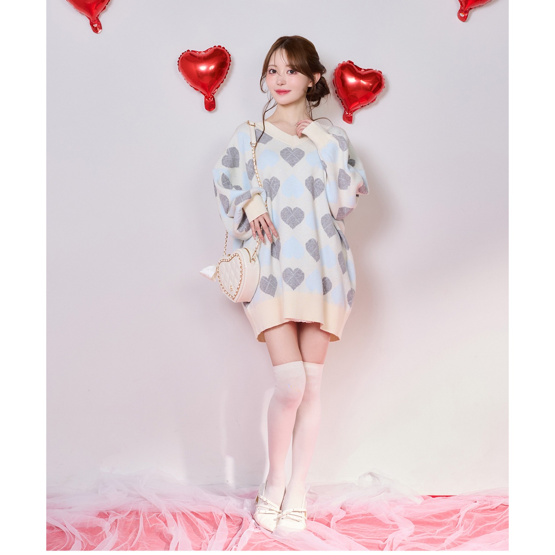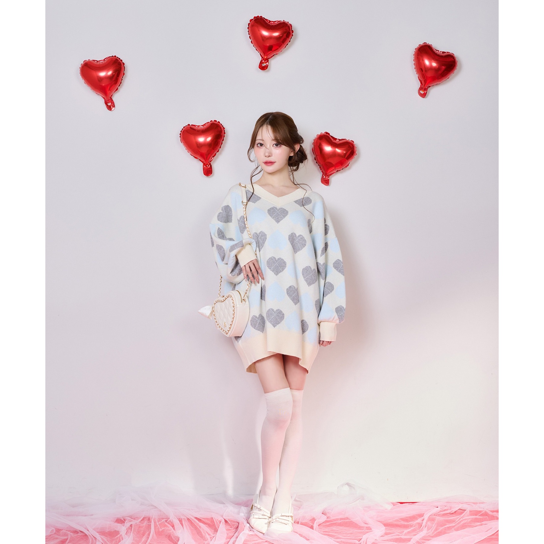 ハートモチーフを取り入れたアーガイルチェックが目を惹く、主役級ミニニットワンピース。
