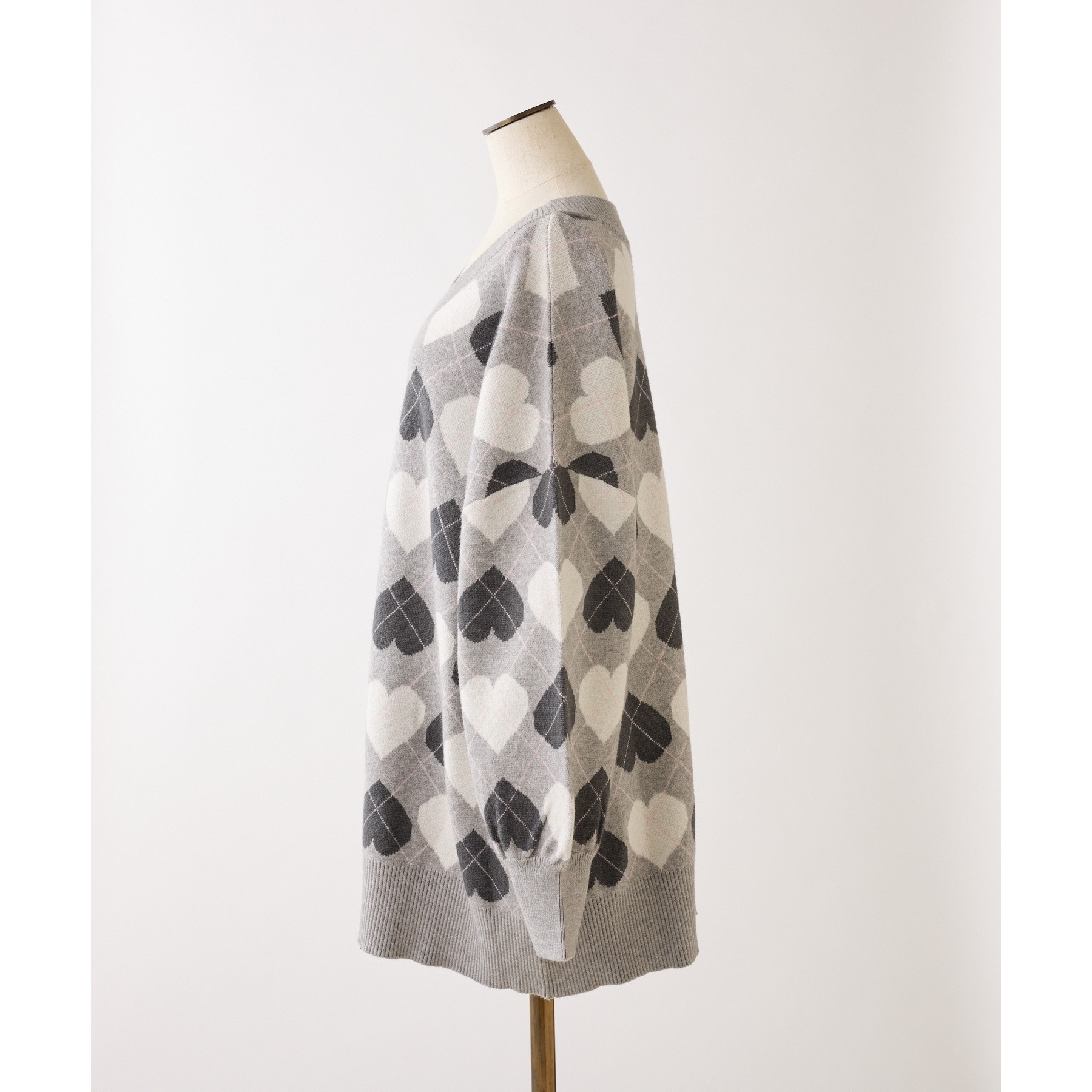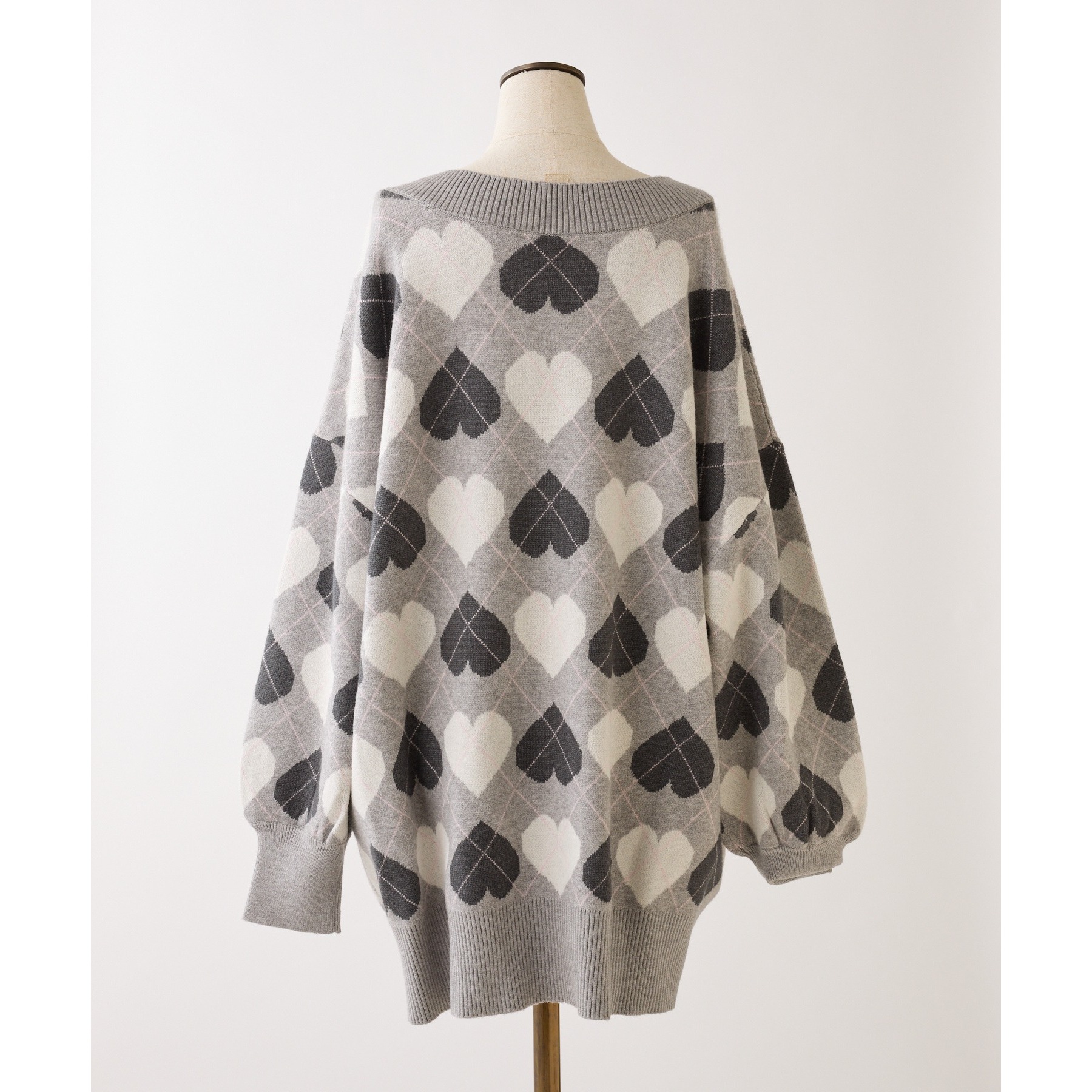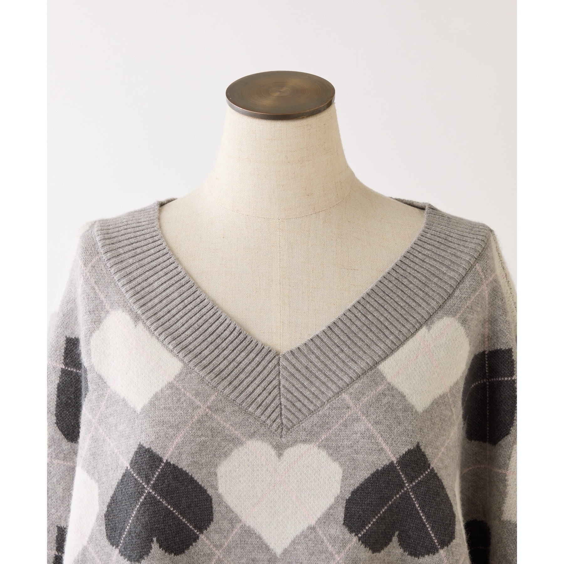 甘さのあるハート柄と、落ち着いたアーガイルデザインの組み合わせで、可愛くなりすぎず大人っぽさもプラス。
