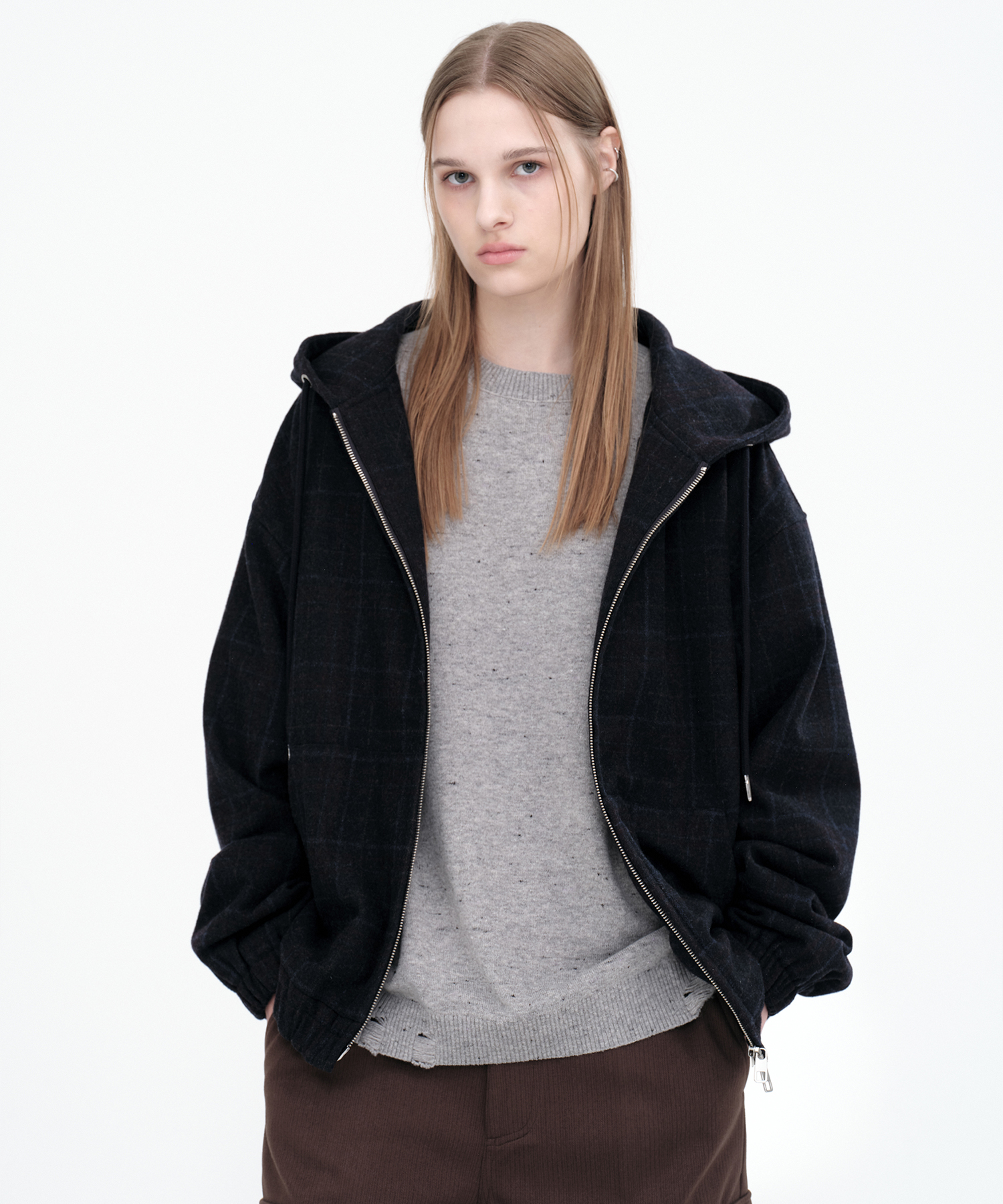 Over Fit Check Hoodie Jacket [Indigo Black]