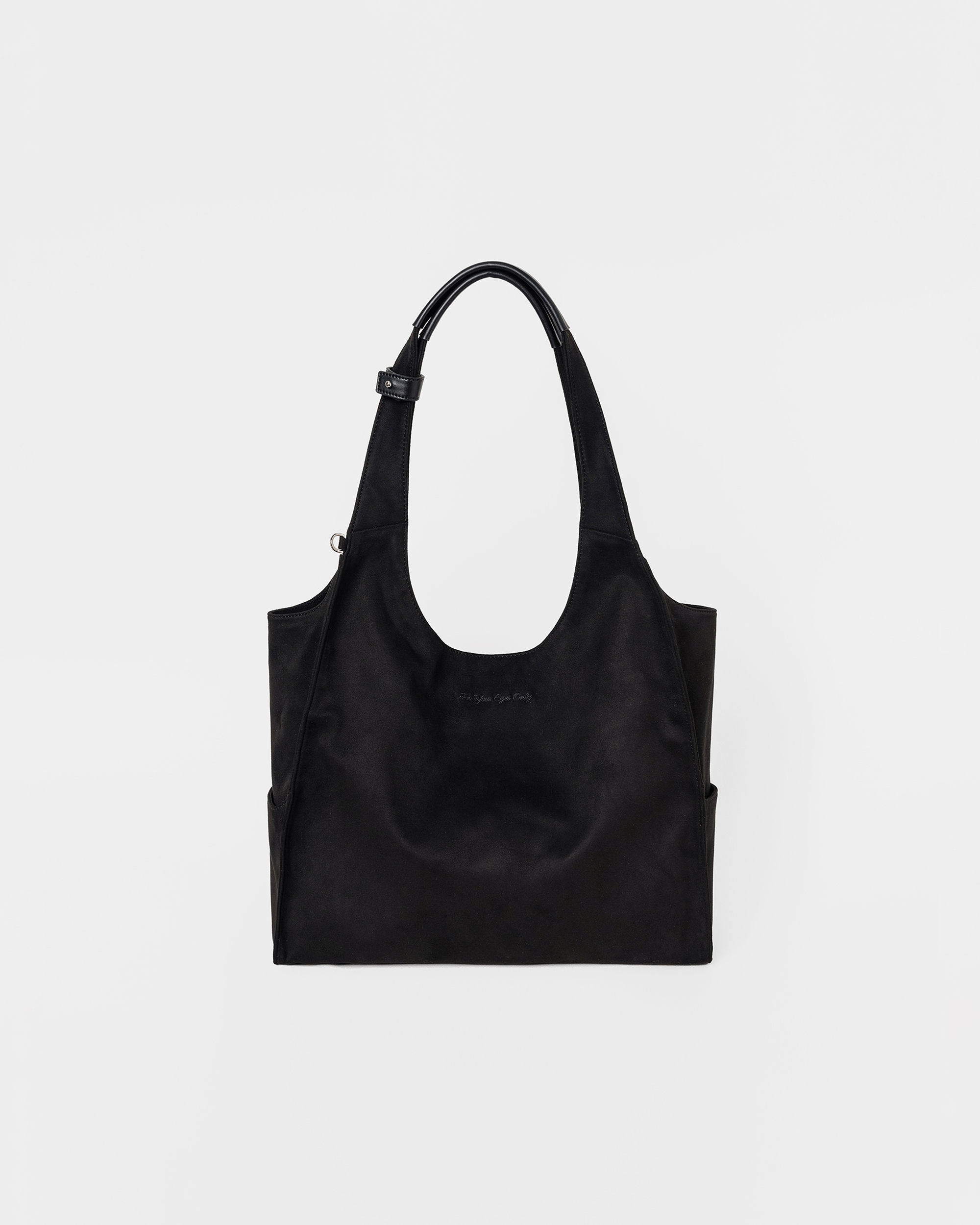 Dリングのディテールとフロントのロゴ刺繍がアクセントとなり、