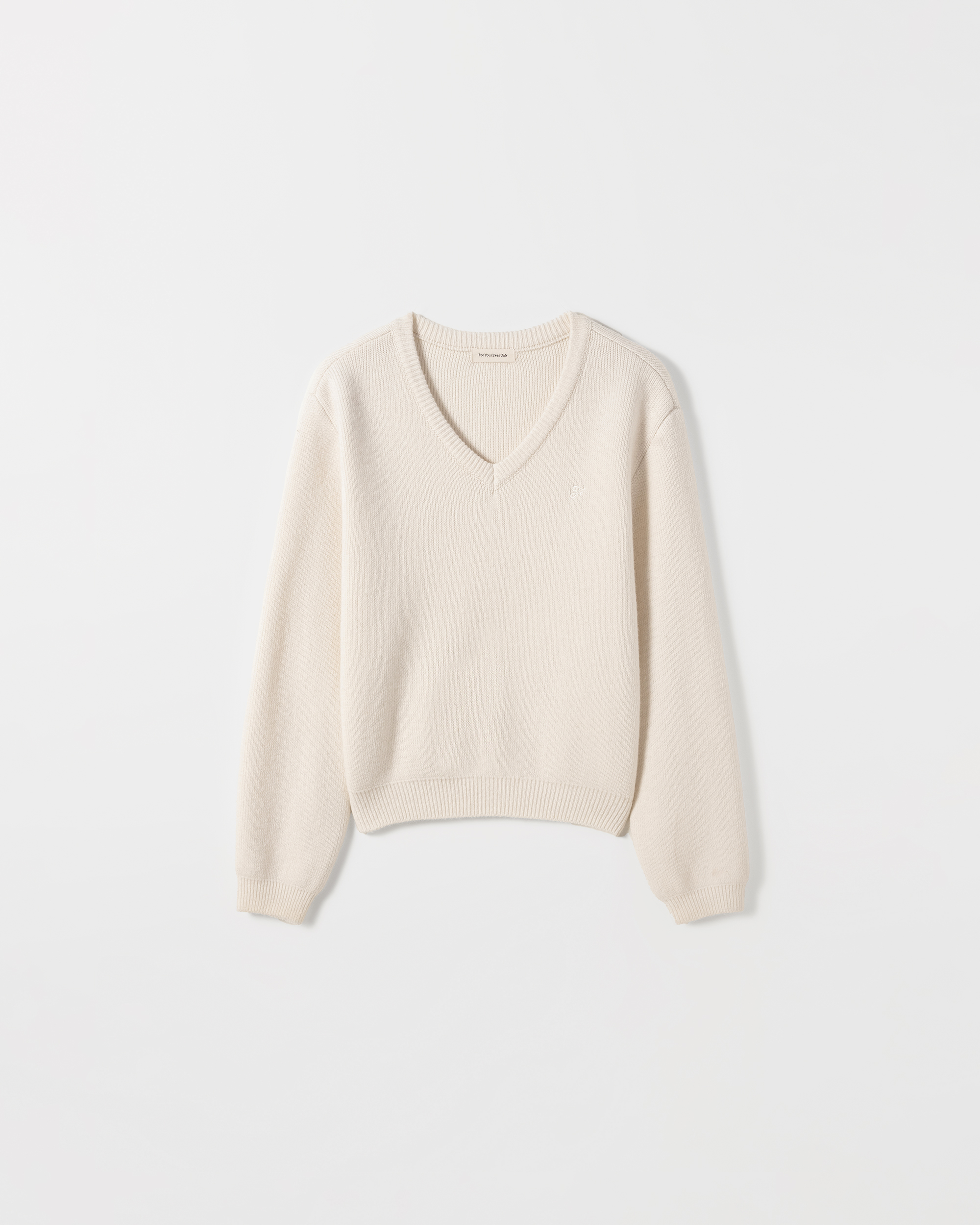 程よいVネックデザインと、フロントに施された F イニシャル刺繍がさりげないアクセントに。