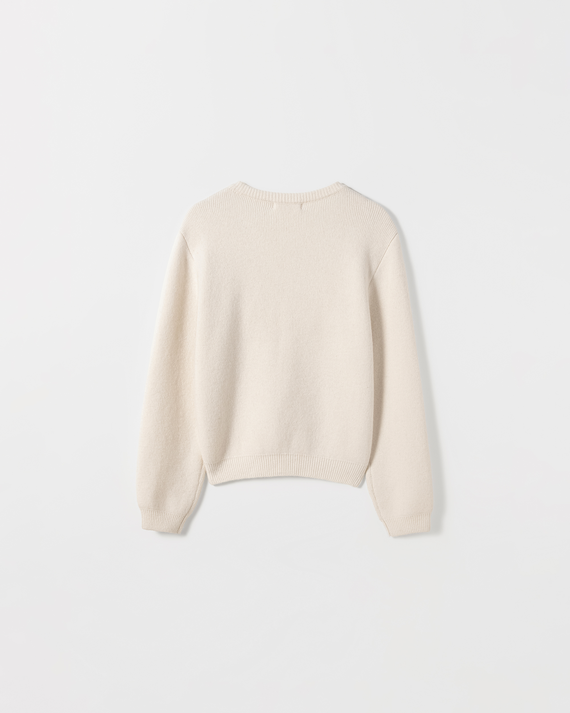 ウールとカシミヤをブレンドした糸で編み立てられており、肌にやさしく触れ、冬でも暖かく快適に着用できます。