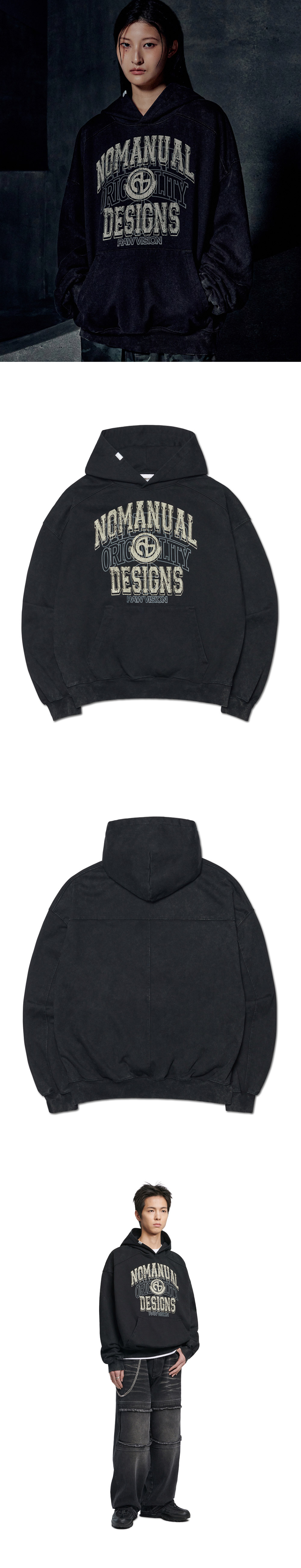 LAYERED ARCH GRAPHIC HOODIE - WASHED BLACK
