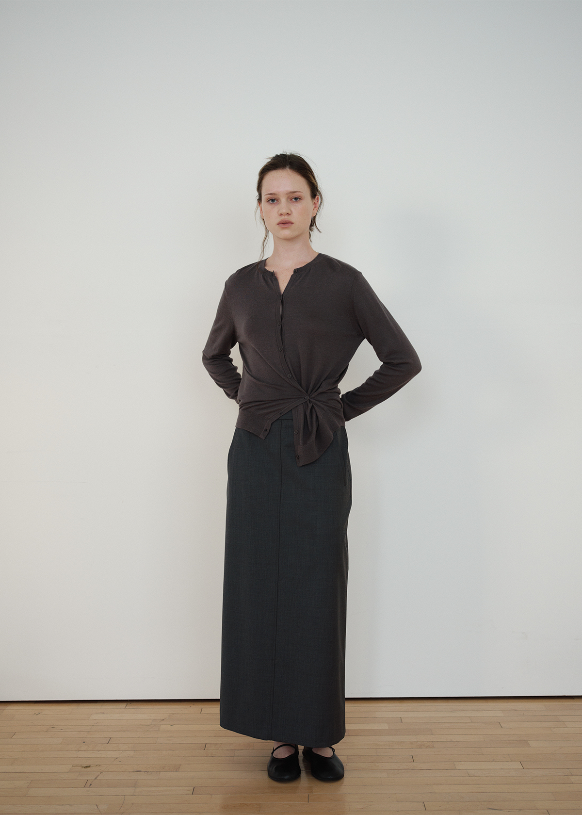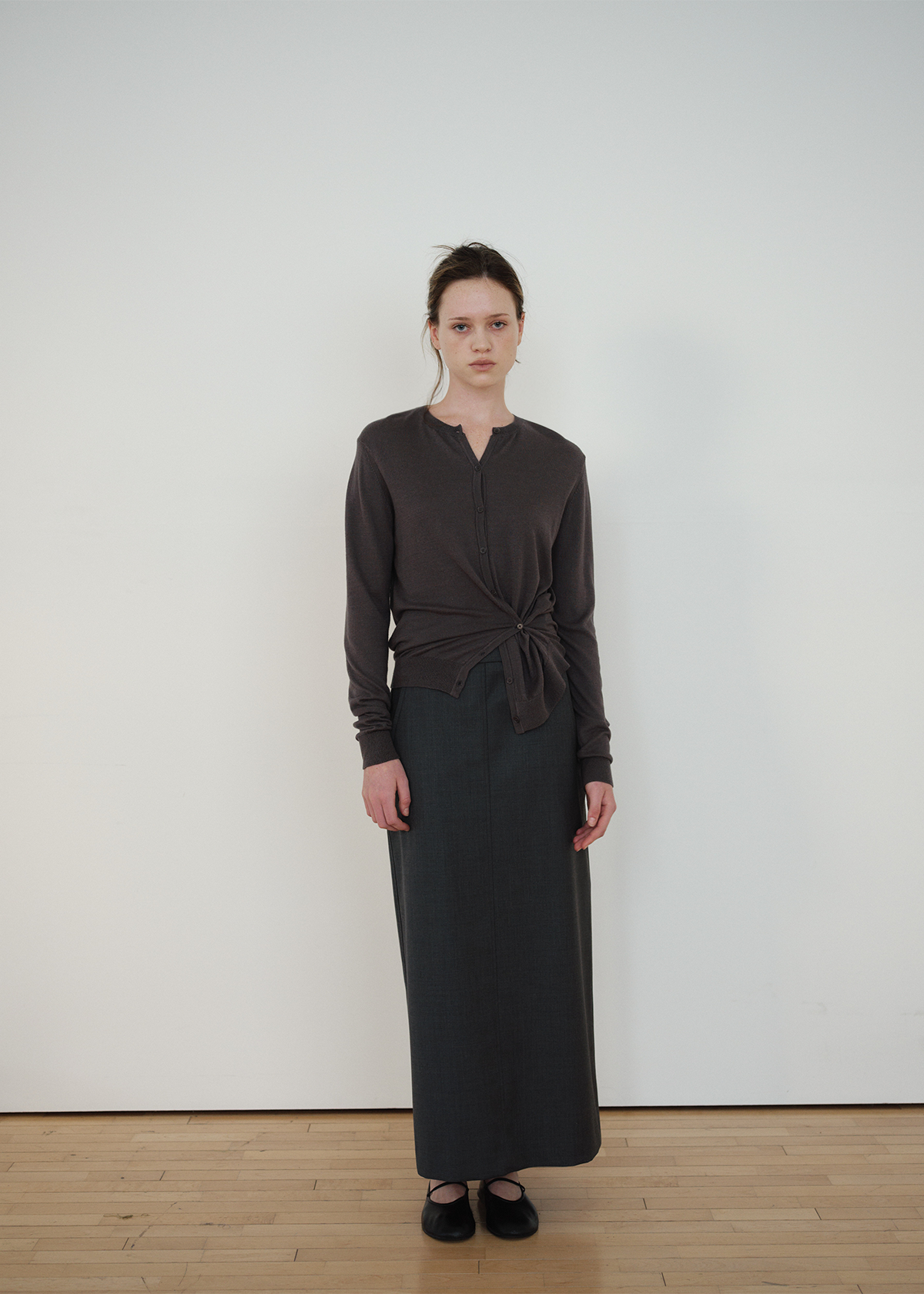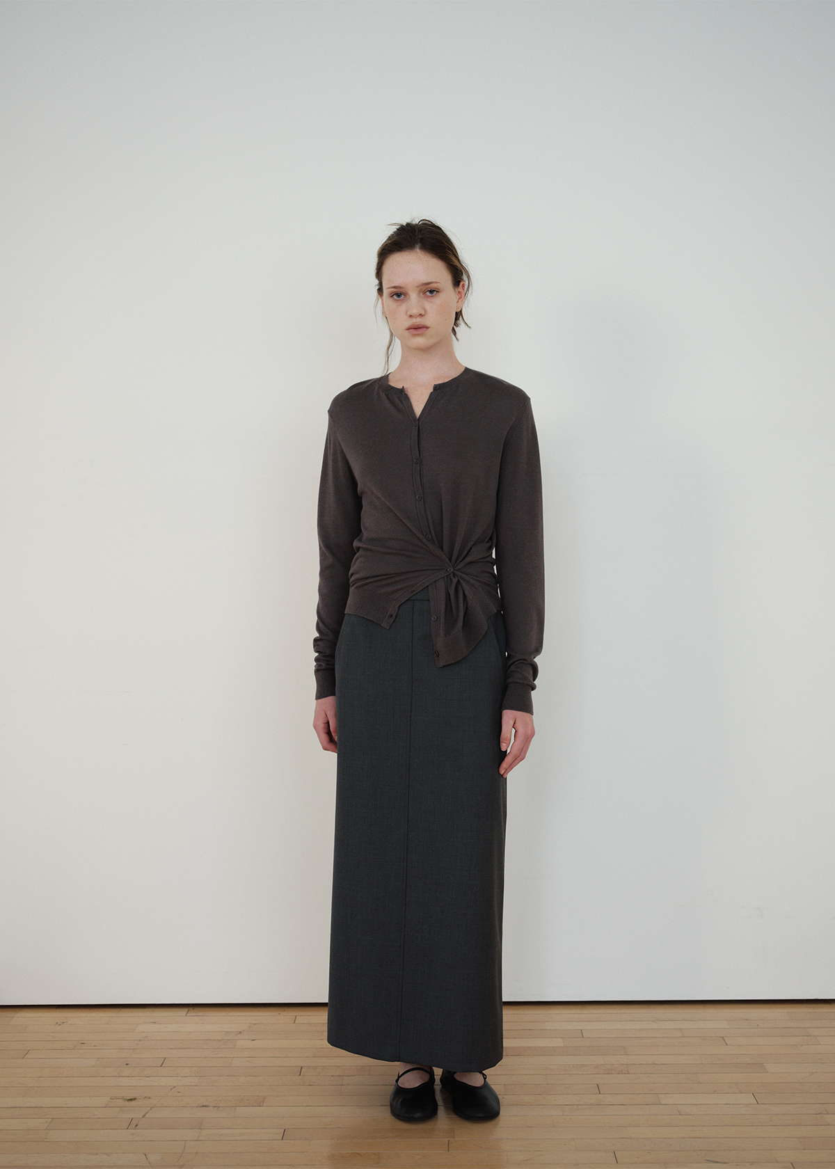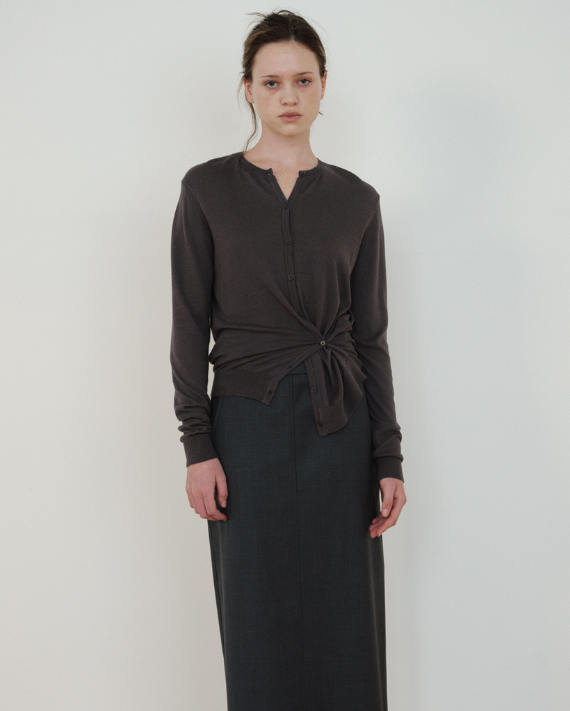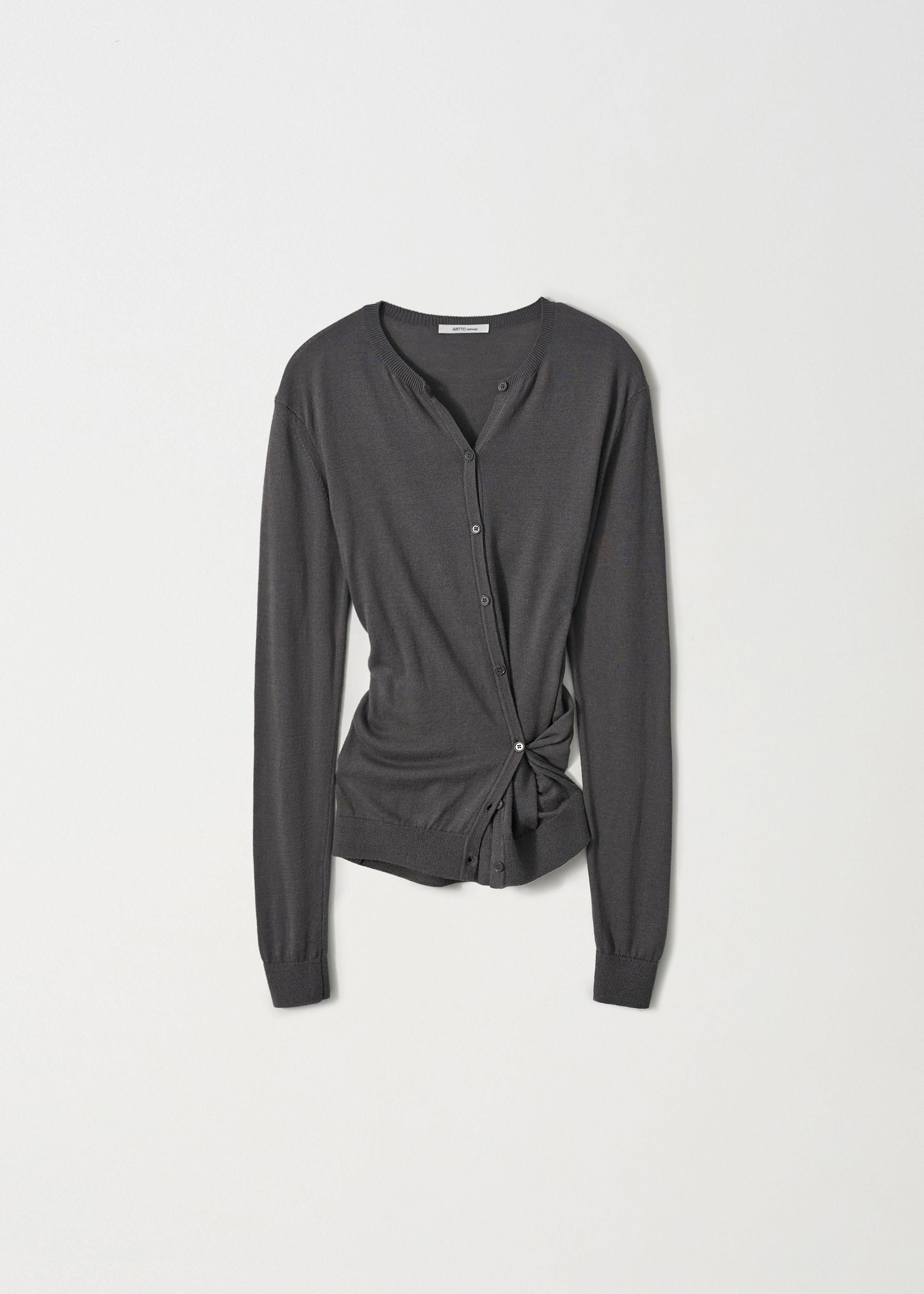 Silk Blend Two-Way Knit Cardigan_Charcoal
