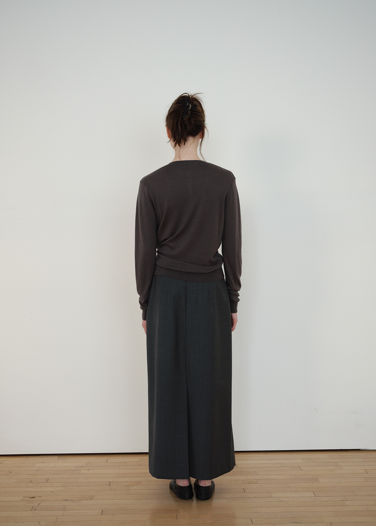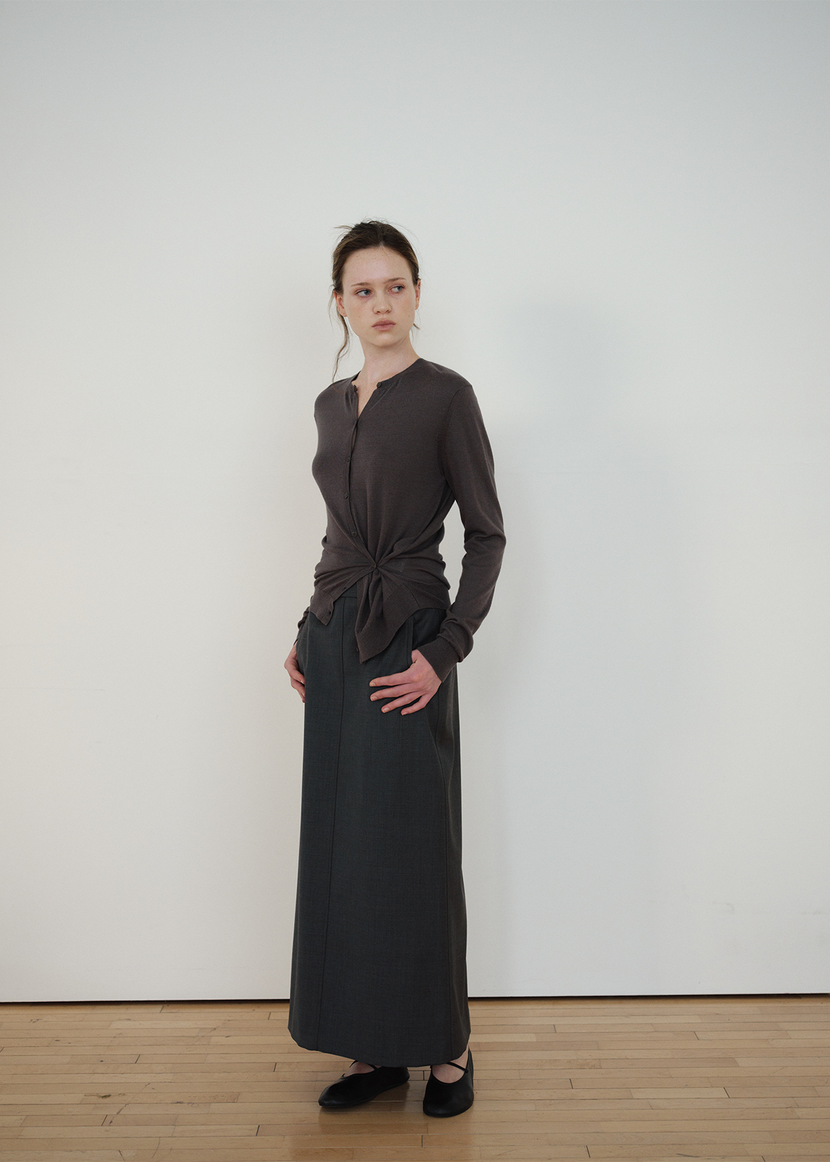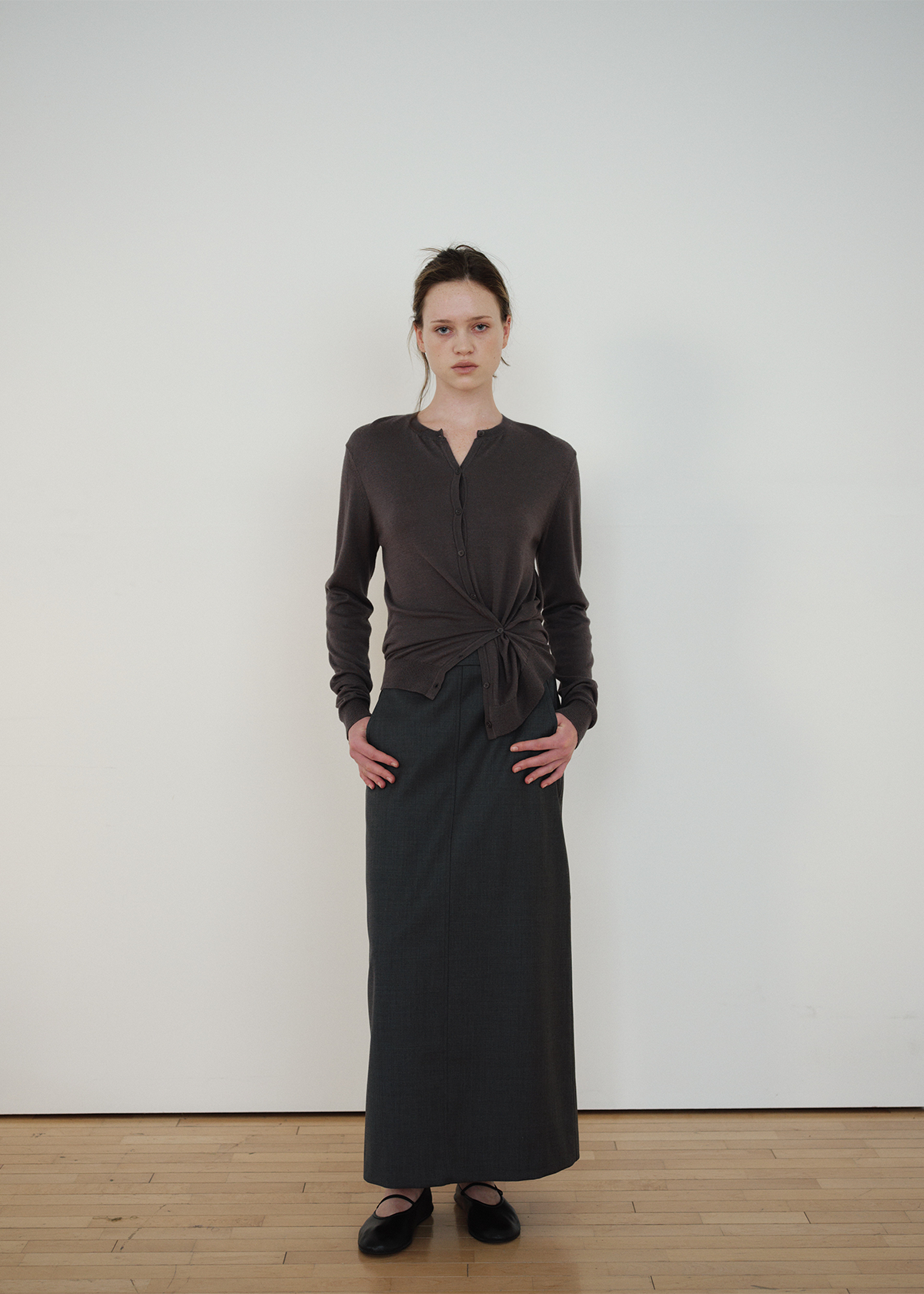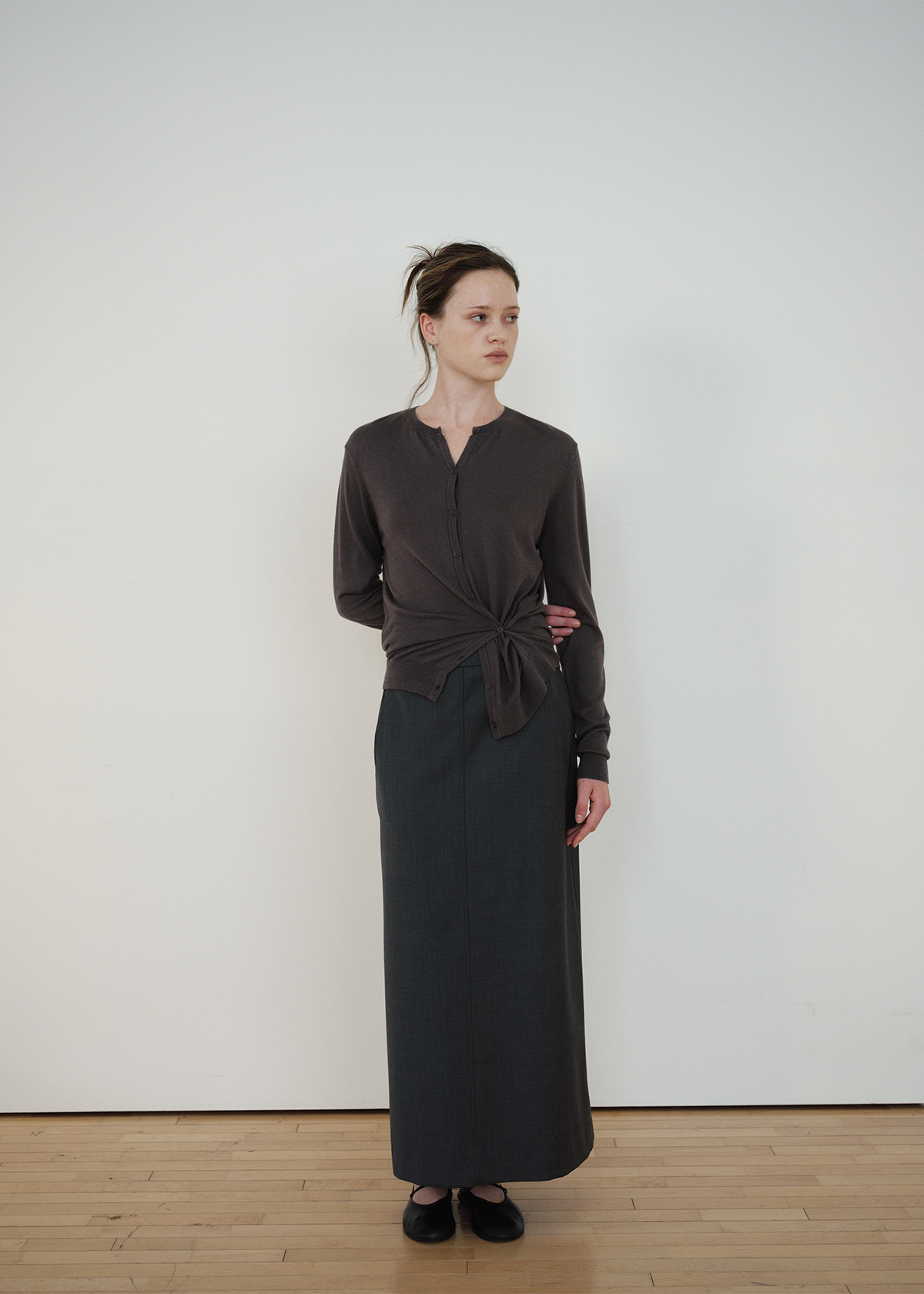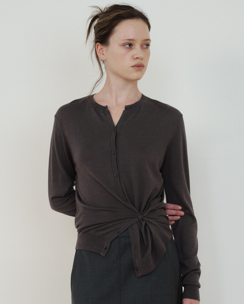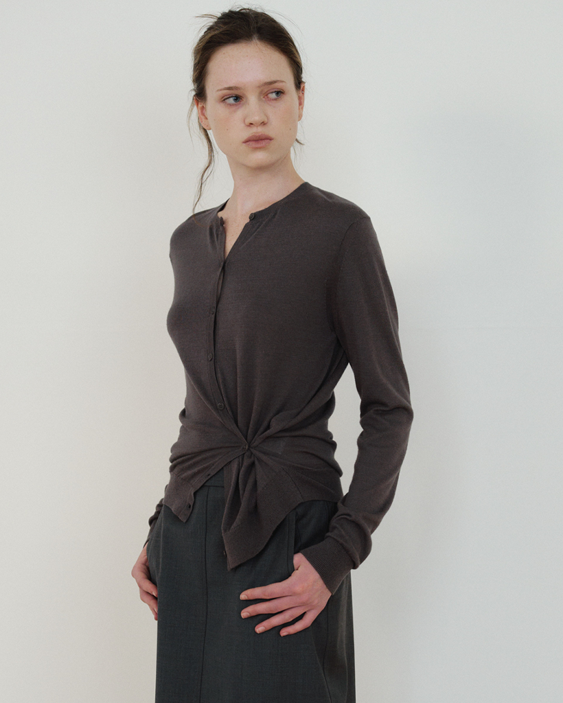 Silk Blend Two-Way Knit Cardigan_Charcoal