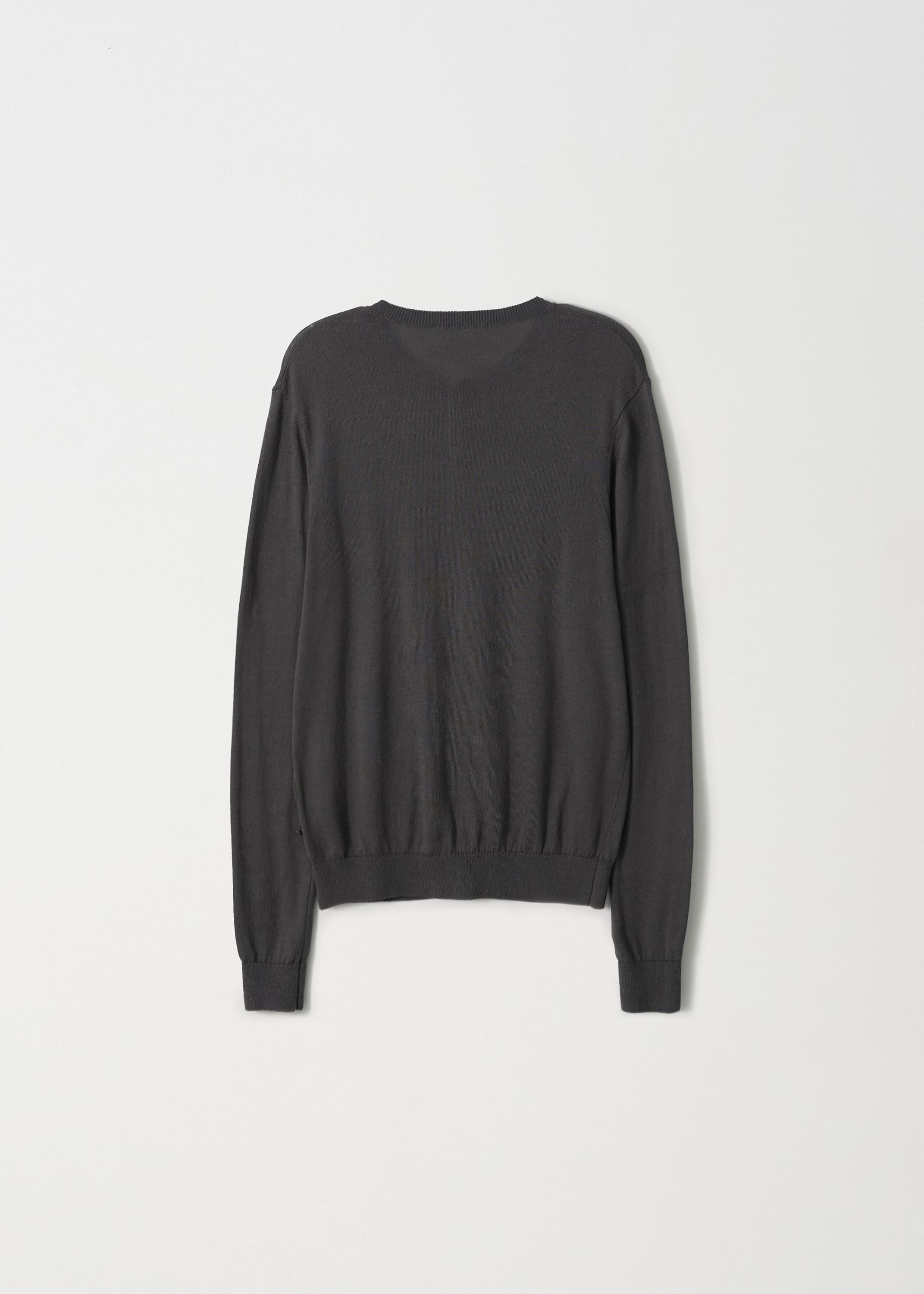 - 本製品のリブ部分は、デザイン上しっかりとしたフィット感を出すため、全面にスパン糸を一緒に編み込んでいます。SILK ブレンド糸とスパン糸の特性差により、生地表面に微細なミキシング(トーン差)が見られる場合があります。Cream と Black カラーにも同様の現象がありますが、カラー特性上 Charcoal カラーで比較的目立ちやすく見えることがあります。これは糸の特性による自然な現象であり、不良事由には該当しません。