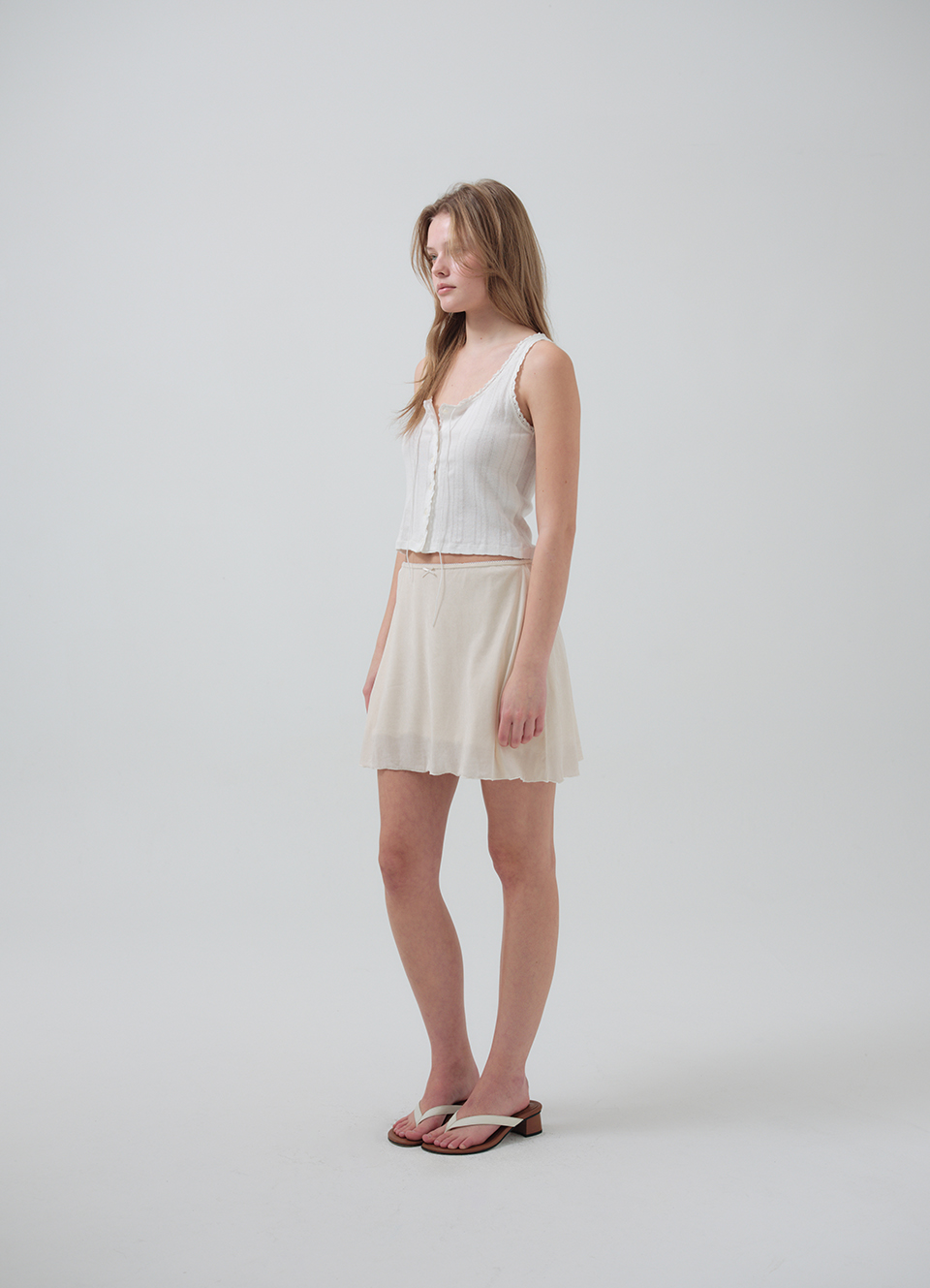 レーストリミングとストリングディテールがさりげないアクセントに