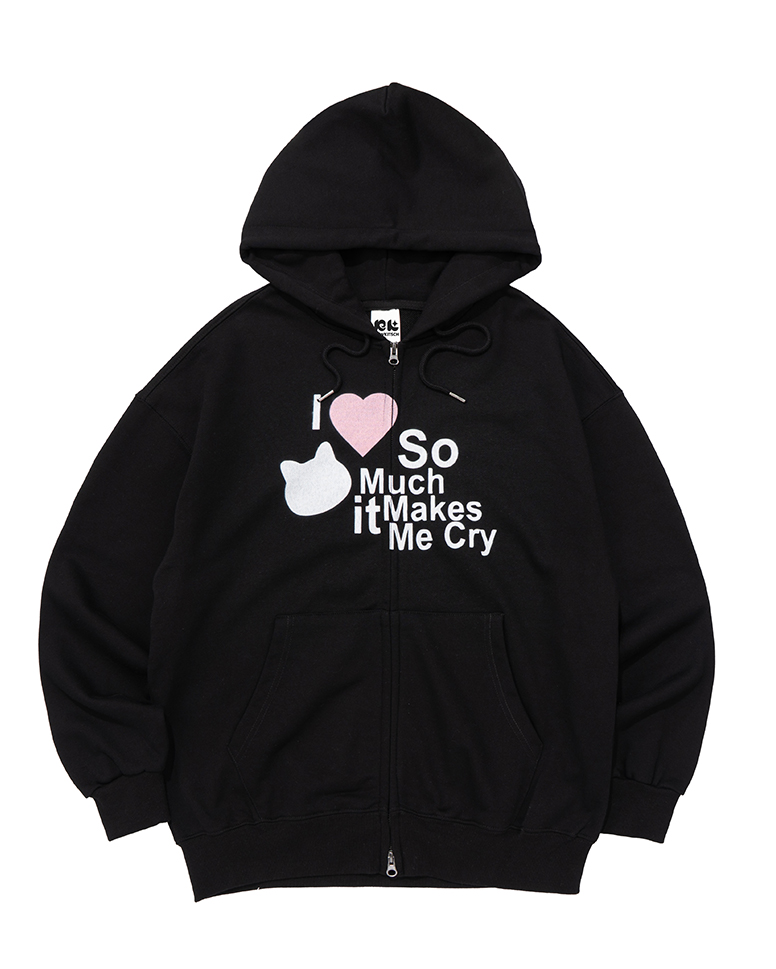 I LOVE SO MUCH CAT HOOD ZIP-UP (BLACK)