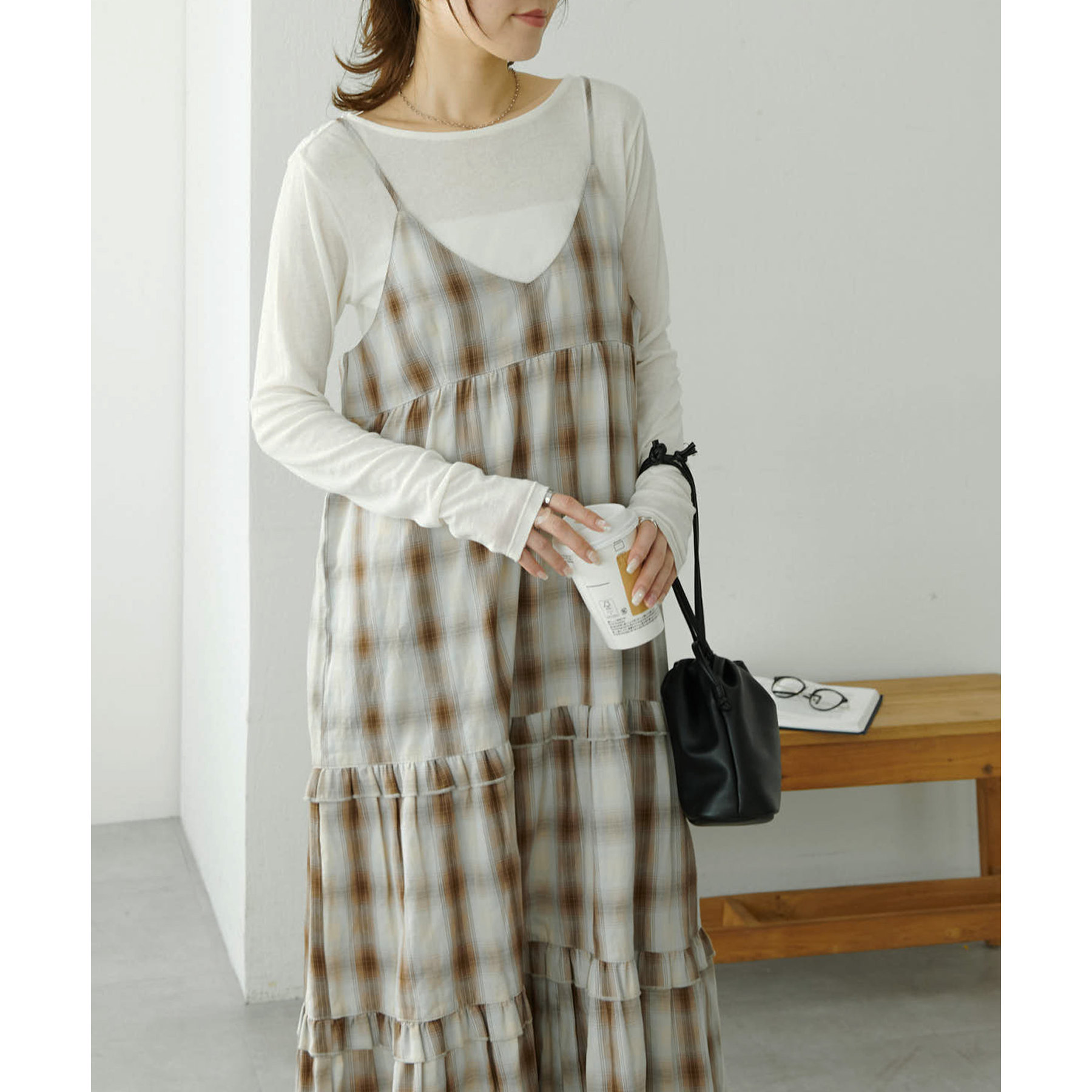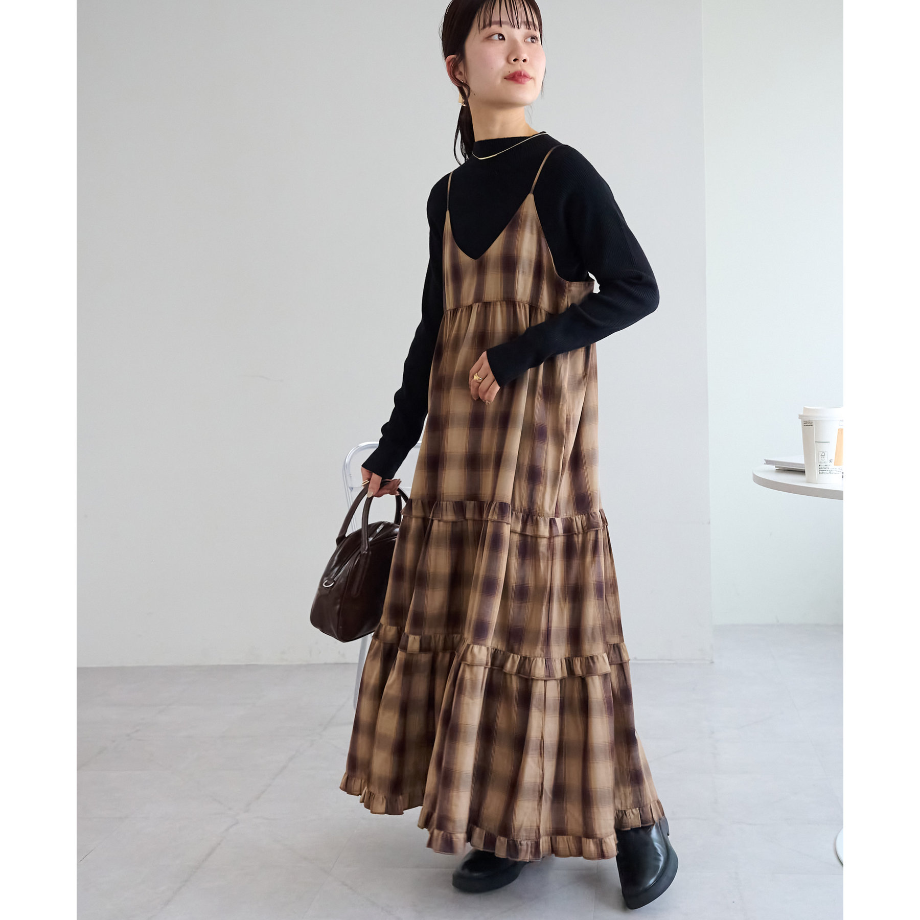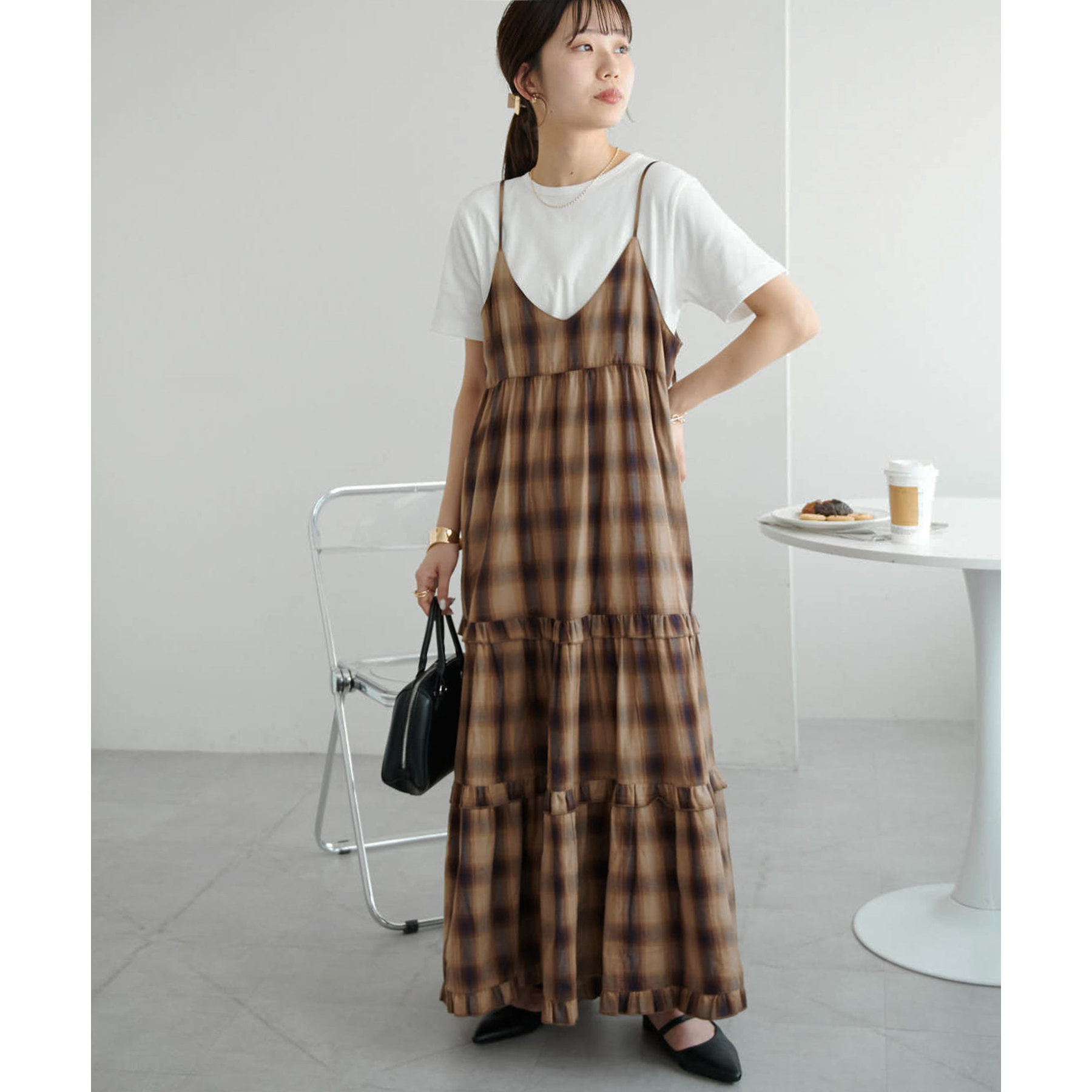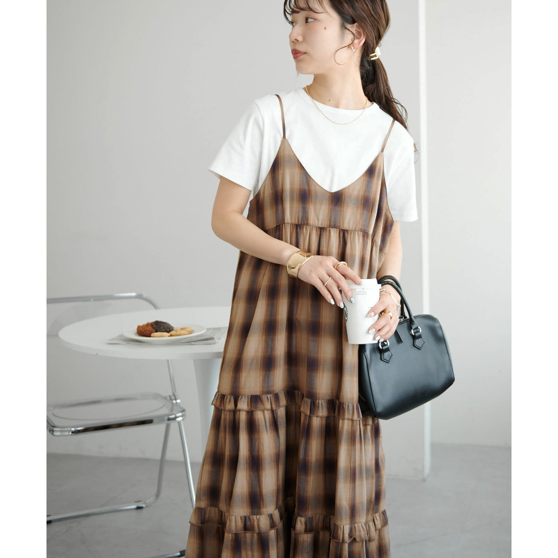 155cmスタッフ:大判柄のチェック柄なので、子供っぽく見えにくいワンピースだと思います!
