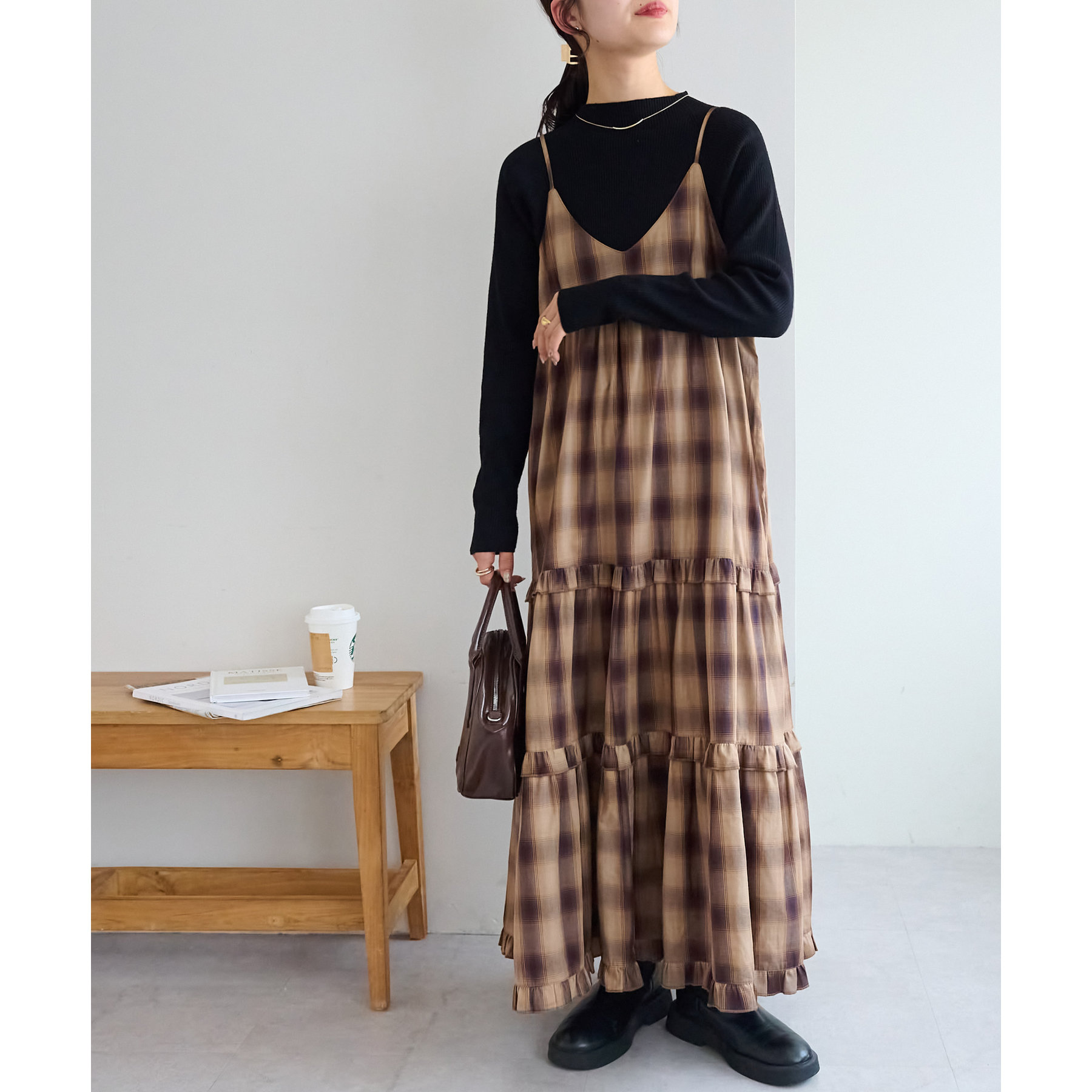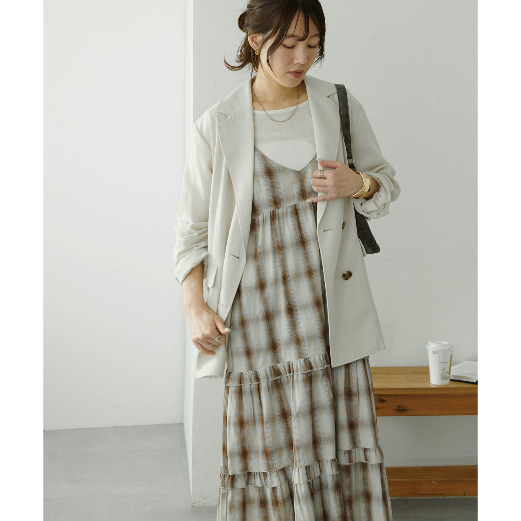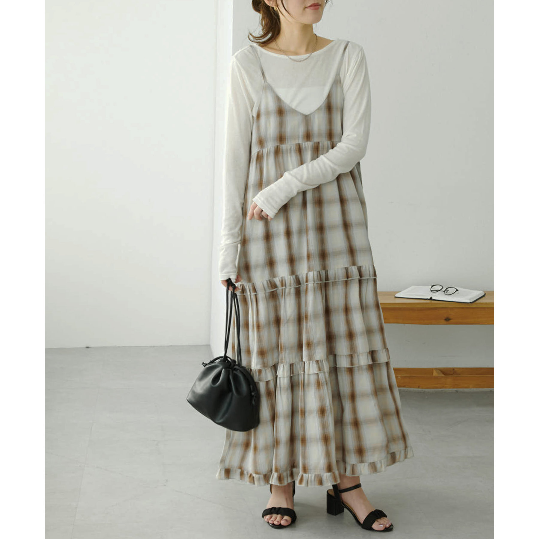 155cmスタッフ:大判柄のチェック柄なので、子供っぽく見えにくいワンピースだと思います!