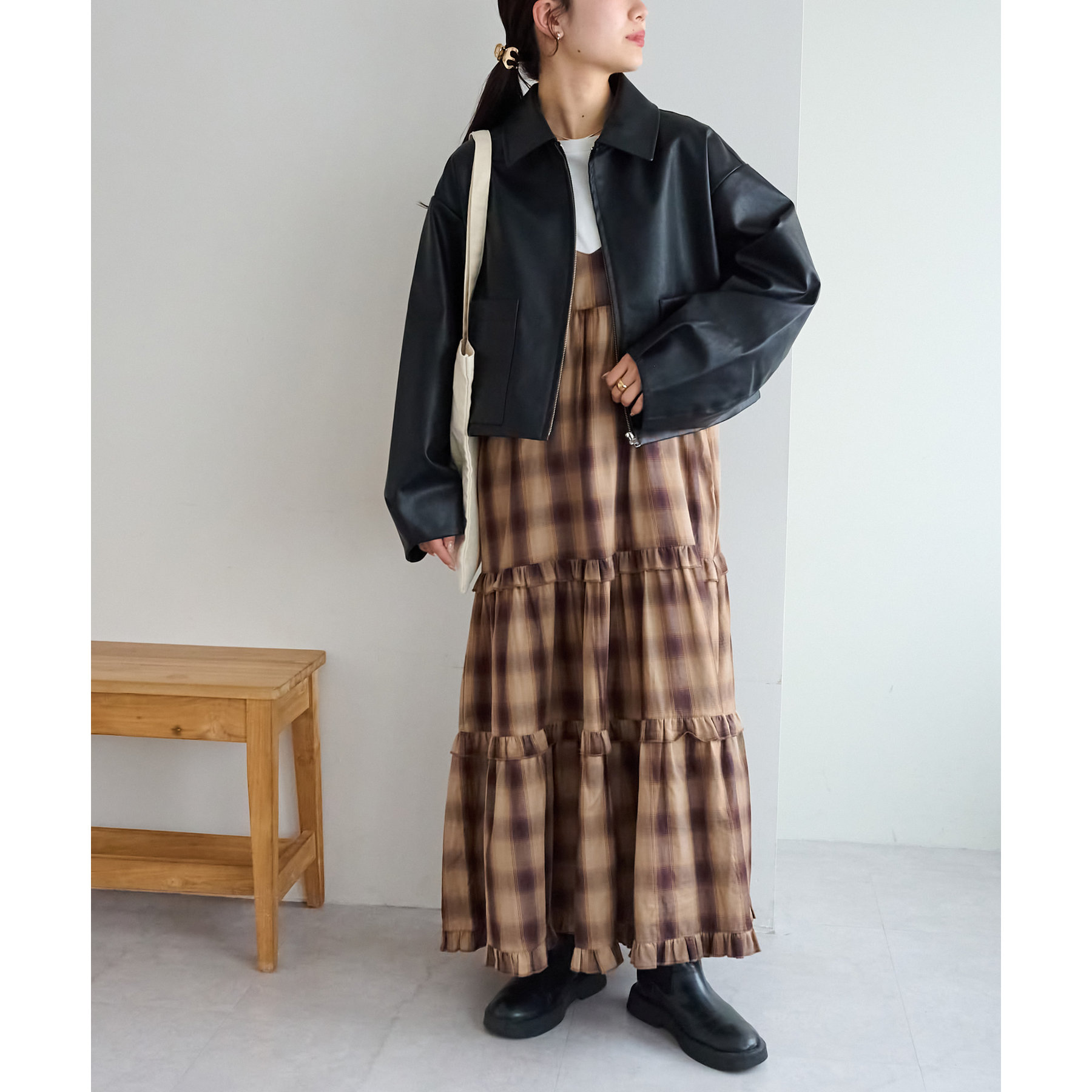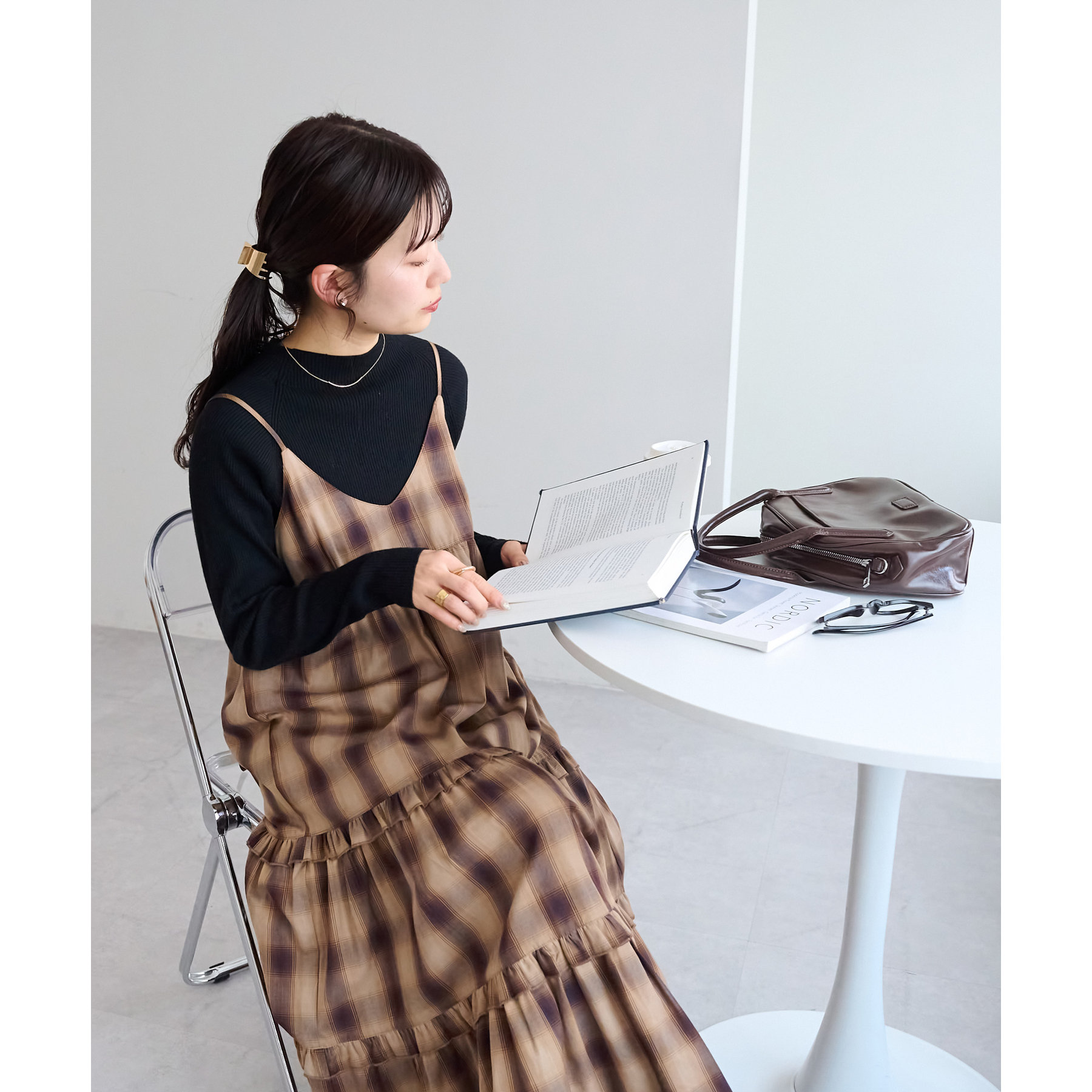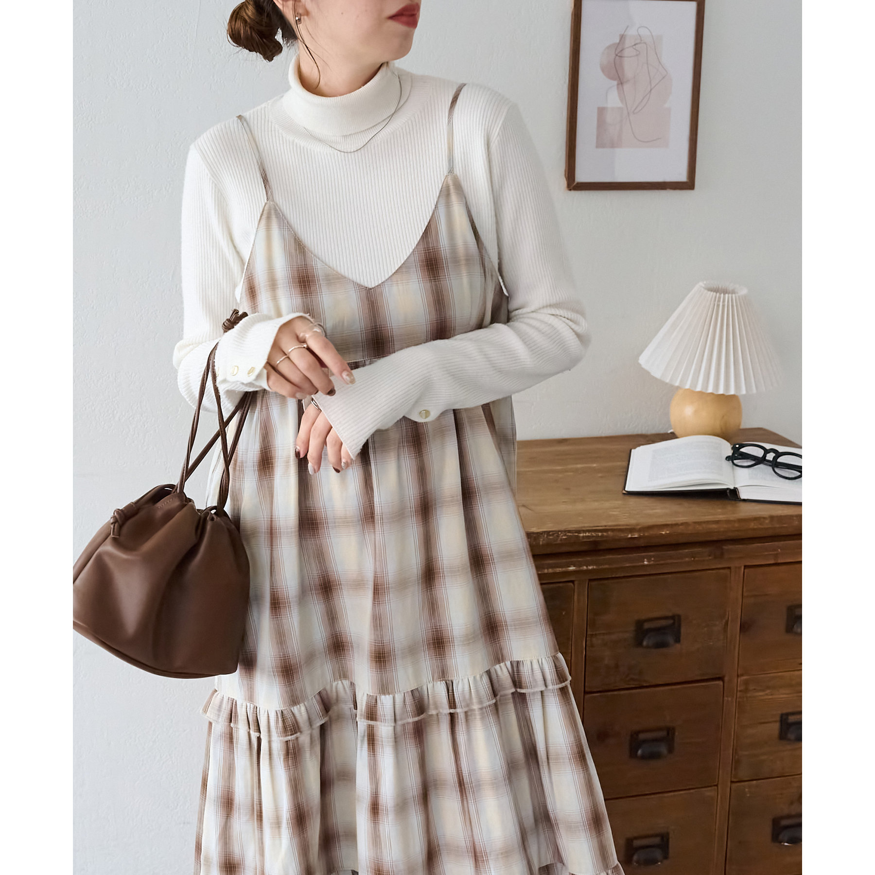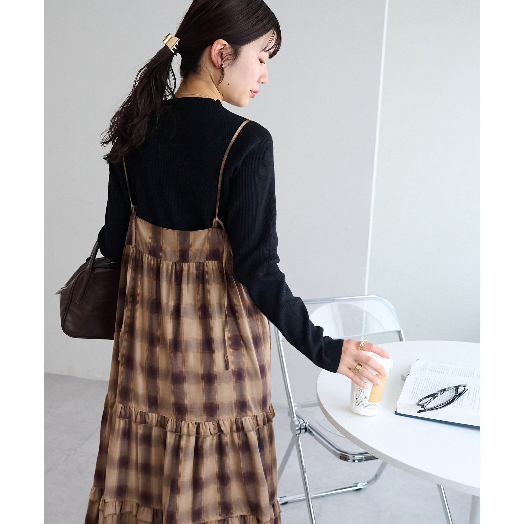 155cmスタッフ:大判柄のチェック柄なので、子供っぽく見えにくいワンピースだと思います!