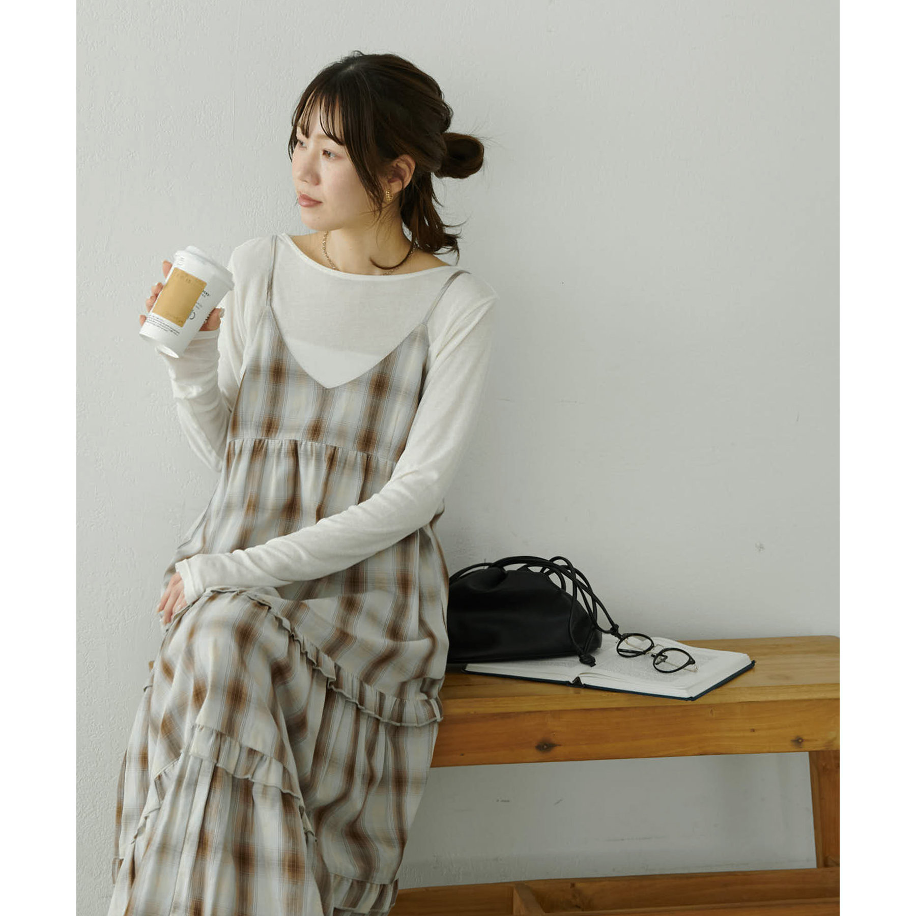 春と秋はシアーインナーやロングTシャツと合わせたレイヤードコーデ