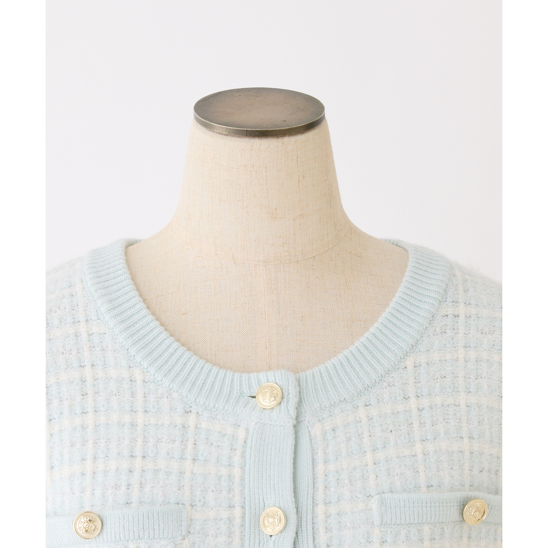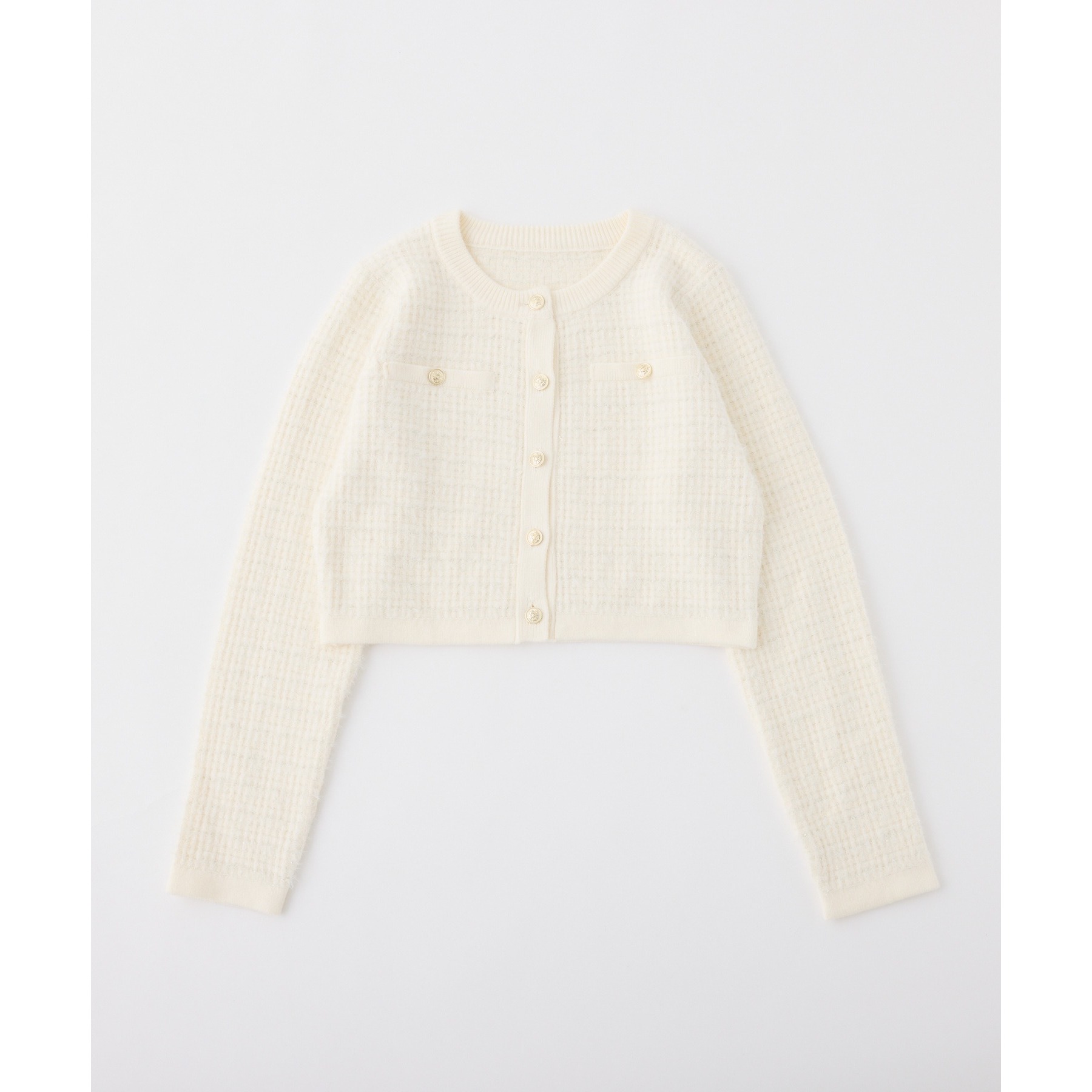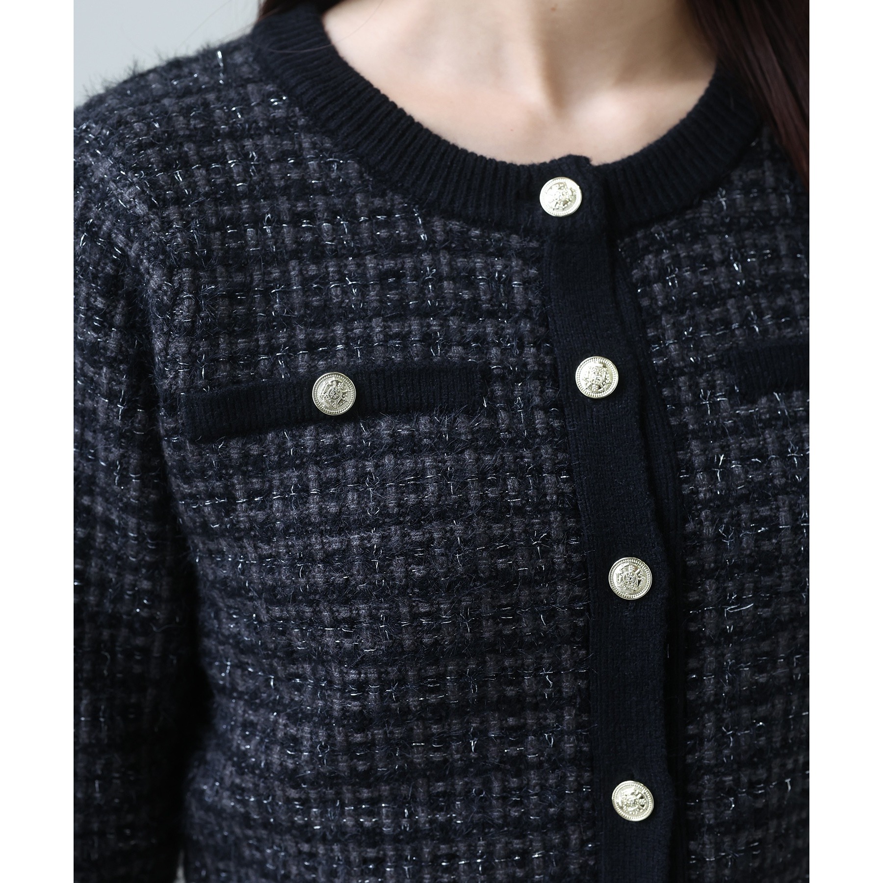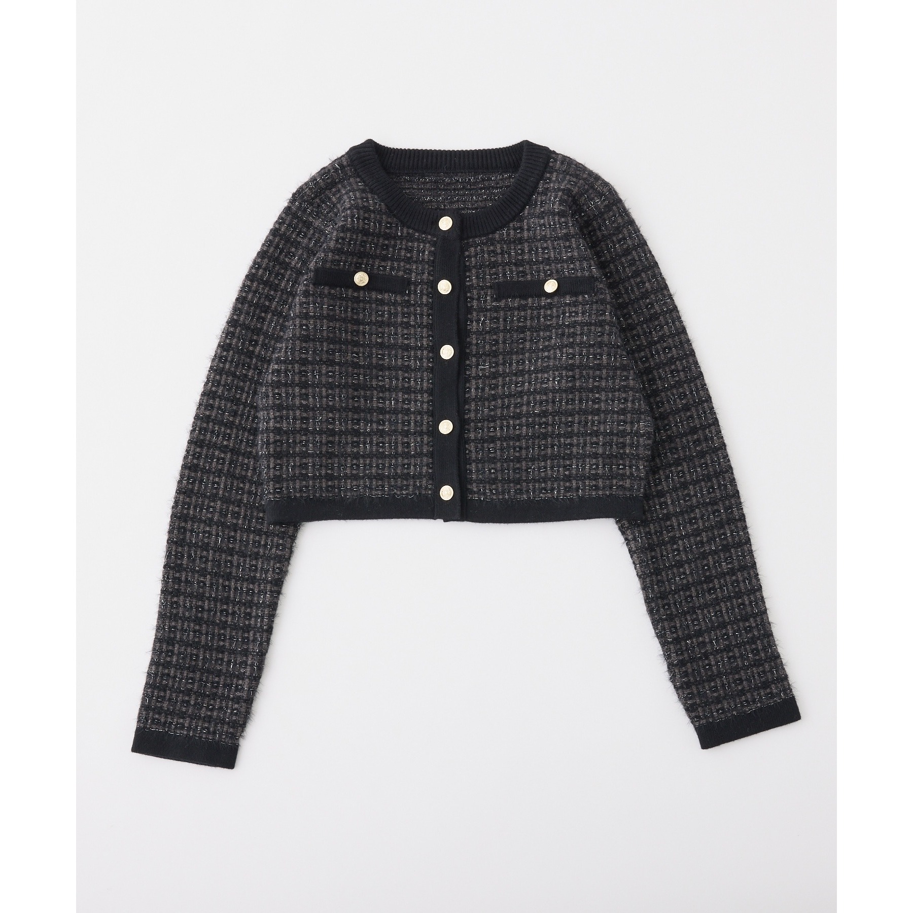 金ボタンラメツイードカーデ