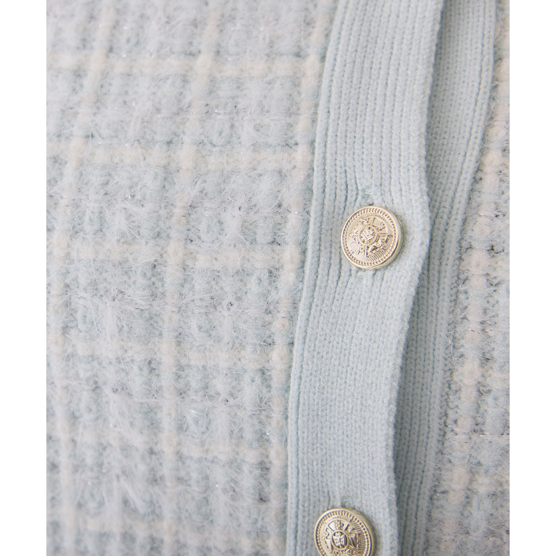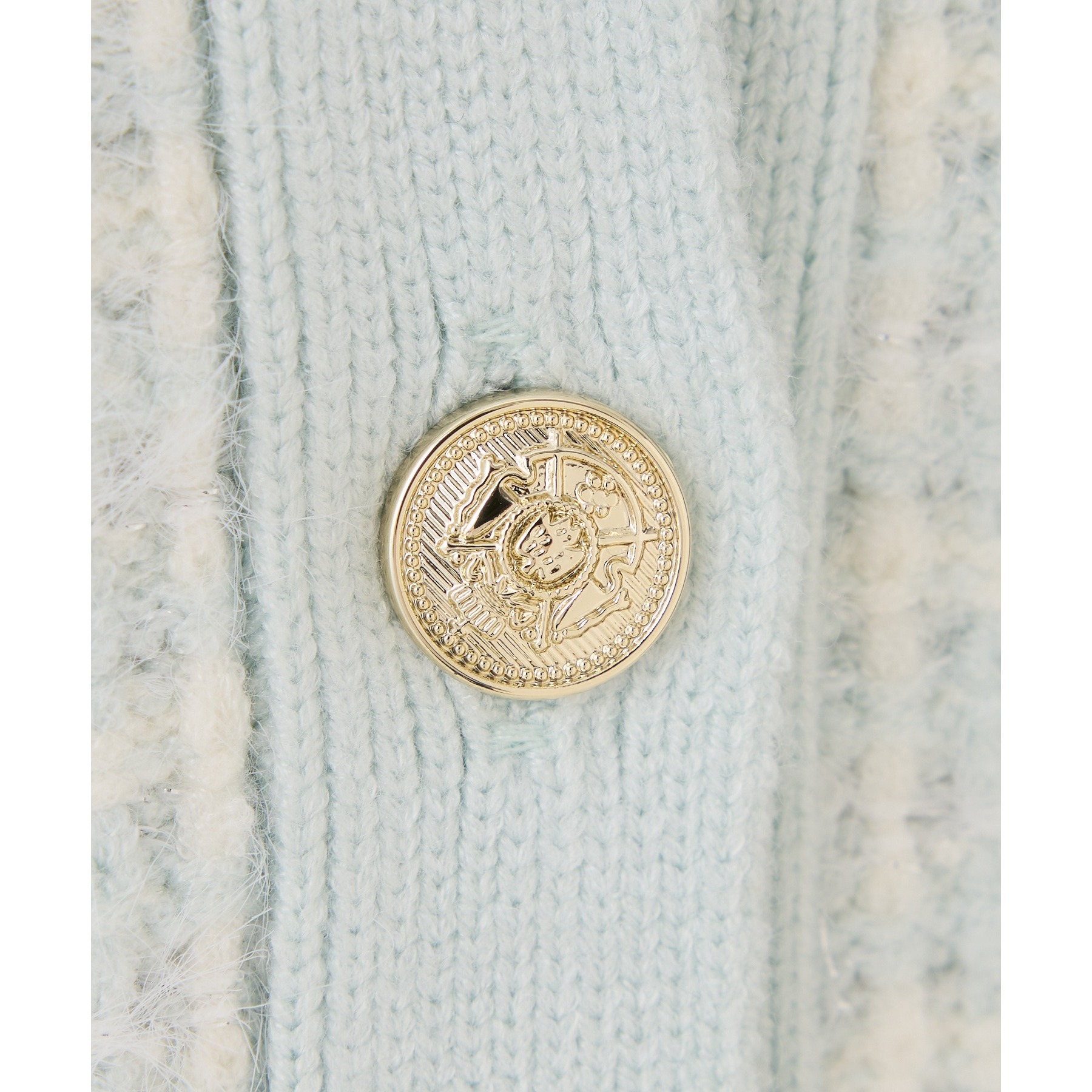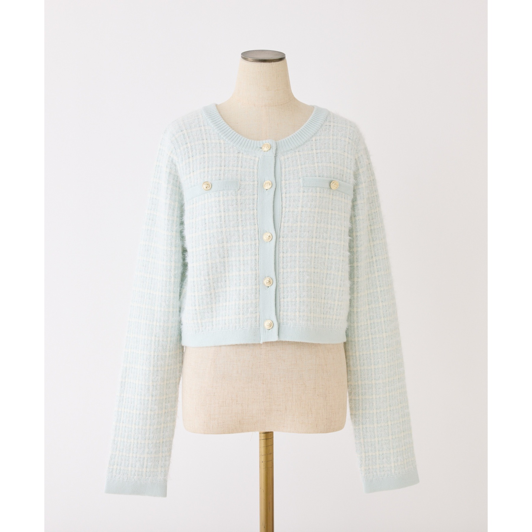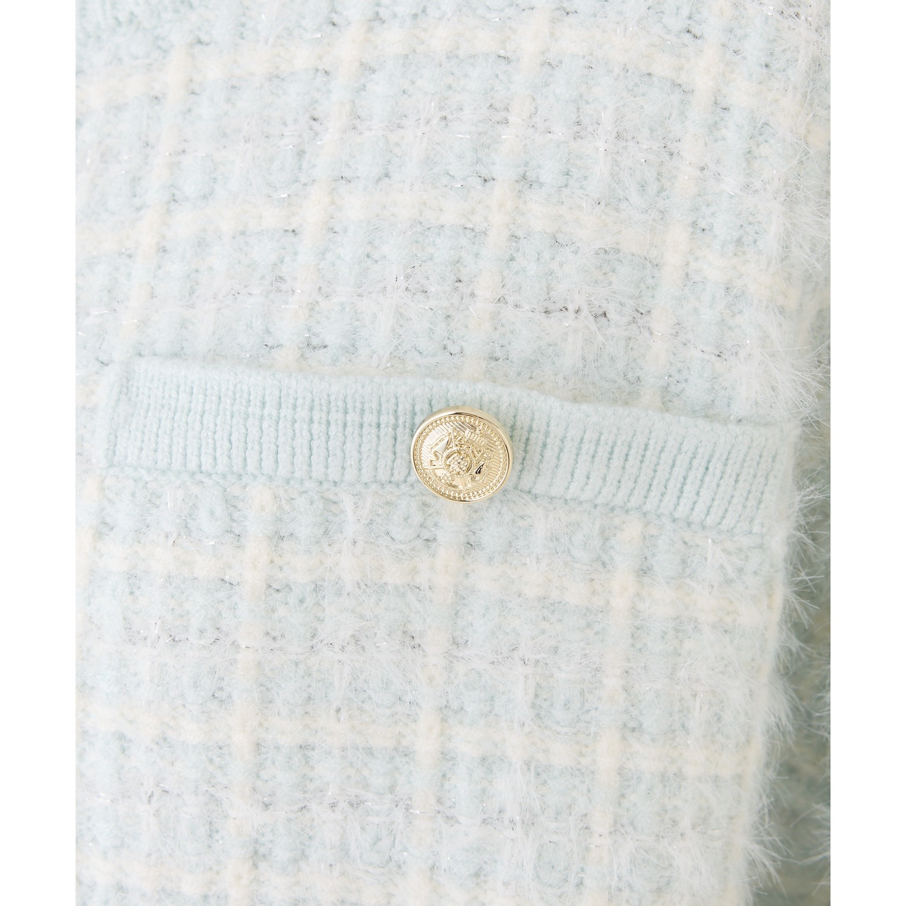 金ボタンラメツイードカーデ