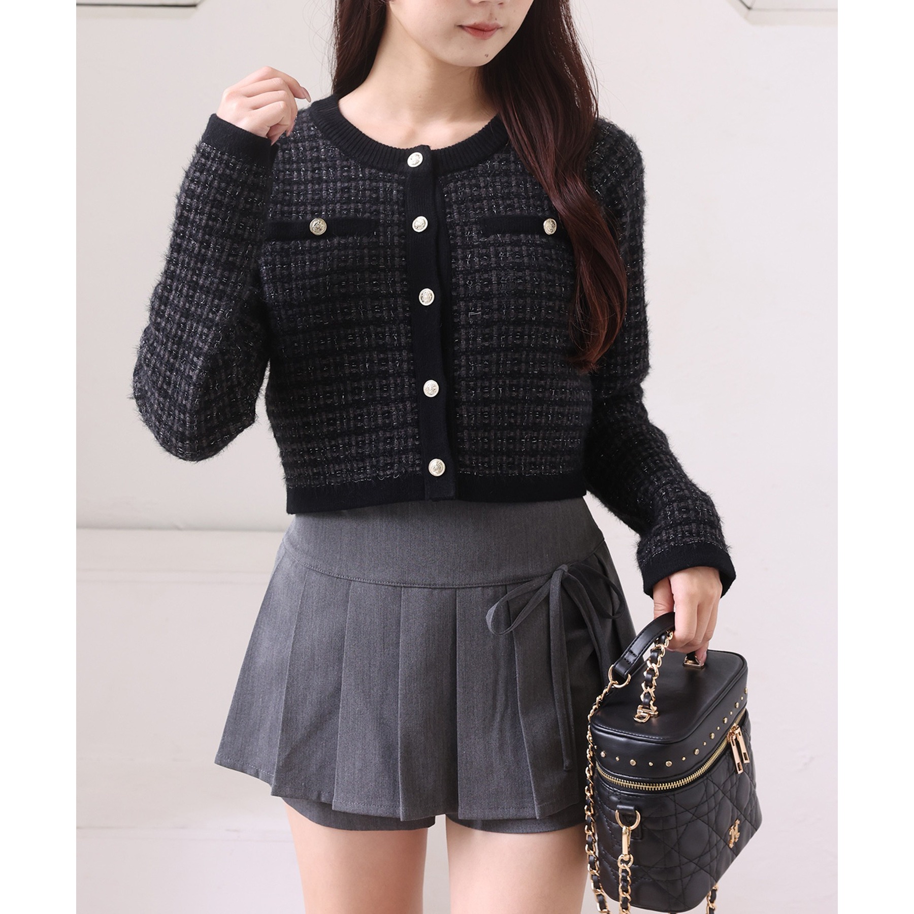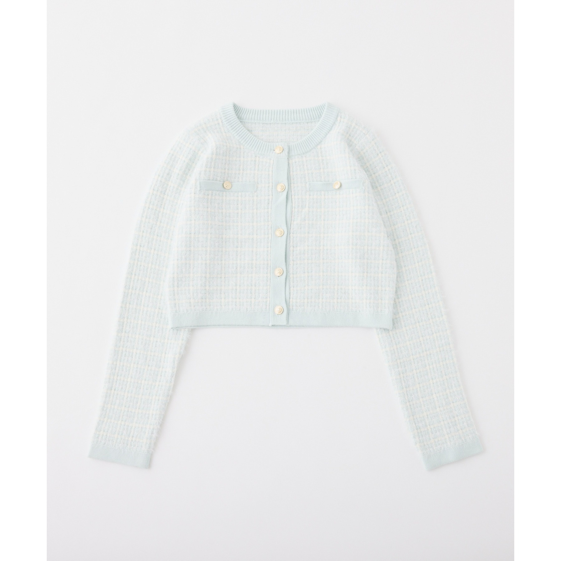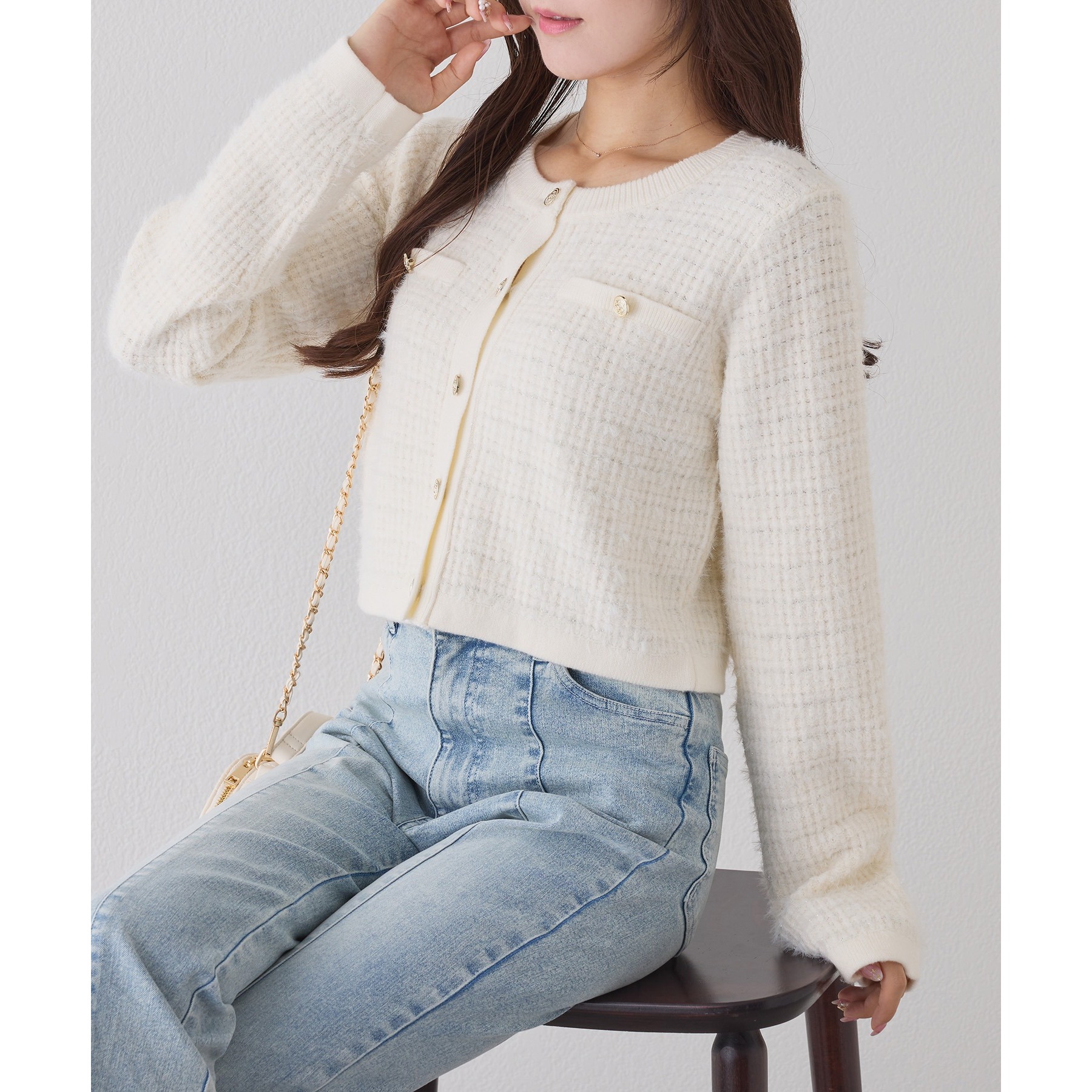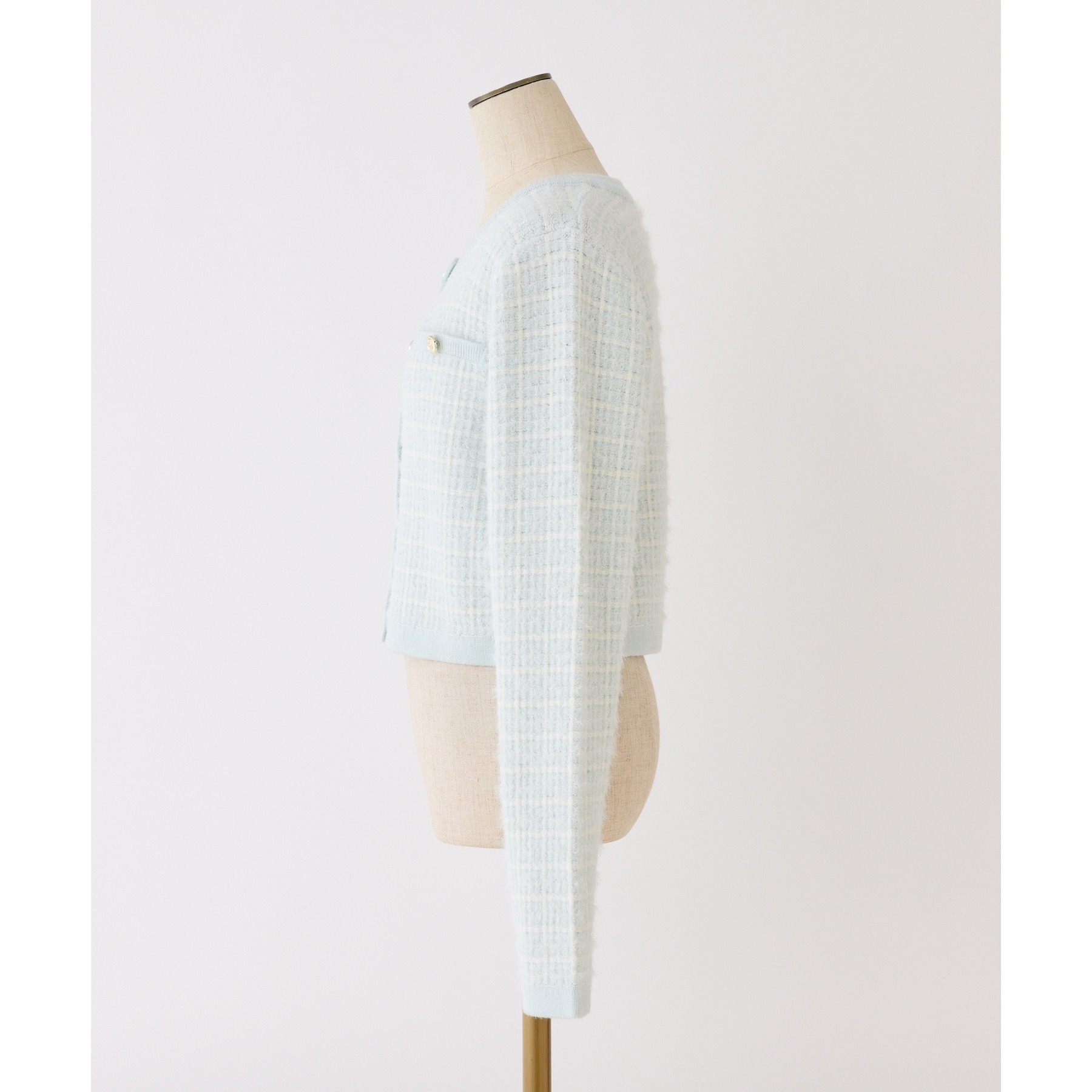 金ボタンラメツイードカーデ
