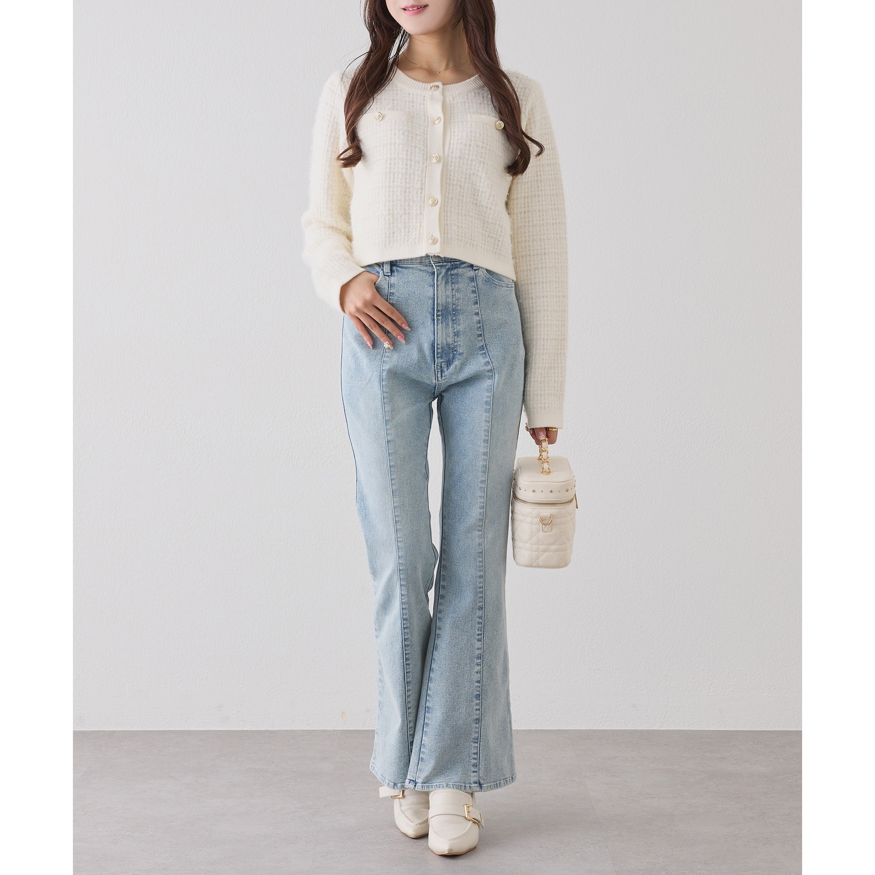 ショート丈なのでロングボトムスとも相性抜群◎