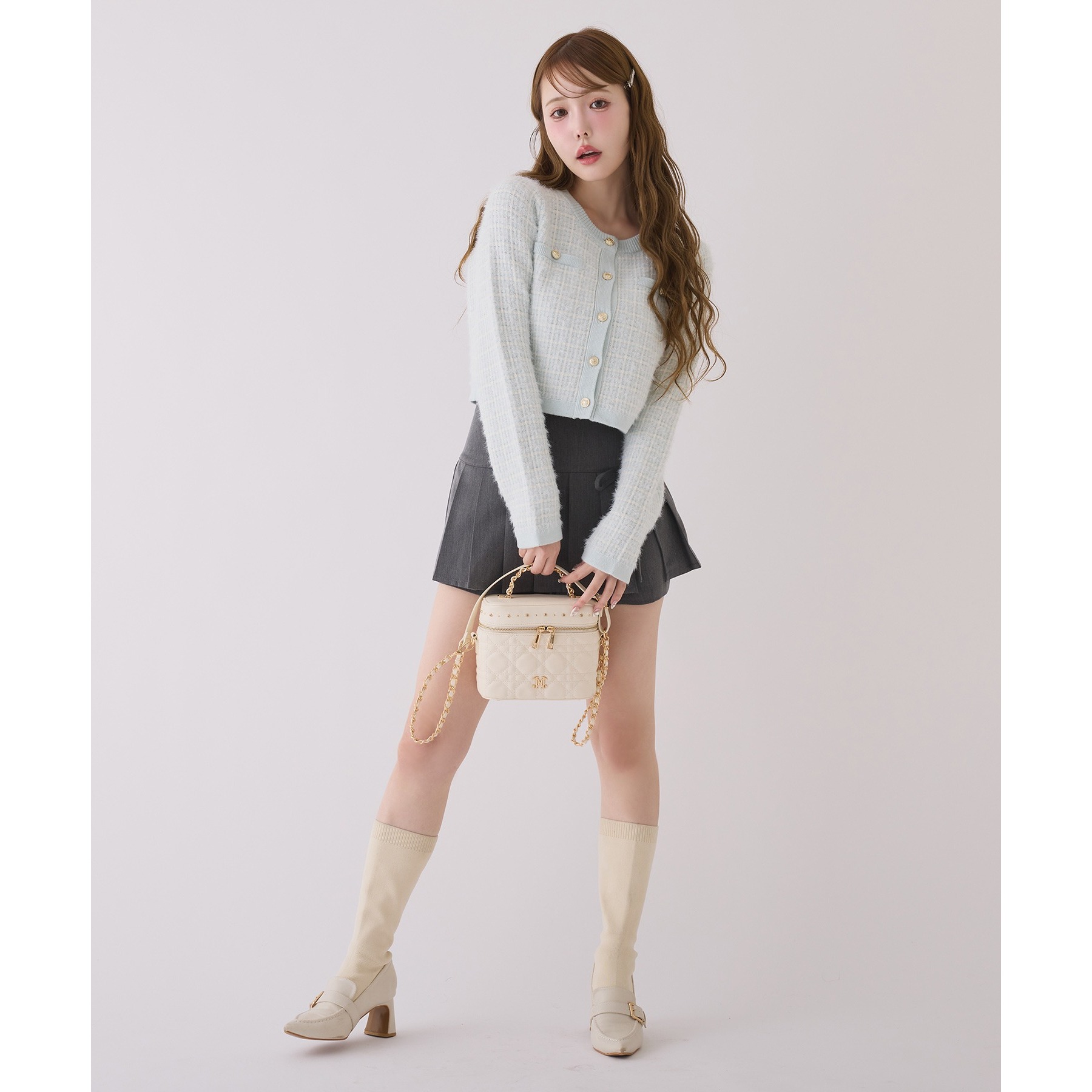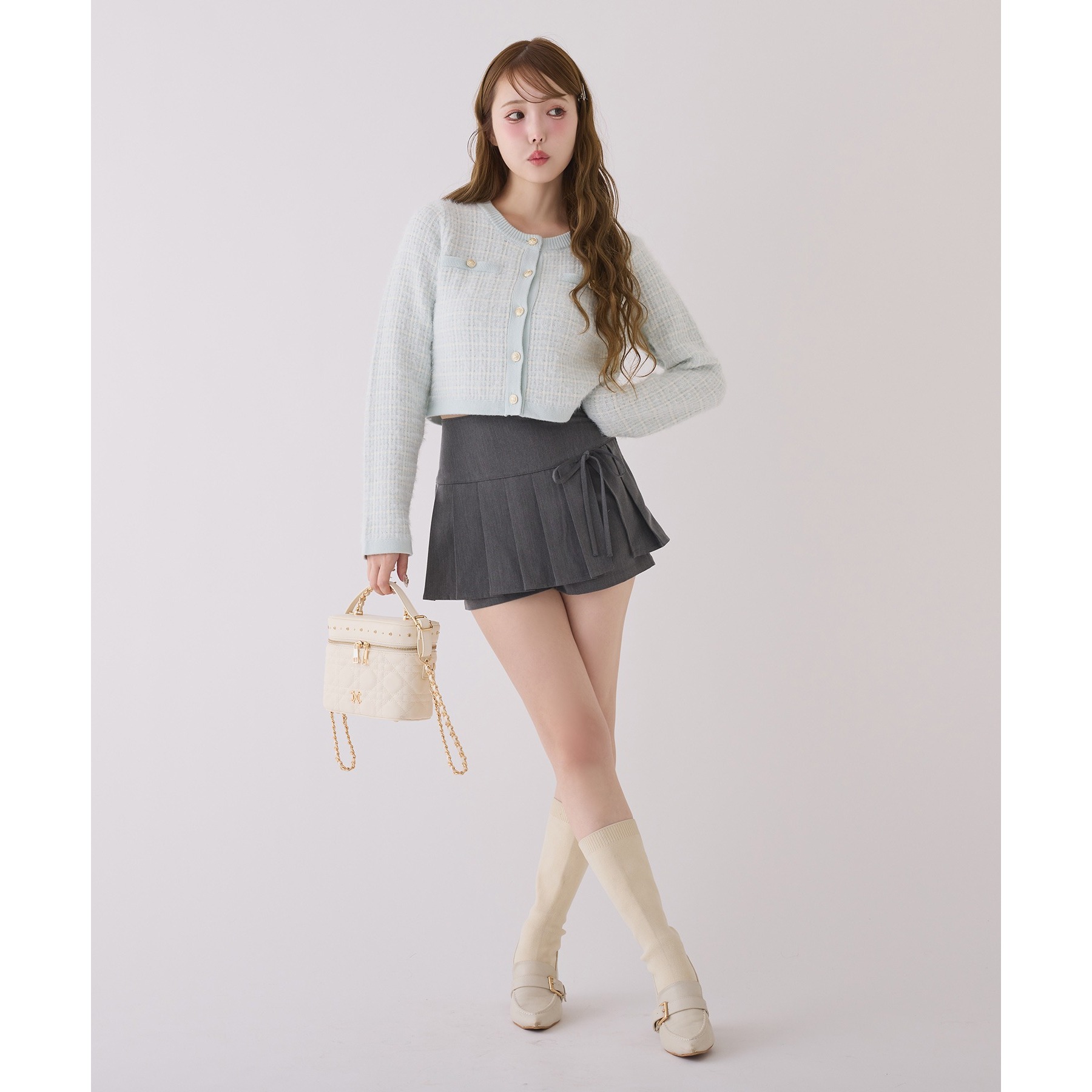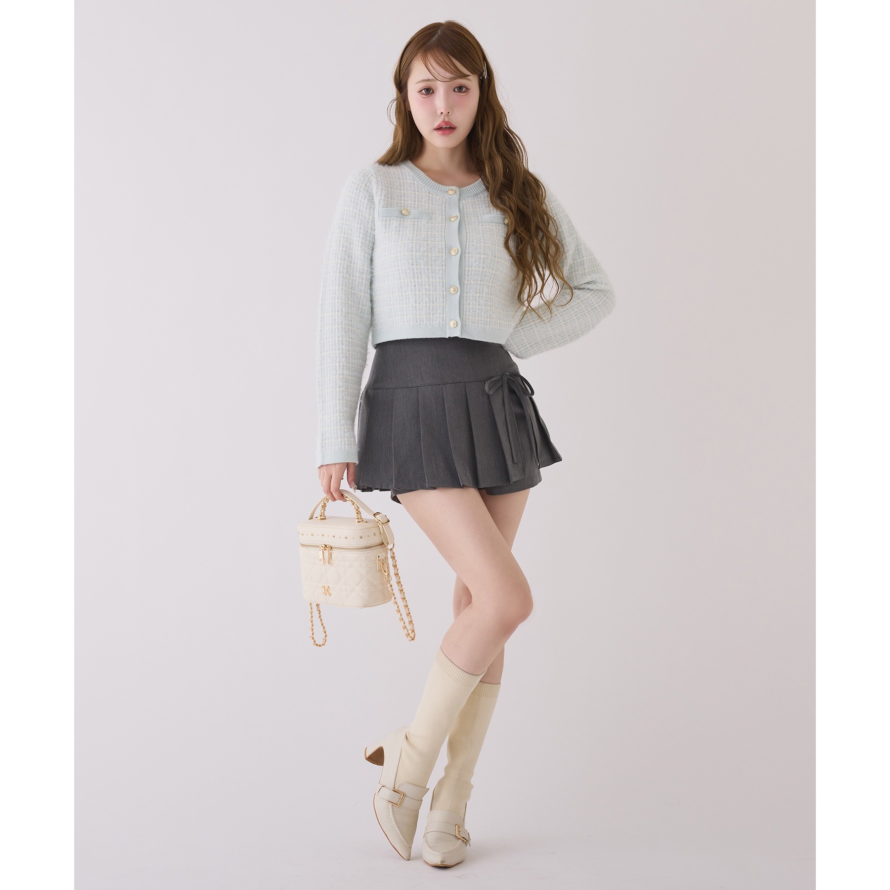 フェミニンな雰囲気がお好きな方はミニスカートとの合わせがオススメ。