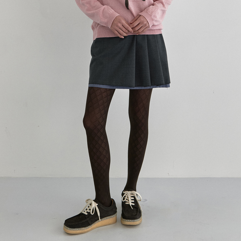 PLEATS MINI SKIRT_MELANGE GREY