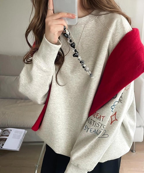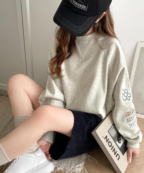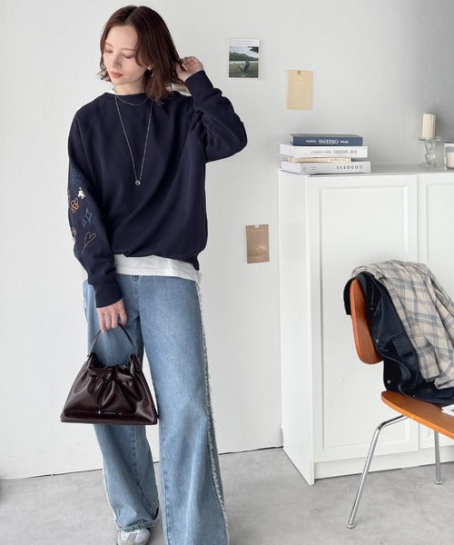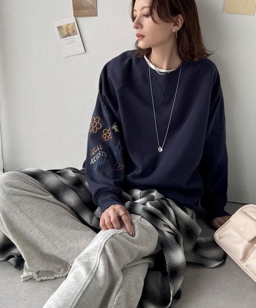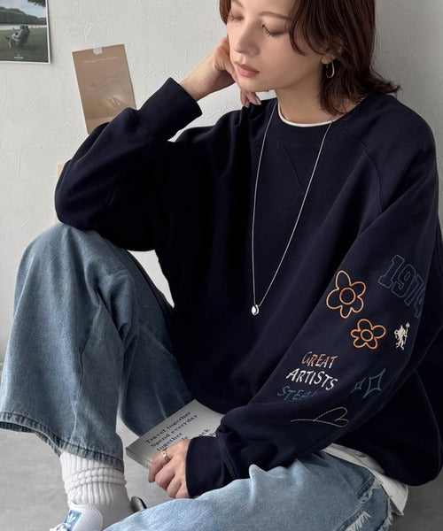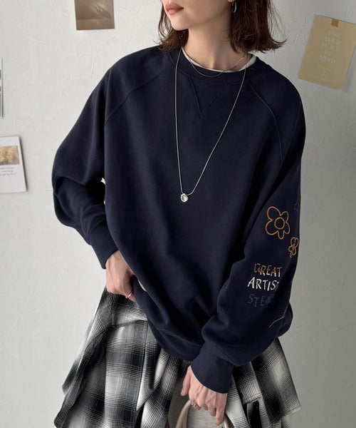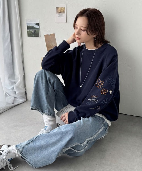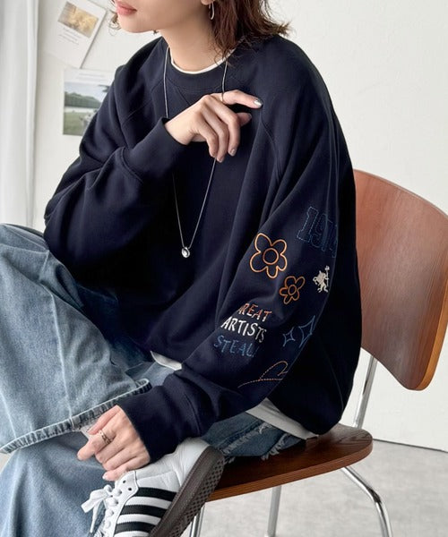 ハンドメイド風刺繍に釘付け。前後2wayランダム袖刺繍裏起毛スウェット ce1050222